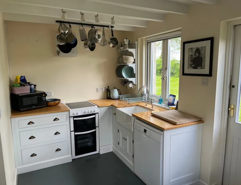 Unwind in this serene retreat nestled in the Lammermuir Hills. Enjoy the Wi-Fi,private garden with dedicated parking+kids toys and books on request.The place fully furnished with unique and quirky furniture. For the safety of all guests, please refrain from venturing near the farm yard or buildings. Avoid approaching the cows or farm workers while they are tending to the animals. More detailed instructions will be provided to guests upon booking to ensure a peaceful and relaxing experience. The space This tranquil cottage is nestled in the picturesque Lammermuir Hills just outside Gifford. The cozy accommodation features one twin bedroom and one king-size bedroom, there is a fold out bed available for the king size bedroom (see pic). There is a bathroom with a shower over bath, the bath has very high sides so might not be suitable for all as no side handle (huge apologies) see pic of bath, central heating, TV, and an open fire (a small bag of logs can be provided upon request during the winter months). Additional logs can be arranged at an extra charge with prior notice. Enjoy meals in the dining conservatory or in the kitchen equipped with a dining table and plenty of cooking pots and pans. Stay connected with Wi-FI. There is use of private garden with dedicated parking. Keep an eye out for the resident peacocks that freely roam the garden – they are known to be very friendly! Please note that the Aga is currently turned off, but there is an electric oven available for cooking. Relax, unwind, and enjoy the peaceful surroundings of this charming cottage in the Lammermuir Hills. The farm track (about a mile) is pretty bumpy with lots of pot holes, it’s absolutely fine if you drive slowly / around the potholes. You may see a friendly spider or 2. You may hear the noise of cows. You may have a peacock sitting on our window sill. Guest access Myself or a family member will meet you on arrival or we will leave a key for you. Please note that guests are not permitted in the farm yard or in or near any of the farm buildings. Guests can walk back along the track they came in on, and freely into the Lammermuirs that way (happy to give advice on local walks, do ask if interested). We will send a map showing details of where you can walk separately. Please do not go in any fields on the farm especially important if they contain livestock. Please don’t go near the cows or approach farm workers when they are handling them. Other things to note We will almost always be staying locally so are available to answer any questions. Happy for you to get in touch anytime during the stay. This is a strictly no pets property. Please use location instructions we give you rather than Sat nav. Please do not go into any of my locked buildings attached to the house and in garden. Please do not go into any of the farm buildings or sheds. Please stay away from the farm yard and don’t go near the cow pen / cows. If there are farm workers handling cows, please do not approach them as cows are easily spooked by strangers! A Peacock and the peahen will roam freely in my garden, they are very friendly, please respect them and try not to approach quickly/ shout loudly at them!