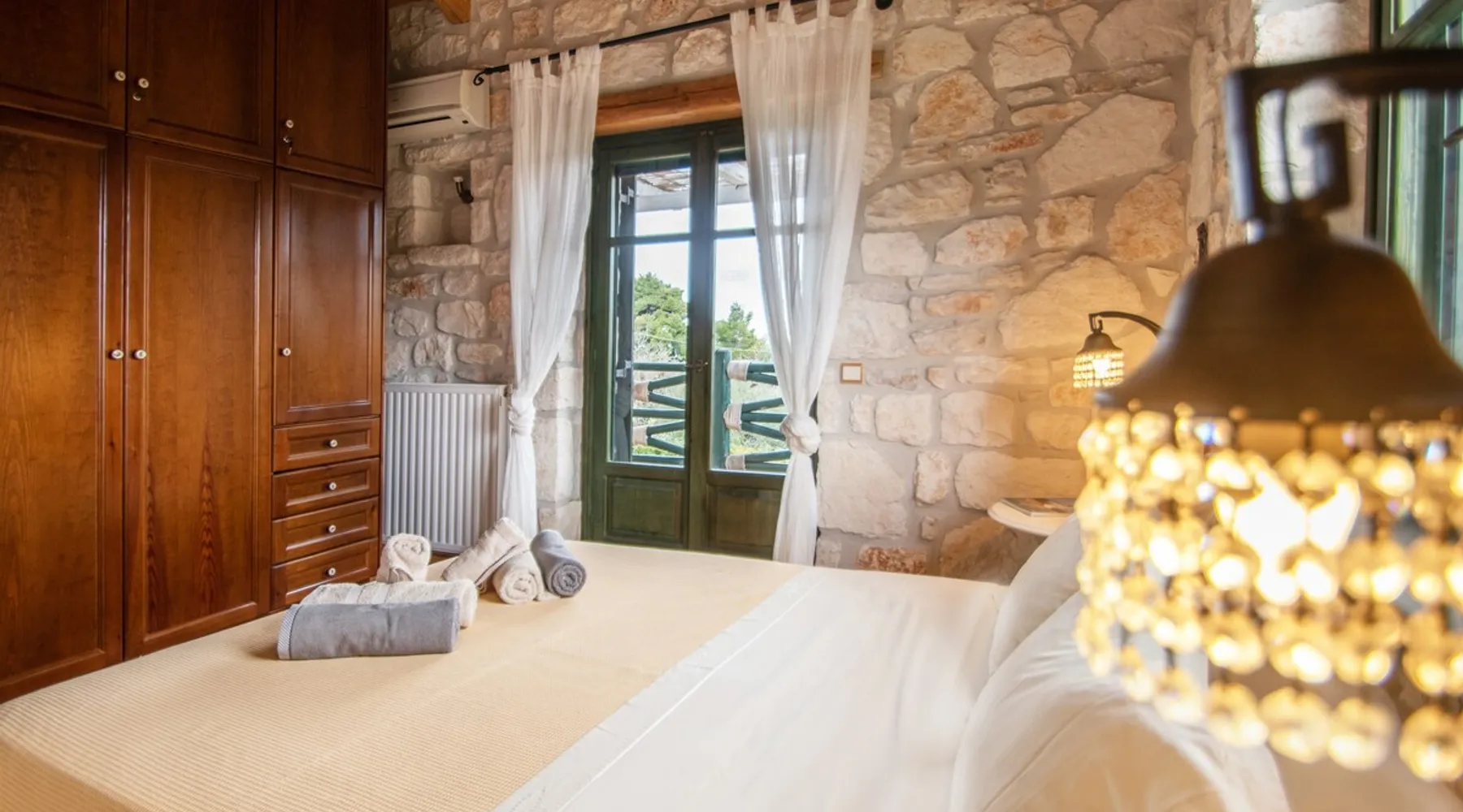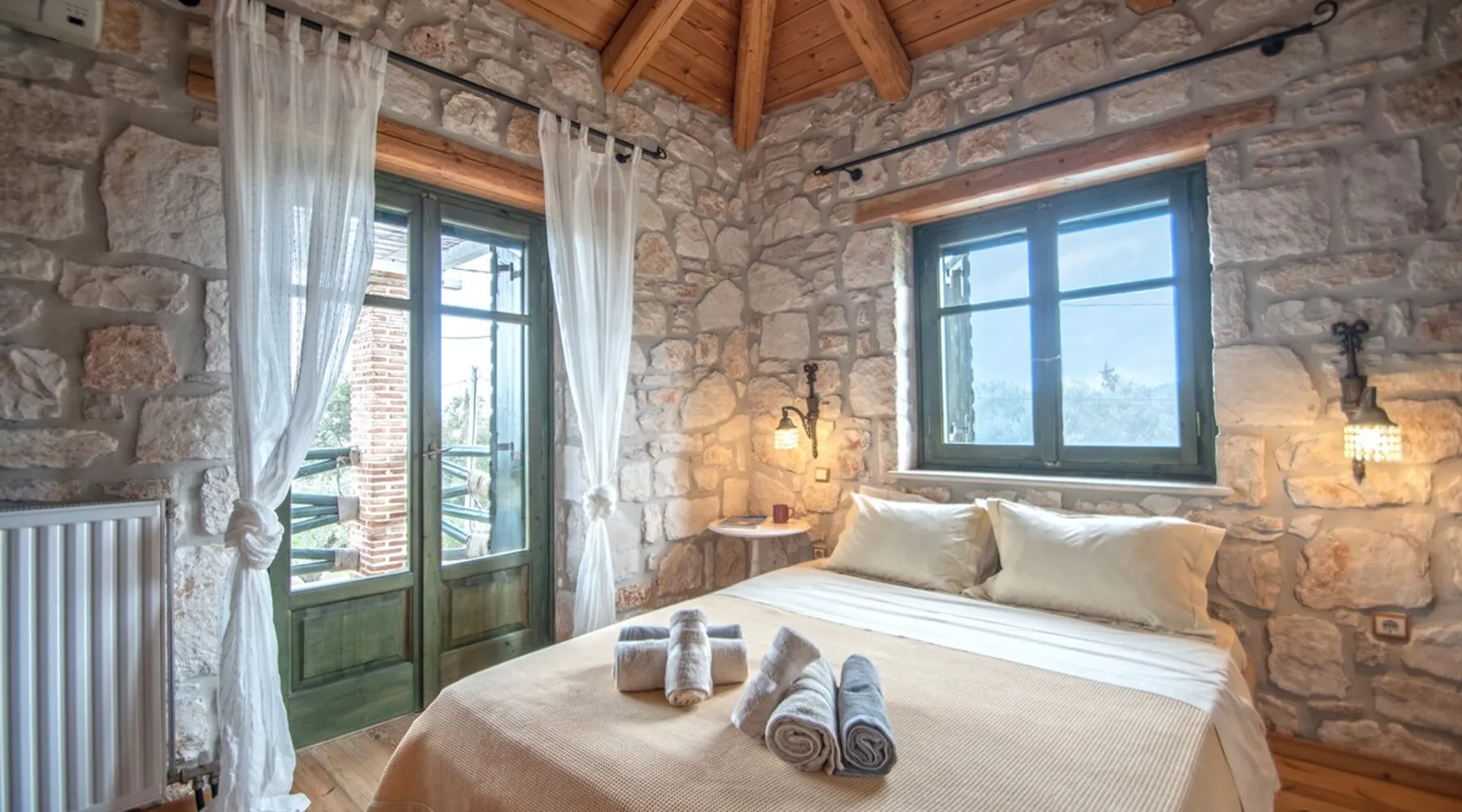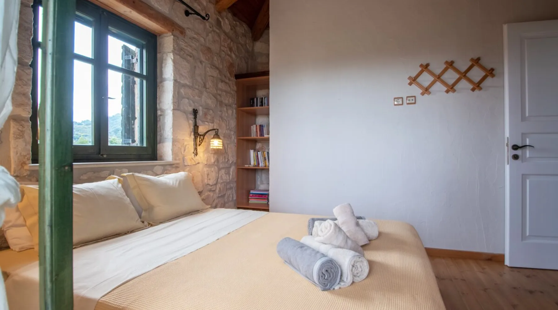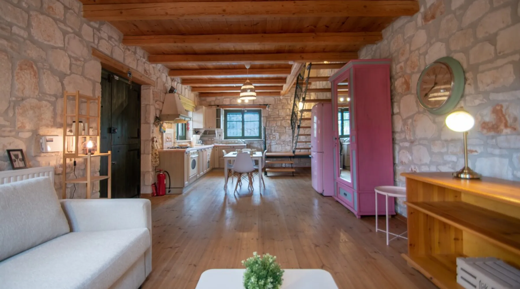Feel at home in our country-style, stone house. Stay in, relax by the pool, cook in the fully equipped kitchen in the coolness of the wooden and stone ground floor, dine in and barbeque with your beloved ones. Read your book in privacy on the balcony of the first floor; or just enjoy the stunning view from there… Go out and explore the beautiful area of Vasilikos, enjoy the long, sunny beaches and taste the local cuisine choosing among amazing restaurants. The space Valory' Houses is a complex of two country-style, stone houses, located in the beautiful area of Vasilikos. On the property there are two residences, the Tower and the Stone House (there is a small storage house in the middle with a washing machine that you can use). The residences are built entirely out of local stone and wood, giving a warm and ‘homey’ feeling. And that is exactly how we want our guests to feel, like home. The Stone House is a 110sqm stone house built on two levels and can accommodate up to 4 people with comfort. The area outside is private as well as the pool. On the ground floor, there is a fully equipped kitchen and a cozy living area. On the first floor, there are two bedrooms with double beds, a shared bathroom, and a balcony with a great sea view. The outside area offers our guests what they need to relax and enjoy some quality time. You can take your morning coffee on the veranda in front of the entrance. You can spend your day by the pool relaxing on the comfortable pool furniture. You can barbeque in the evening (there is a barbeque at the side of the house) and you can enjoy cocktails with friends in the sitting/dining area next to the pool. You can read your book on the balcony of the 1st floor with an amazing sea view. There is a corner in the house for every moment of your day. Baby beds and highchairs are available for your little heroes! Guest access You can enjoy full privacy and access to all corners of the house. Should you need, we can accommodate a baby bed and/or a smaller bed for a 5th person. Other things to note Vasilikos is the most beautiful part of the island. Some of the most amazing beaches are located here; Saint Nikolaos, Plaka and Banana but also the famous Gerakas beach, that is part of the protected National Marine Park of Zakynthos since it’s a popular nesting and breeding ground for the famous Loggerhead Turtles (caretta caretta) that frequent these shores. Some of the best restaurants are also located in the area, offering the local cuisine under the live sounds of the heart-warming local serenades, the famous Greek ‘kantades’. Moving around is easy. The village of Vasilikos is just a few meters away from your door. There, you can find anything you need; breakfast and coffee houses, supermarkets, rent-a-car, a bakery, a pharmacy and a health center. Registration Details 1873600