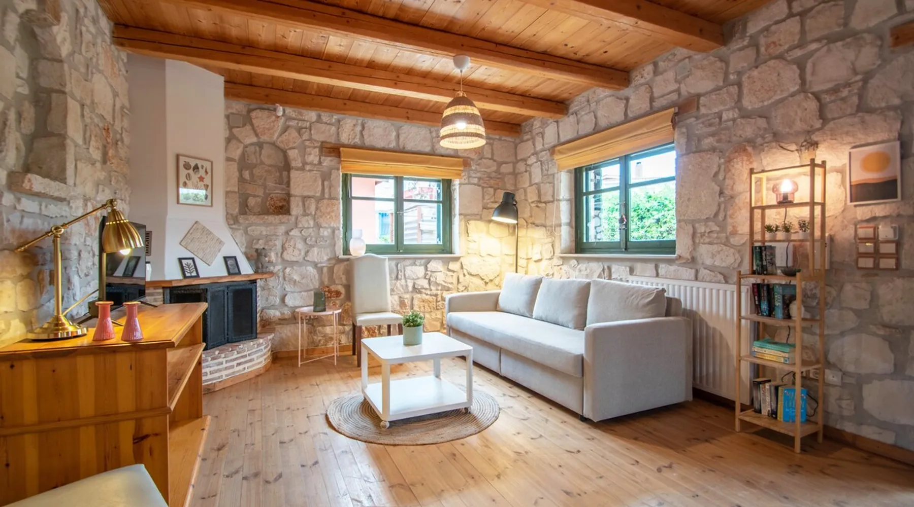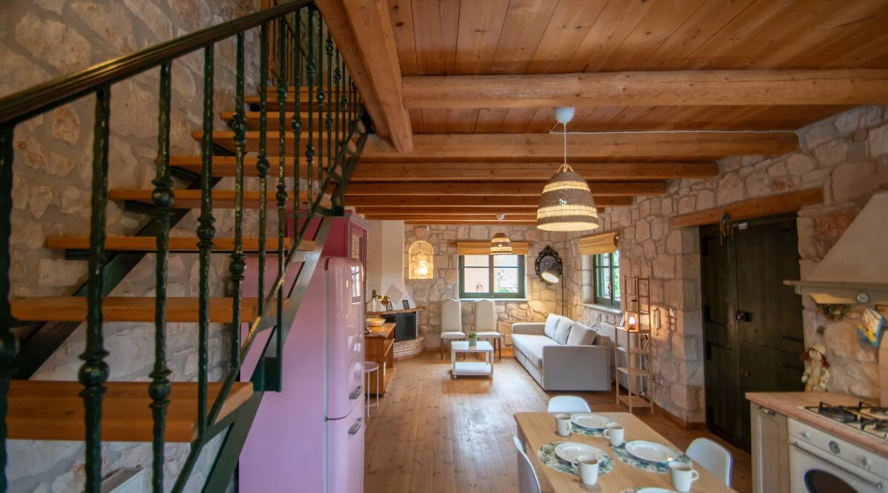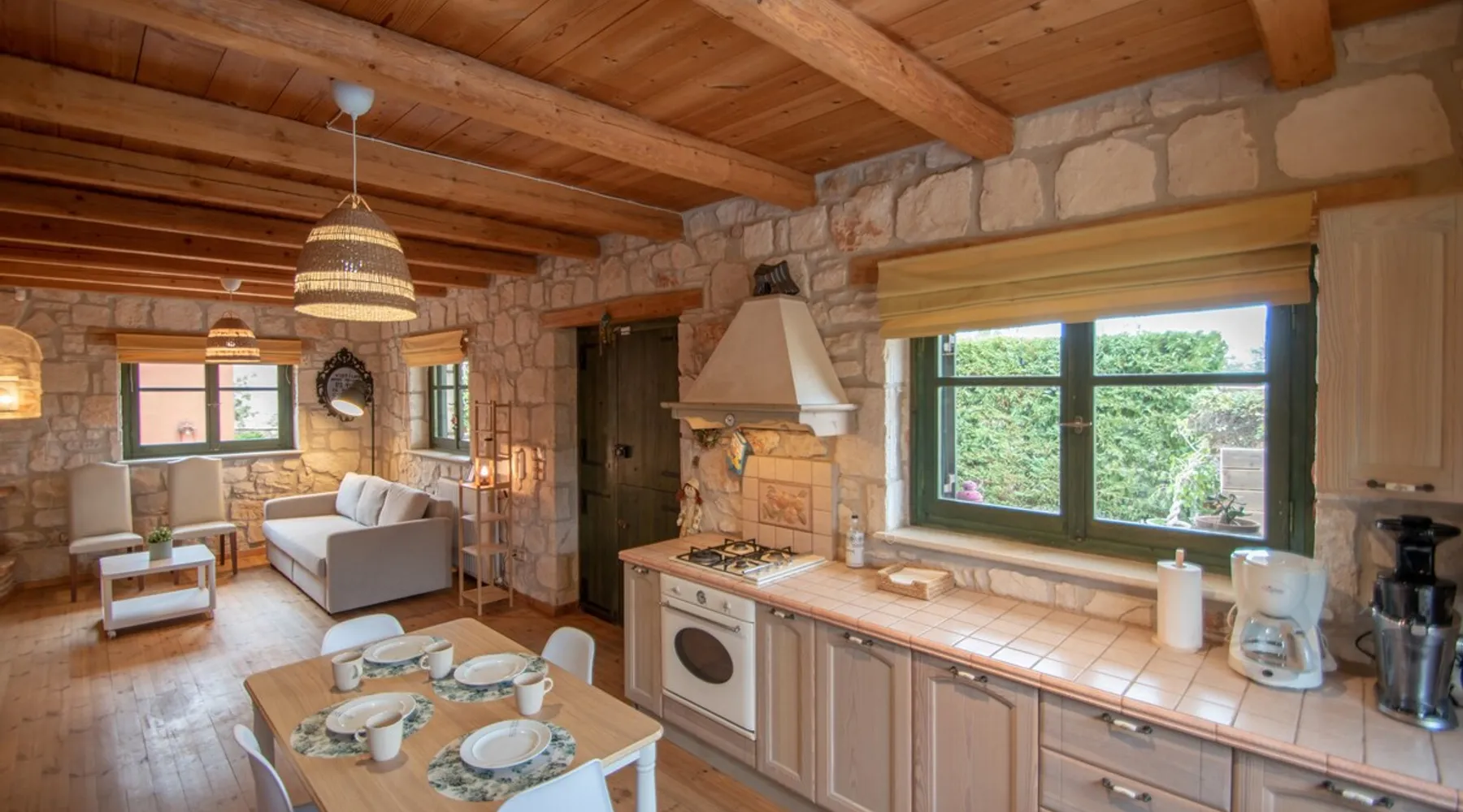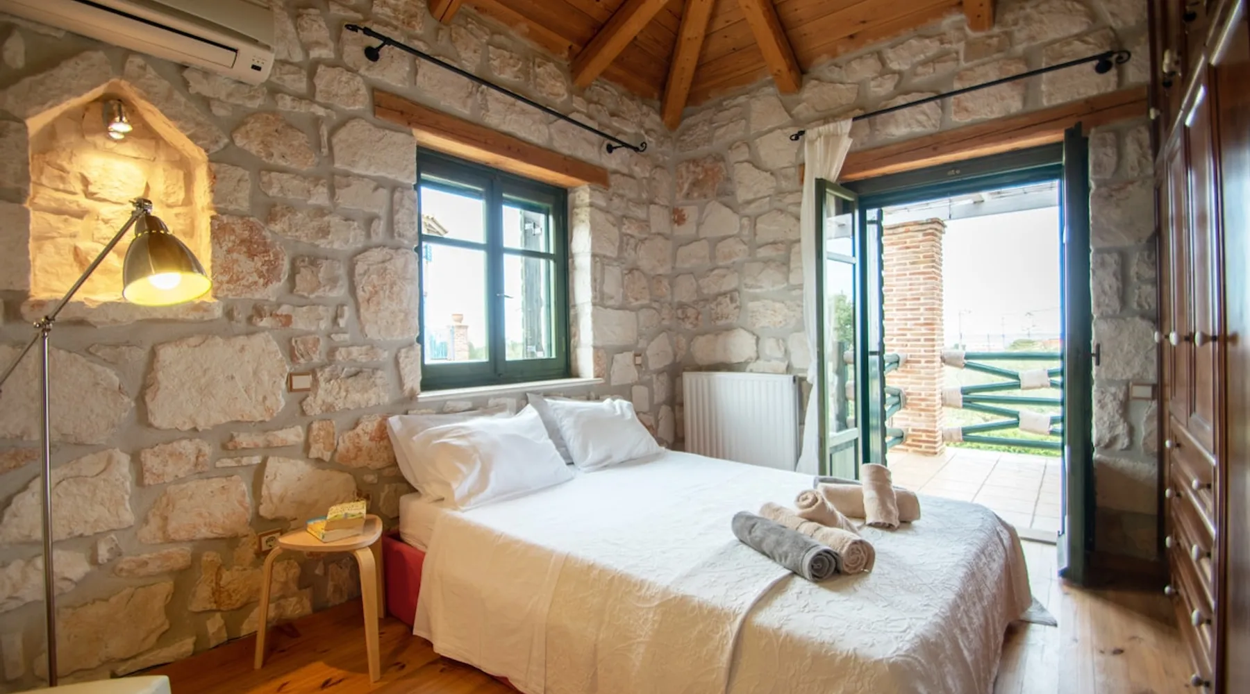 Feel at home in our country-style, stone house. Stay in, relax by the pool, cook in the fully equipped kitchen in the coolness of the wooden and stone ground floor, dine in and barbeque with your beloved ones. Read your book in privacy on the balcony of the first floor; or just enjoy the stunning view from there… Go out and explore the beautiful area of Vasilikos, enjoy the long, sunny beaches and taste the local cuisine choosing among amazing restaurants. The space Valory' Houses is a complex of two country-style, stone houses, located in the beautiful area of Vasilikos. On the property there are two residences, the Tower and the Stone House (there is a small storage house in the middle with a washing machine that you can use). The residences are built entirely out of local stone and wood, giving a warm and ‘homey’ feeling. And that is exactly how we want our guests to feel, like home. The Stone House is a 110sqm stone house built on two levels and can accommodate up to 4 people with comfort. The area outside is private as well as the pool. On the ground floor, there is a fully equipped kitchen and a cozy living area. On the first floor, there are two bedrooms with double beds, a shared bathroom, and a balcony with a great sea view. The outside area offers our guests what they need to relax and enjoy some quality time. You can take your morning coffee on the veranda in front of the entrance. You can spend your day by the pool relaxing on the comfortable pool furniture. You can barbeque in the evening (there is a barbeque at the side of the house) and you can enjoy cocktails with friends in the sitting/dining area next to the pool. You can read your book on the balcony of the 1st floor with an amazing sea view. There is a corner in the house for every moment of your day. Baby beds and highchairs are available for your little heroes! Guest access You can enjoy full privacy and access to all corners of the house. Should you need, we can accommodate a baby bed and/or a smaller bed for a 5th person. Other things to note Vasilikos is the most beautiful part of the island. Some of the most amazing beaches are located here; Saint Nikolaos, Plaka and Banana but also the famous Gerakas beach, that is part of the protected National Marine Park of Zakynthos since it’s a popular nesting and breeding ground for the famous Loggerhead Turtles (caretta caretta) that frequent these shores. Some of the best restaurants are also located in the area, offering the local cuisine under the live sounds of the heart-warming local serenades, the famous Greek ‘kantades’. Moving around is easy. The village of Vasilikos is just a few meters away from your door. There, you can find anything you need; breakfast and coffee houses, supermarkets, rent-a-car, a bakery, a pharmacy and a health center. Registration Details 1873600