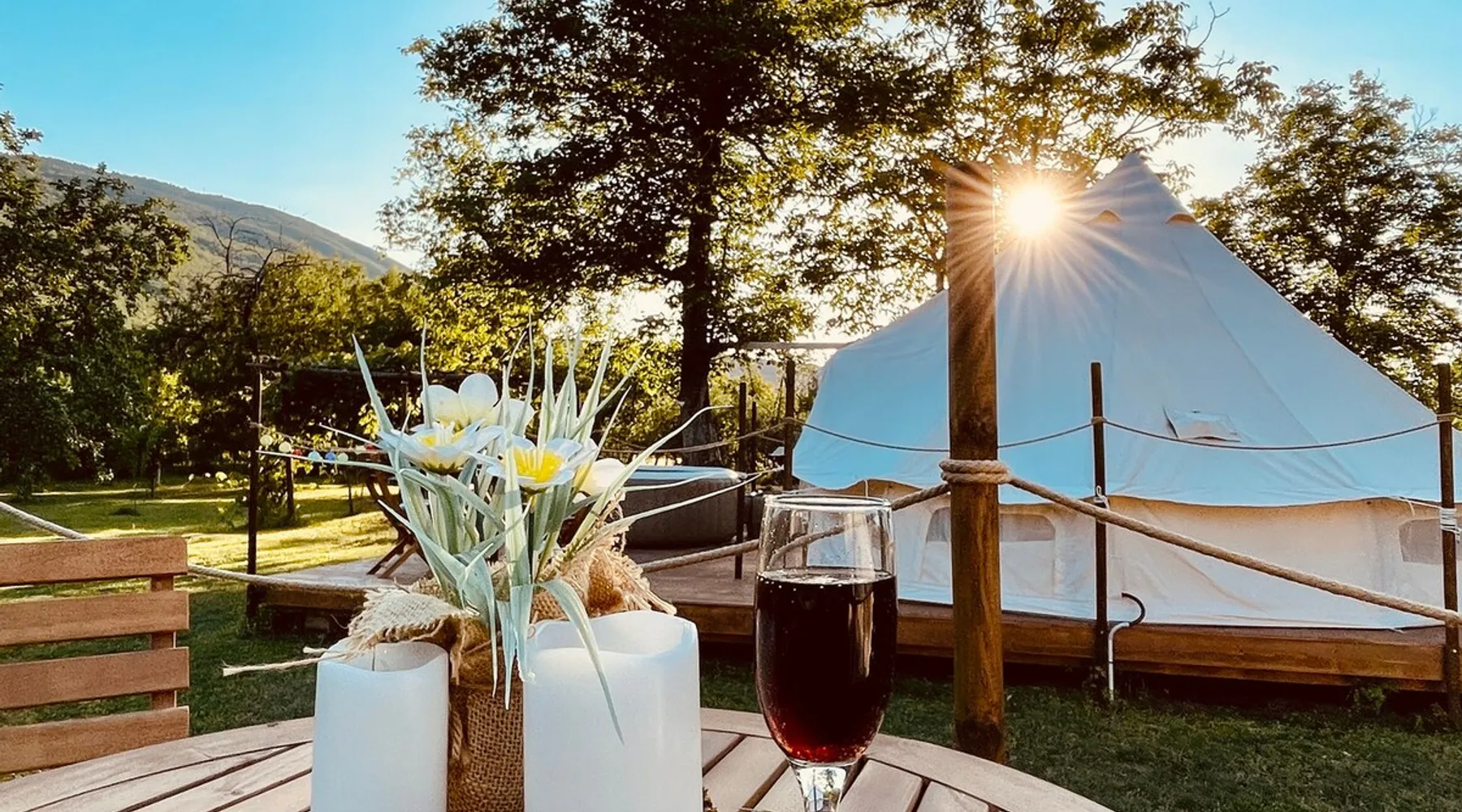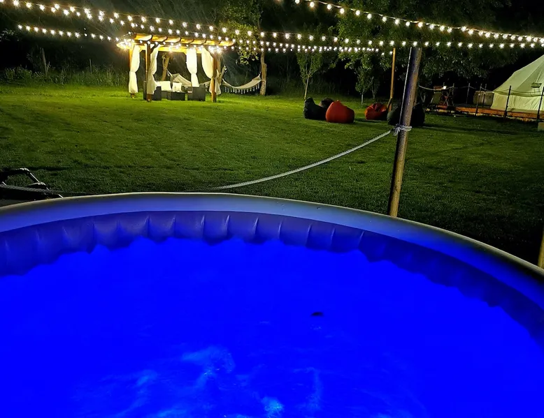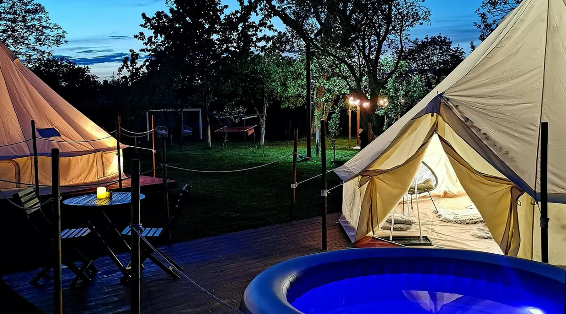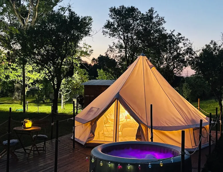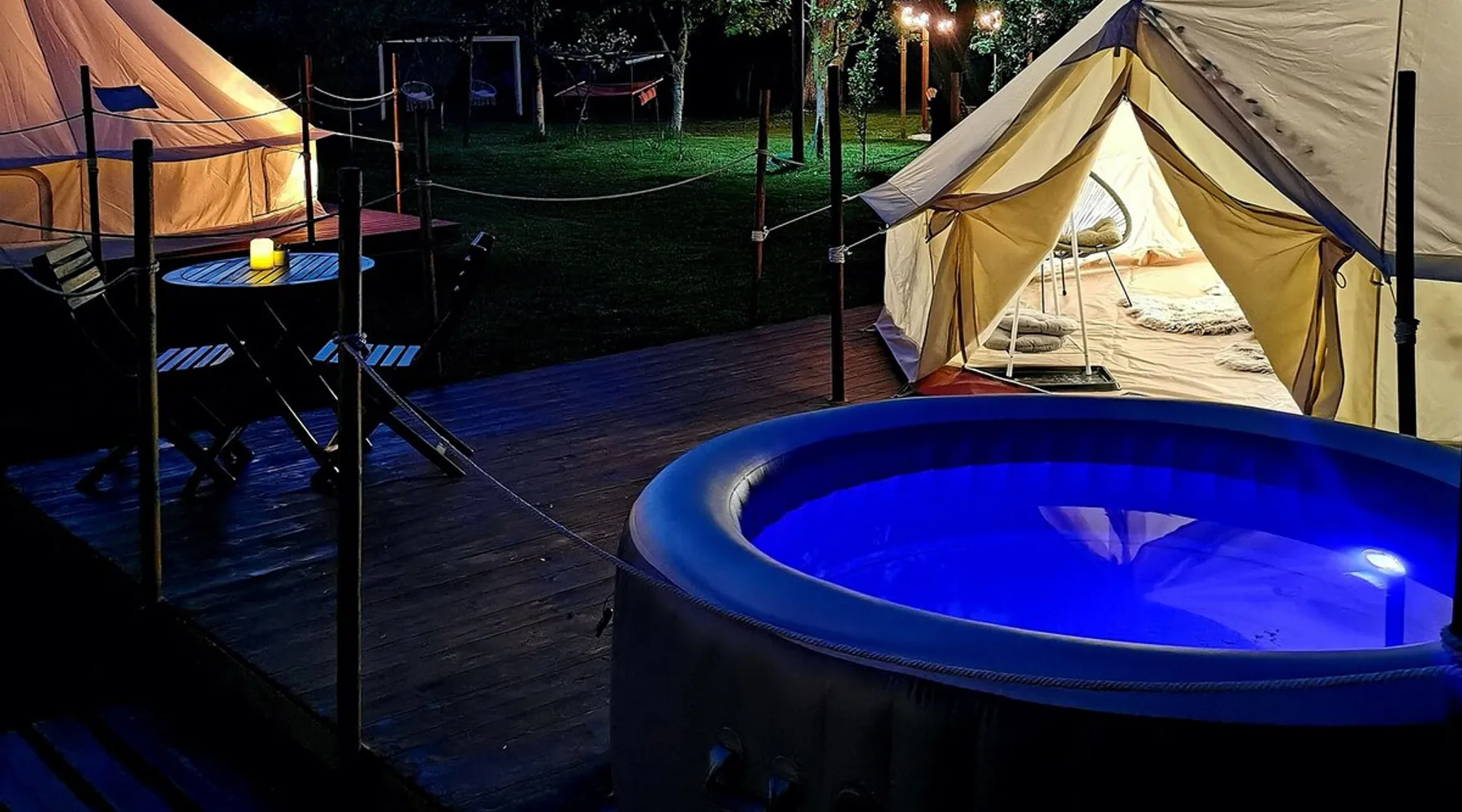 The Butterfly tent within Green Garden Glamping Retezat is a glam tent where you experience the comfort of a classic accommodation in the middle of nature. The private jacuzzi located on the terrace of the tent offers you unique moments of relaxation and pampering in the middle of nature. The air conditioning makes you enjoy comfort in the warm summer days.To make your experience complete we have prepared a kitchenette,3 gazebos,a firepit, hammocks and swings. Discover the luxury of glamping in the Butterfly tent