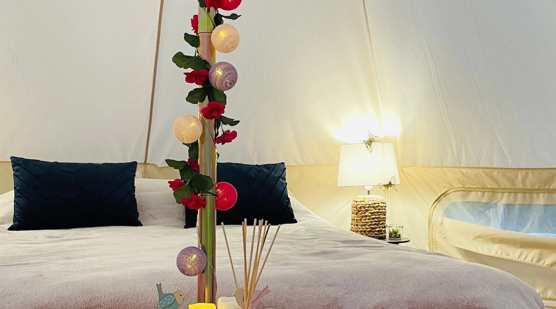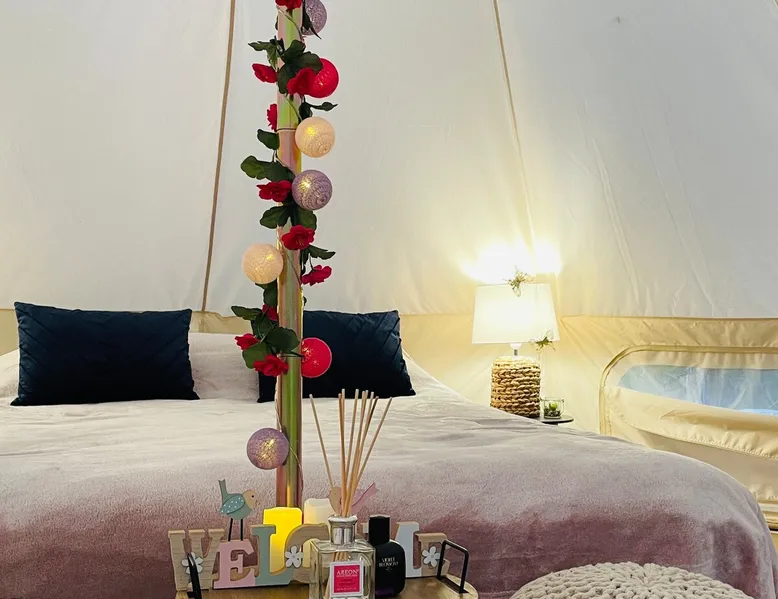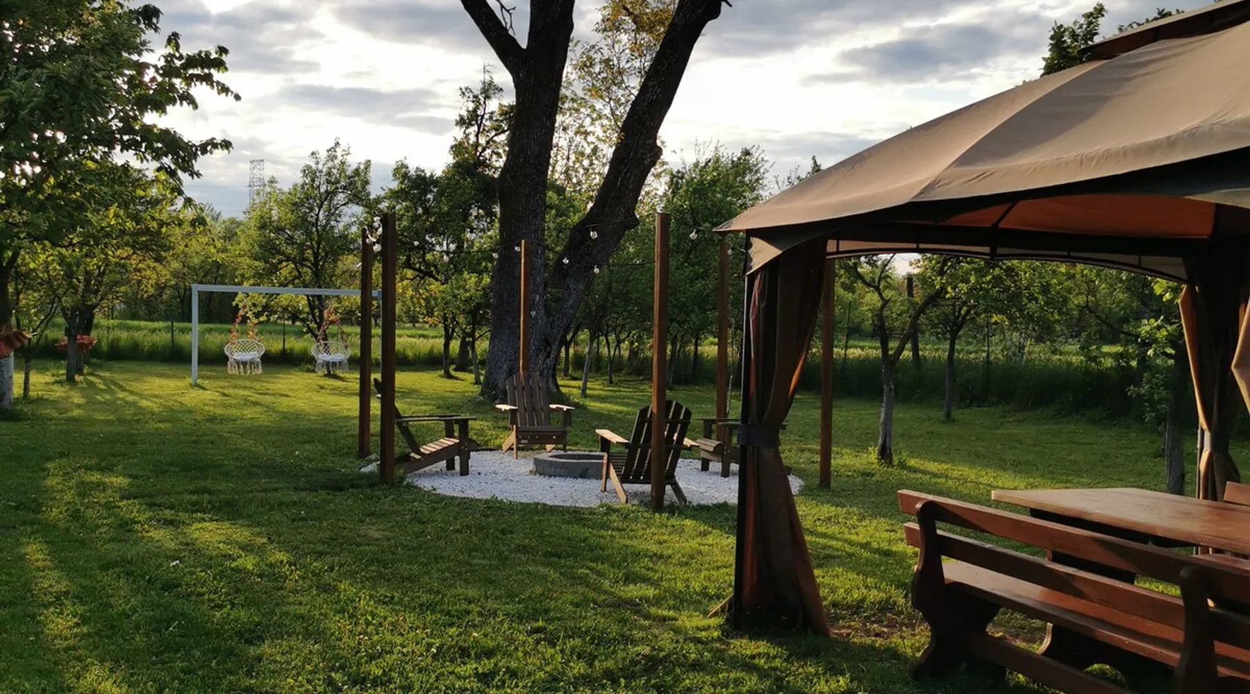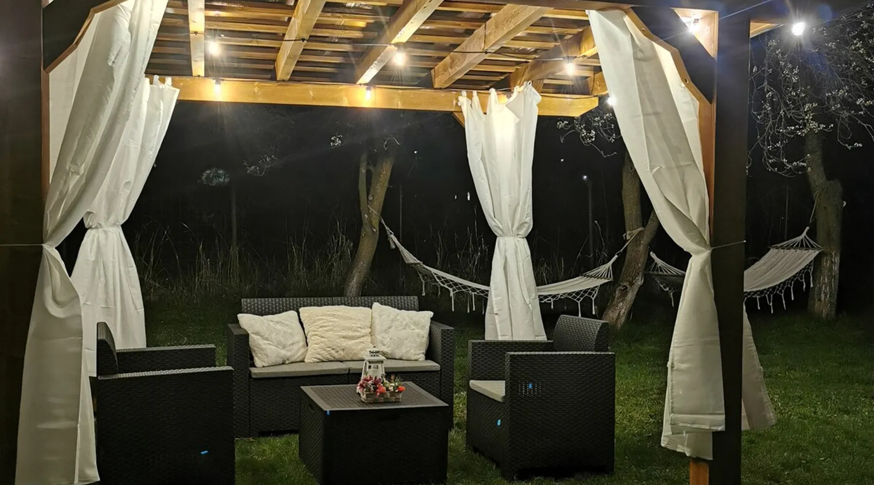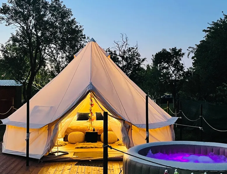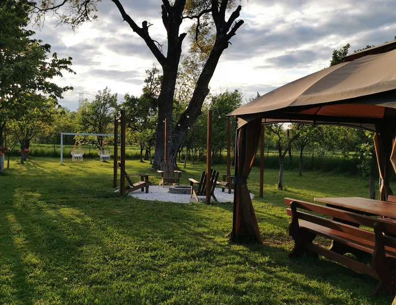 The Butterfly tent within Green Garden Glamping Retezat is a glam tent where you experience the comfort of a classic accommodation in the middle of nature. The private jacuzzi located on the terrace of the tent offers you unique moments of relaxation and pampering in the middle of nature. The air conditioning makes you enjoy comfort in the warm summer days.To make your experience complete we have prepared a kitchenette,3 gazebos,a firepit, hammocks and swings. Discover the luxury of glamping in the Butterfly tent