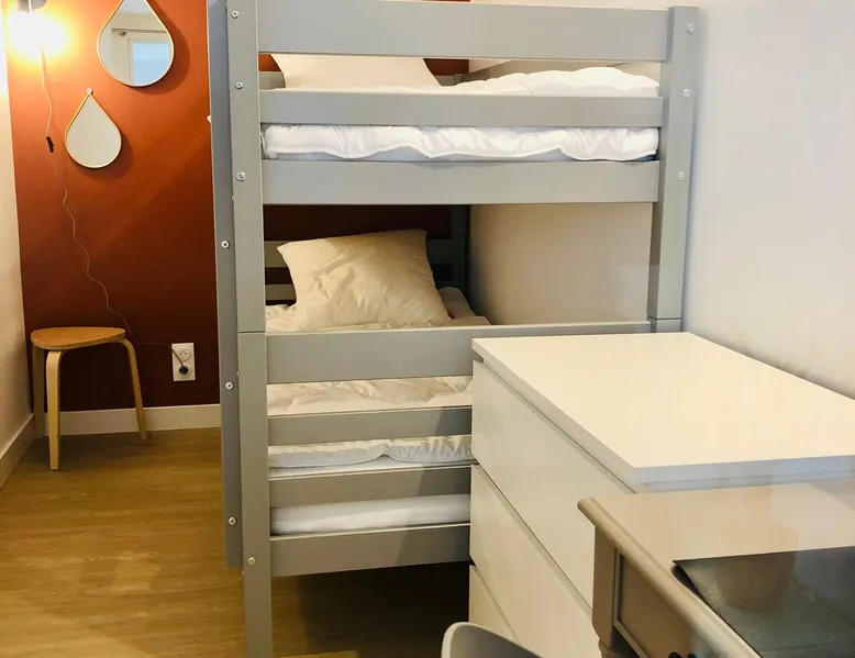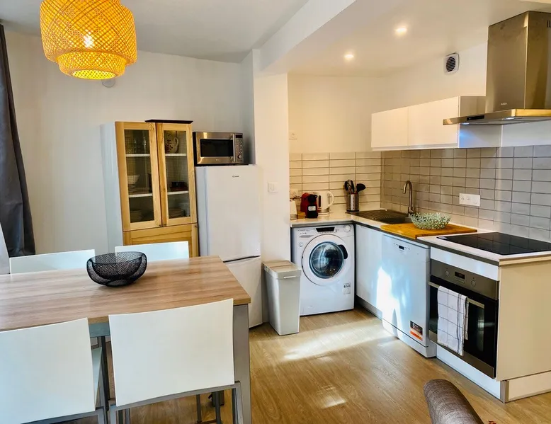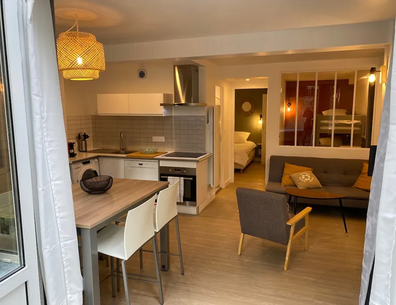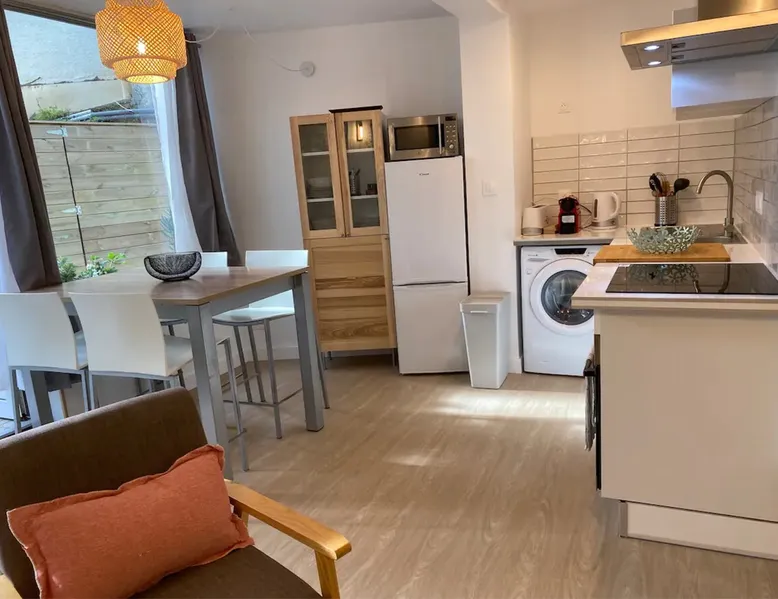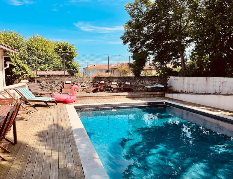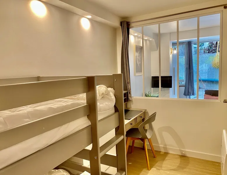 Welcome to Biarritz! Enjoy your vacation in this 40 m² 2 bedroom with air conditioning, located in a residence with swimming pool, just a few minutes' walk from the beaches, including the mythical Côte des Basques, as well as the city center and Les Halles de Biarritz. The space 🛏 Sleeping arrangements & ideal setup: • An air-conditioned bedroom with a double bed 160 cm, • A small second day room with bunk beds and desk • An air-conditioned living room with open equipped kitchen (oven, stove, microwave, fridge, coffee machine, washing machine, dishwasher) • Wifi, TV (fiber) 🍽 Private outdoor area: Guests can enjoy alfresco meals or aperitifs right in front of the apartment, where a terrace with table and chairs await you. 🏊♀ Pool in the residence: Small condominium of 12 apartments with unheated and renovated swimming pool. A real plus to relax when you get home from the beach during the day! Ideal 📍 location in Biarritz: • Located 21 avenue de la République, the apartment is set back from the street, quiet • Walking: 5-10 minutes from the Côte des Basques, downtown, Les Halles and all shops, restaurants, bars and markets 👉 For families, Parc Mazon, with its children's games, is just across the street! 🚗 Access & parking: No space in the condominium, paid parking on nearby streets, but free on the 1st part of the avenue. The apartment is also easily accessible by bus. The train station and airport are about 10 minutes each by taxi. I will send you all the parking information before your arrival if you need it, which you can also find on the Biarritz city website, where you can make your subscription requests, depending on the length of your stay. 🌿 A convenient and comfortable pied-à-terre to discover Biarritz and the Basque Country as a couple, for families or groups of friends. Guest access You will have access to the entire apartment, including the kitchen, living room, bedroom, small room with bunk beds, as well as the outdoor terrace. The pool is also accessible for you to relax! It's shared with the other residents. Other things to note Before you book, here's some useful information to know: Bedding and towels: We provide 1 shower towel per person (70x140cm - not to be used at the beach) as well as bed linen. You won't need to be cluttered with this! Shwoererer with toilet: It is practical and functional, the shower is about 1mx1m, ideal for a comfortable stay. Hot water tank: The apartment has a flat hot water tank with 2 vats: one heats up while the other is used, which makes it possible to have hot water at all times. It works well for 4 people, but if many of you use it at the same time, it is advisable to leave a short delay between showers for the water to heat up properly. Parking: The apartment does not have a private parking space in the residence. The surrounding streets are paid in season, so you'll need to park in the nearby public parking areas, or park a little before, on free streets. I advise you to check the paid parking times to avoid any fines. Alternatively, the apartment is accessible by bus or public transport, which can be convenient for those who come without a car. I'll be happy to send you the parking options available to you in Biarritz. Registration Details 6412200329059
