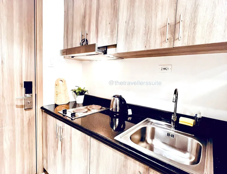 Welcome to THE TRAVELLERS SUITE at Fame Residences Tower 2 The Fame Residence is ideally situated in the heart of EDSA, offering convenient access to all key destinations. Traveling to the northern and southern parts of Manila is effortless, and reaching Ortigas Business Center, Makati, and BGC is quick and easy. Living here feels like being at the center of it all. Staying in the area is like living in the center of it all. The space The Travellers Suite is a 1 bedroom condominium unit with balcony where you can relax and unwind without living the city. Our place is perfect for business or leisure trips, tourist, balikbayans , family or couple who want to staycations too! The Travellers Suite is a fully furnished w/ 50Mbps UNLIMITED INTERNET CONNECTION / WIFI ROUTER Bedroom: 1. Full Double Size Bed w/ memory foam 2. Aircondition. 3. Cabinets 4. Linens and Towels 5. Hair Dryer 6. Steamer Iron Common Area 1. Smart TV with HDMI connection + NETFLIX 2. 2-Seater Sofa Bed 3. Floor lamp 4. Flip Dining Table (Good for 2) 5. Basic kitchen microwave, rice cooker, kettle and other basic cookware and dining wares 6. Water Heater. We Can Accommodate up to 4 person In a room. Due to Fame strict policy disallowing guests to have visitors, please note that we are not able to change the list of registered names on the day of the check in and any day after that. Building security is fairly strict, so we'll need to pre-register your names before arrival. Guest access POOL AREA: - 2 Authorized guests can use the pool area as preferred by Property Management Office. - Operating hours is from 6:00 AM to 10:00 PM except Monday due to weekly cleaning - Registration is needed prior to the use of pool. 150/head-reg days 300/head-holiday Please inform us if you plan to use the pool area. The Fame Residence is ideally situated in the heart of EDSA, offering convenient access to all key destinations. Traveling to the northern and southern parts of Manila is effortless, and reaching Ortigas Business Center, Makati, and BGC is quick and easy. Living here feels like being at the center of it all. Other things to note HOUSE RULES: 1. No pets allowed 2. Strictly No smoking inside the unit 3. No unregistered guests allowed 4. Eating and drinking on the bed is not allowed. 5. No hanging and drying of clothes and other items in the balcony area. 6. Please turn off the Aircon, TV and Lights when leaving the premises for an extended period. 7. Please respect the noise curfew 8. Please keep your keys with you. Lost key has a replacement fee. 9. Please lock the door each time you leave the unit 10. Please take care of our sheets and towels 11. Please take care of the furnishings. Any damaged items will be charged accordingly 12. No rearrangement of the furniture 13. Dispose your leftover cooking oil into the plastic bag and disposed to the bin outside the unit not directly to the kitchen sink. 14. Please do your own dishes and kitchen wares should be cleaned and kept in their original places prior to checking out. 15. Take the trash out before you leave.