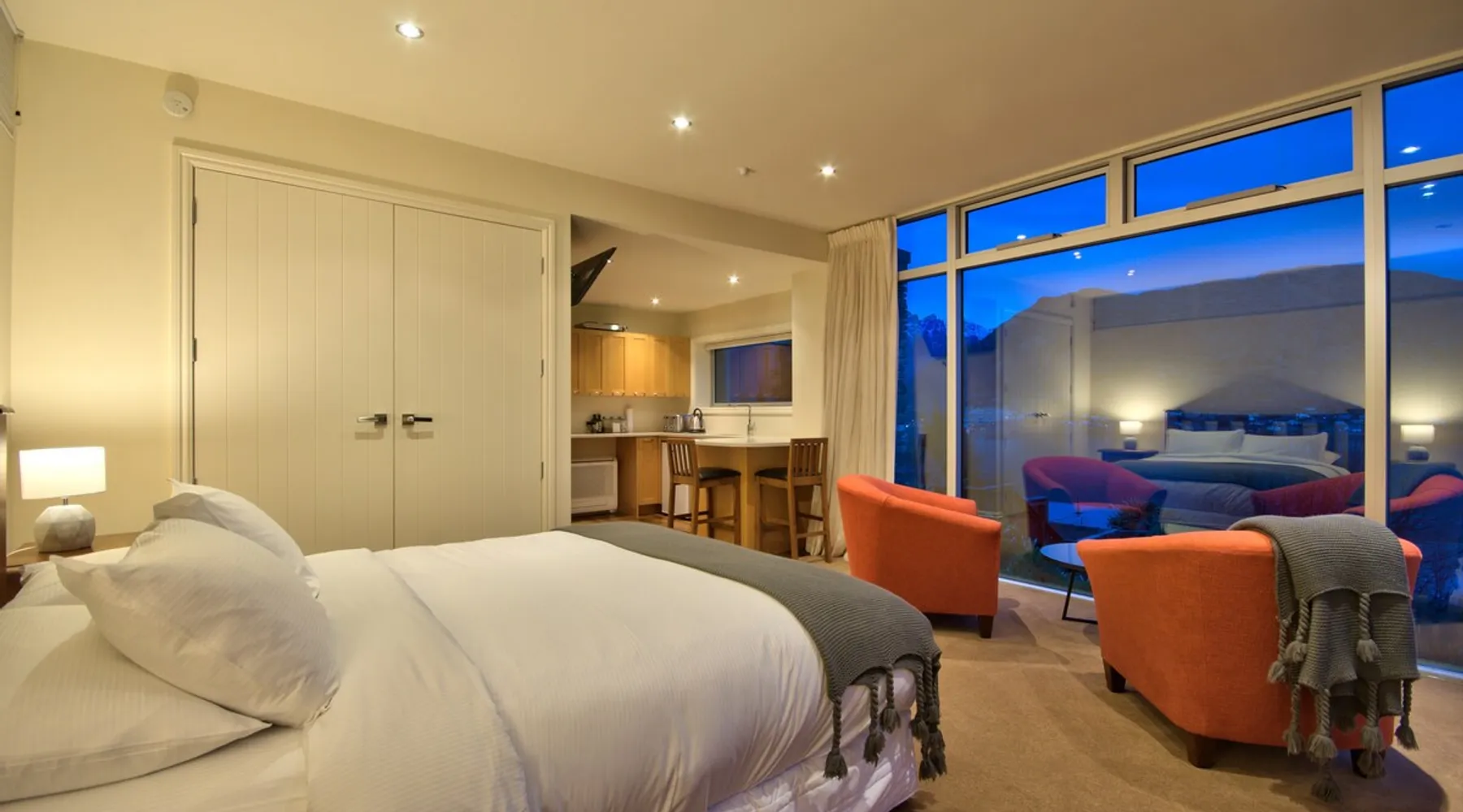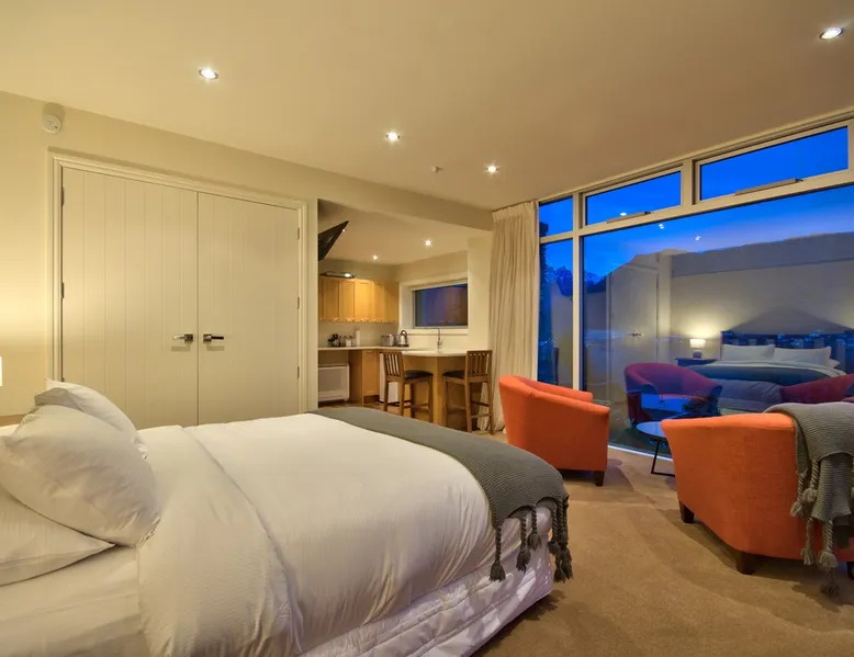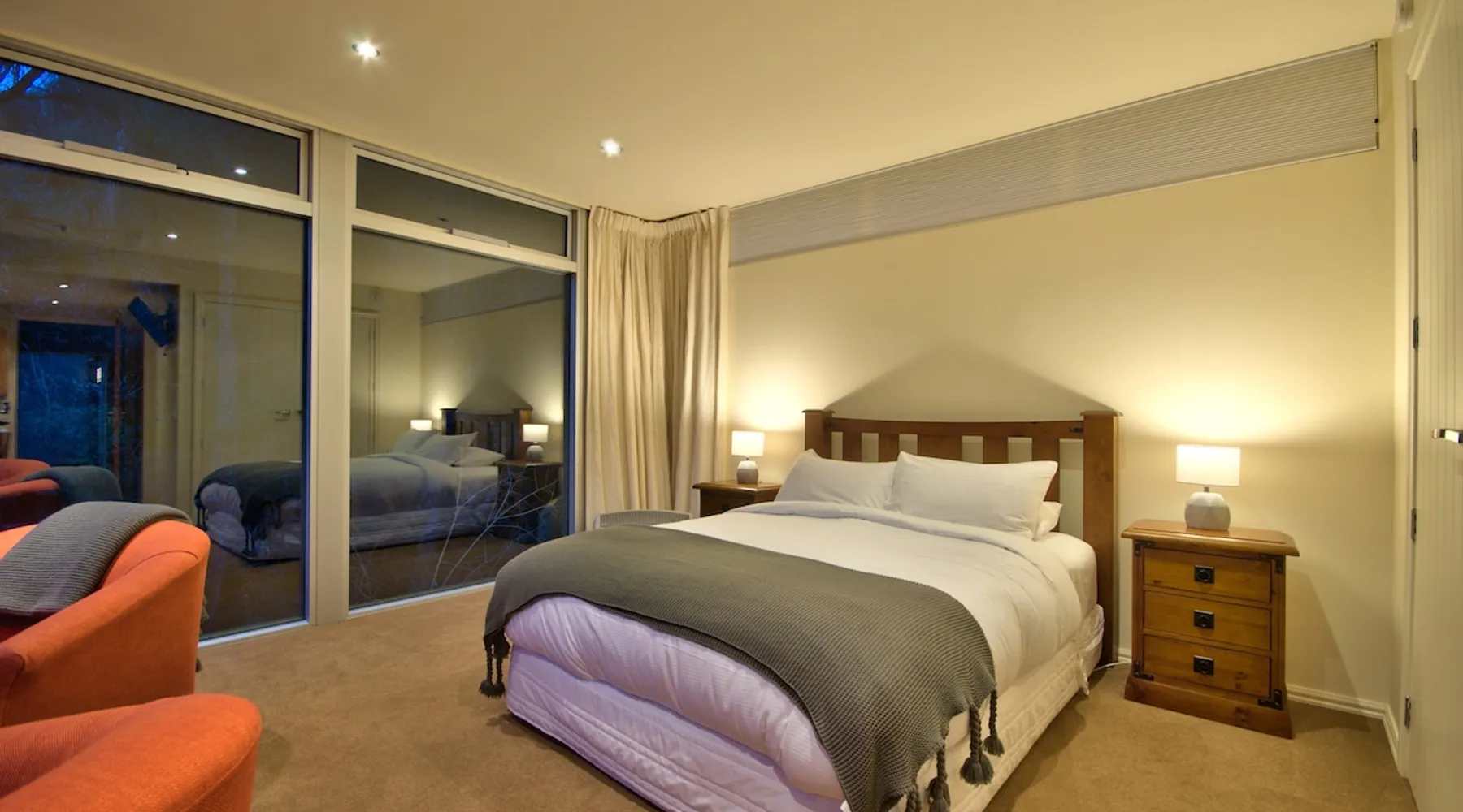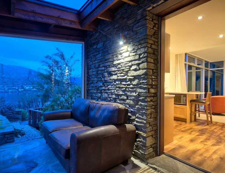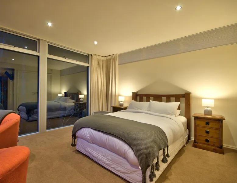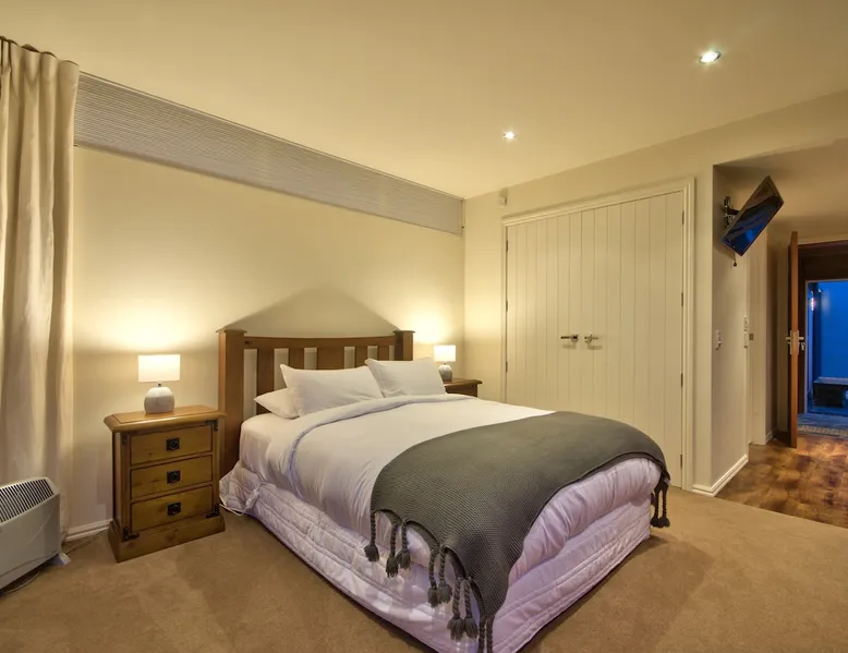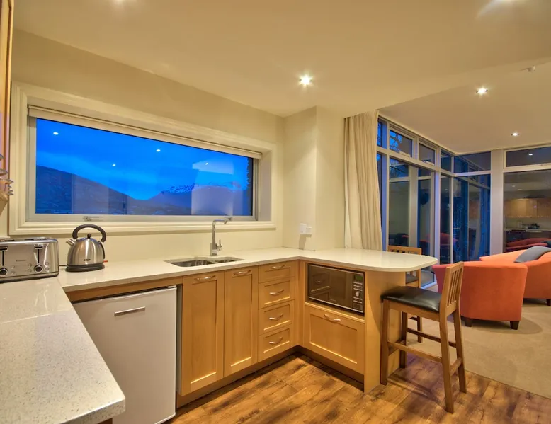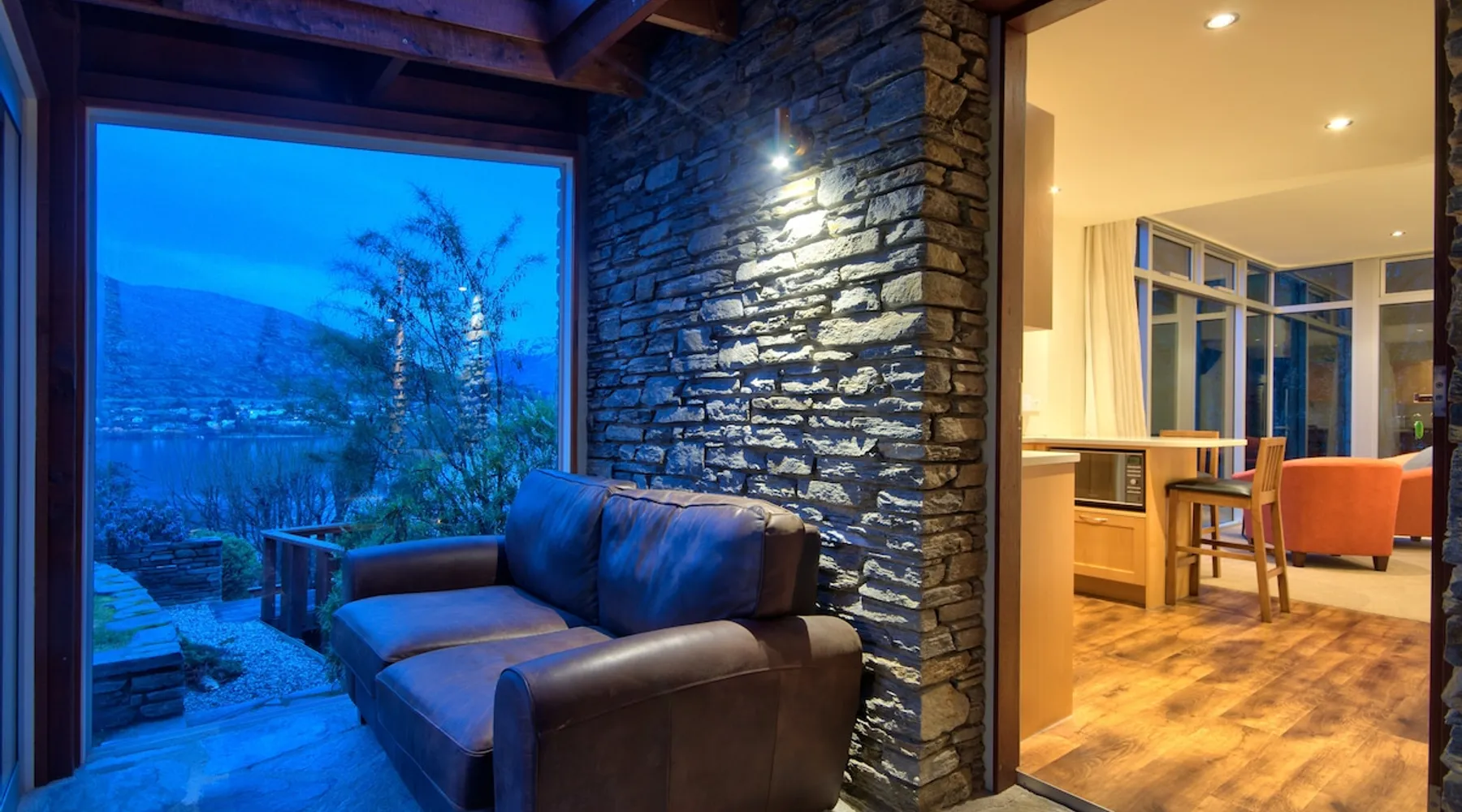 The names Four Peaks Guest House speaks for itself. It is a beautiful guesthouse with stunning views of Lake Whakatipu and the four peaks (The Remarkables, Deer Park Heights, Cecil Peak and Walter Peak) and the surrounding mountains. The space Our Guesthouse is detached from the main house with it's own separate access and is very private, set amongst native trees and looking out towards the lake and mountains. It is ideal for a couple, with one luxurious queen-size bed with electric blanket and high quality linen and bedding. The fully equipped hotel style kitchen has a microwave and an electrical portable hob. You'll find towels, a hairdryer and organic body wash provided in the bathroom. Other features include a large wardrobe, iron and ironing board, clothes hangers and a sitting area with two comfortable chairs. It also has an outdoor seating area to enjoy the remarkable view. There is a television with Freeview and unlimited WIFI plus a heat-pump to keep you cosy in winter. Guest access You have full use of the guesthouse which includes a bench seat outside the front door as well as a small outdoor table with four chairs on the lawn. The guesthouse is semi attached to the main house which is also rented on a short term basis. Those guests have a seperate access point as well as seperate outside dinning/ living areas. Other things to note AGE OF GUESTS Guest(s) making a booking must be over 18 years of age. Additionally, all guests who are unaccompanied by a parent or guardian must also be over 18 years of age. MINIMUM RENTAL PERIOD The minimum rental period is 2 nights, public holidays have a minimum stay of 3 nights, and Christmas and New Year Periods have a minimum stay of 5 nights. TEMPERAMENTAL WI-FI AND SATELLITE TV AT TIMES Please note that due to the beautifully placed location of the guesthouse, the wifi and satellite television can sometimes be temperamental. If you are wanting high speed internet, most cafes and surrounding restaurants have high speed Wi-Fi available free of charge. No smoking or Pets.