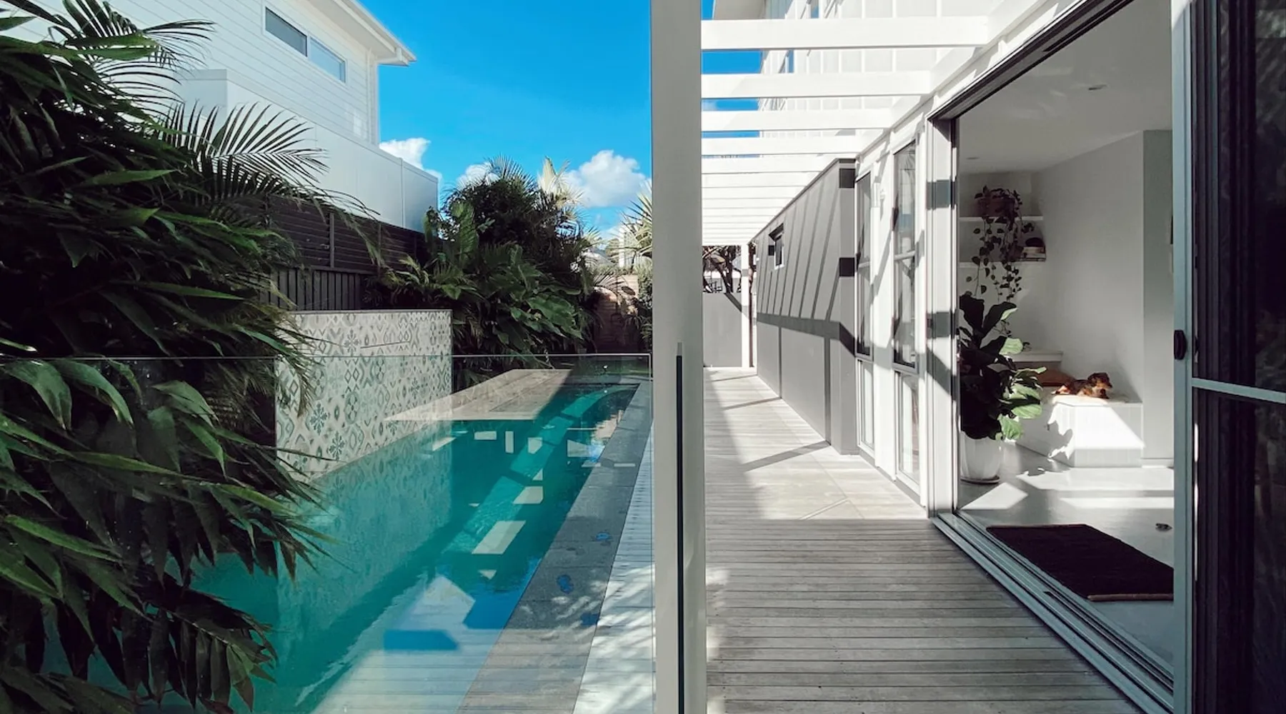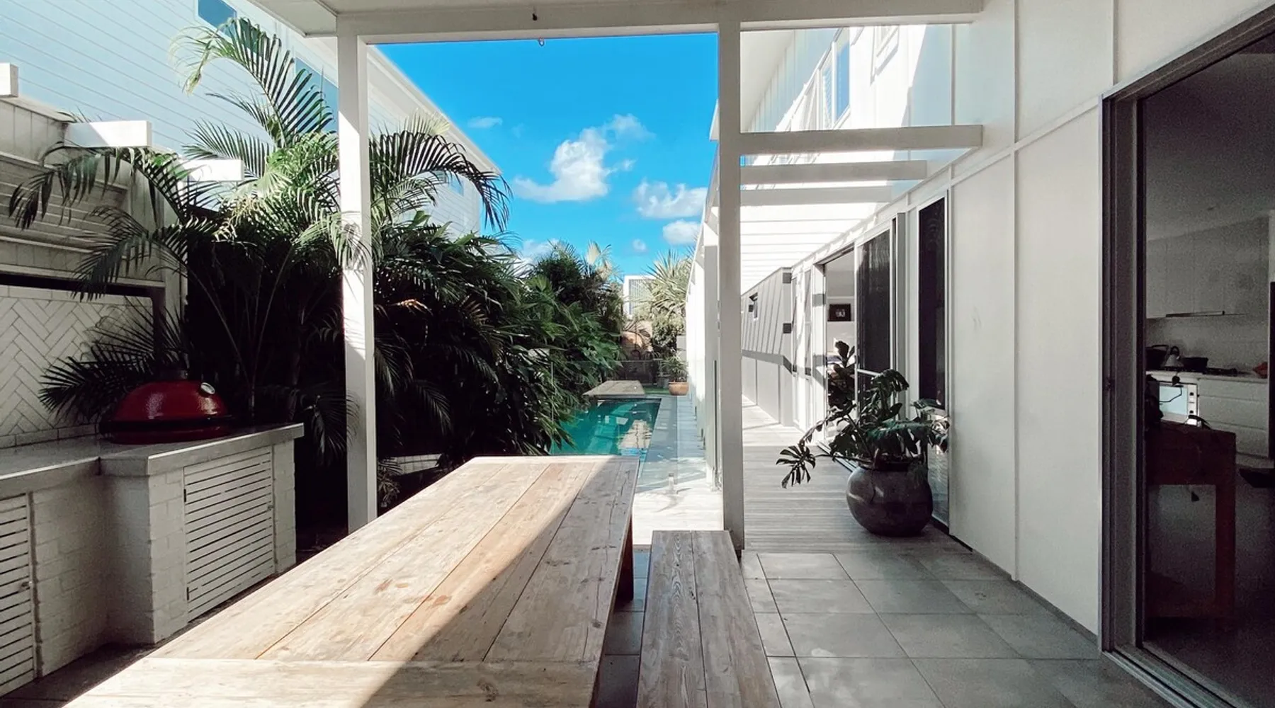 Daybreak Vista. A beautiful, modern beach home just a short 50m walk to the ocean. Spend the morning at the beach, then stroll on home to enjoy the pool & a hot outdoor shower. A perfect holiday home for families or a small group of friends. Just minutes from funky cafes, restaurants & boutiques not only in Casuarina but neighbouring towns Cabarita Beach & Kingscliff. This beachside home has 4 bedrooms & 3 bathrooms with an outdoor living & entertaining area that is the heart of the home. The space Enjoy a beachside get away in modern beach home... Daybreak Vista. With 4 bedrooms and 3 bathrooms, this beautiful home sleeps 8. Boasting a beautiful large open floor plan with concrete floor, guests will love the space at Daybreak Vista. Create magic in the kitchen with loads of light and space. Meander outside to sit beneath the covered outdoor area, share meals al fresco style and swim in the pool surrounded by tropical gardens. How about park up on the daybed with a cuppa & a book whilst listening to the ocean not far. Relax in the media room and enjoy watching your favourite program or movie. Upstairs discover 3 generous bedrooms, 1 en-suite and 1 bathroom, all with ducted aircon. The master bedroom is ideal for lazy mornings with king size bed, walk in robe and private en-suite. Open the glass doors and listen to the waves crashing from your bed. The other two upstairs bedrooms, one has 2 single beds & the other a double bed. Neighbouring to the family bathroom with bath tub. 50m walk is the delicious Greek restaurant Xenia, an amazing spot for locals & holiday makers! You may also enjoy other local hotspots such as Halcyon House, Spice Den, Tucker, Crafty Cow, No. 35 just to name a few! Bedroom 1. King bed + ensuite bathroom, air conditioning, and a small verandah. Bedroom 2. 2 x single beds. Bedroom 3. Double bed. Bedroom 4. Queen bed. (Media room. Does have a Queen fold out sofa bed.) Pets considered. The yard is fully fenced secure. Please enquire. Guest access The guests have two car parks the driveway. And street parking also. Other things to note This home is not suitable for parties. Registration details PID-STRA-35786
