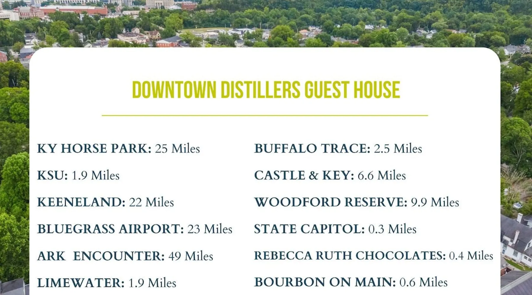 Walk to Dtown Frankfort/2.3mi to Buffalo Trace