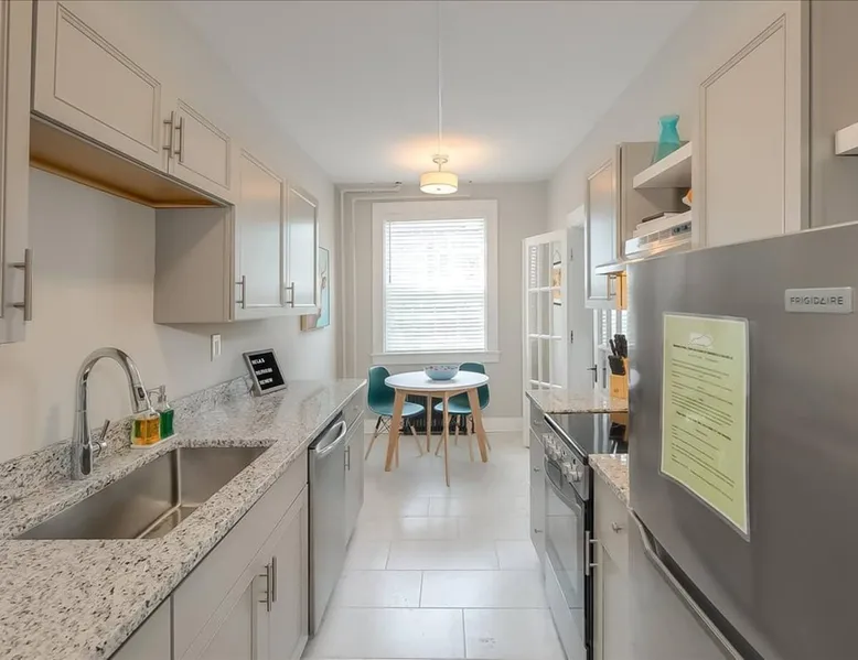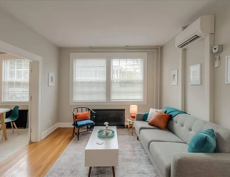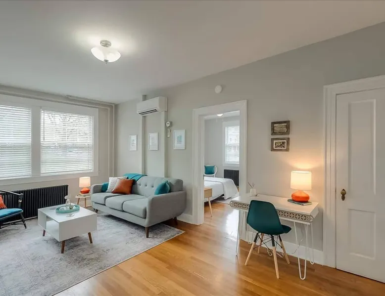 This historic gem is a few blocks in either direction from the State Capitol and downtown Frankfort. The 1930's brick building is stylishly renovated and historically preserved. This one-bedroom apartment has a separate living room and a bedroom with queen-sized bed and fluffy linens. The carefully restored Art Deco bathroom has hotel-quality towels. The freshly remodeled kitchen invites you to sip coffee. Blackout curtains and sound-insulated doors will help you sleep peacefully. The space This one-bedroom apartment has a separate living room. The bedroom features a queen-sized bed with fluffy linens. The historically preserved, art deco bathroom is stocked with hotel-quality towels. The freshly remodeled kitchen has all of the essentials you need to feel at home. Blackout curtains in the bedroom will ensure that you have a peaceful sleep. We are situated in the heard of the lovely capital city of Kentucky, with its nearby local attractions, delicious restaurants and famous bourbon distilleries. We are a few blocks in either direction from the State Capitol and downtown Frankfort. This 1930's era brick building has been stylishly renovated with an eye to historic preservation. It houses ten well-appointed monthly rental units. If you are booking for a larger family or friend group, consider renting neighboring units in our building. You can have group adventures and then recharge in your own private spaces. Guest access This building is accessed through an outside door with keyless entry. Each unit also has its own keyless entry code. There is a sitting area between floors for meeting and socialization. The well lit, safe basement has free washers and dryers for guest use. Other things to note This building is non-smoking, non-vaping and illegal drugs are not allowed. For your safety, candles are not allowed.