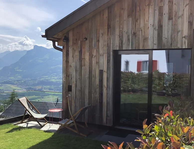 Take it easy at this unique and tranquil getaway. Discover an exceptional landscape in the heart of the mountains with forests and ski resort nearby, 15 minutes from the city center of Vaduz, capital of Liechtenstein. This totally independent apartment will offer you a cocoon of softness to recharge your batteries. We'll be happy to share a unique experience with you in a confidential place. The space The apartment is composed of two rooms and one bathroom. The living room is equipped with a kitchenette with a fridge and a microwave oven. In the bedroom you will find a 160 cm double bed and a small desk.