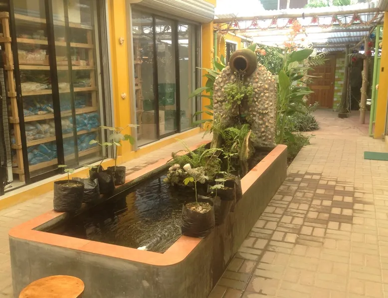 This space is located in a traditional house, part of a complex with shops, fish pond, guest house, gardens, right in the city centre, close to the city park and banks, and walking distance to the beach.