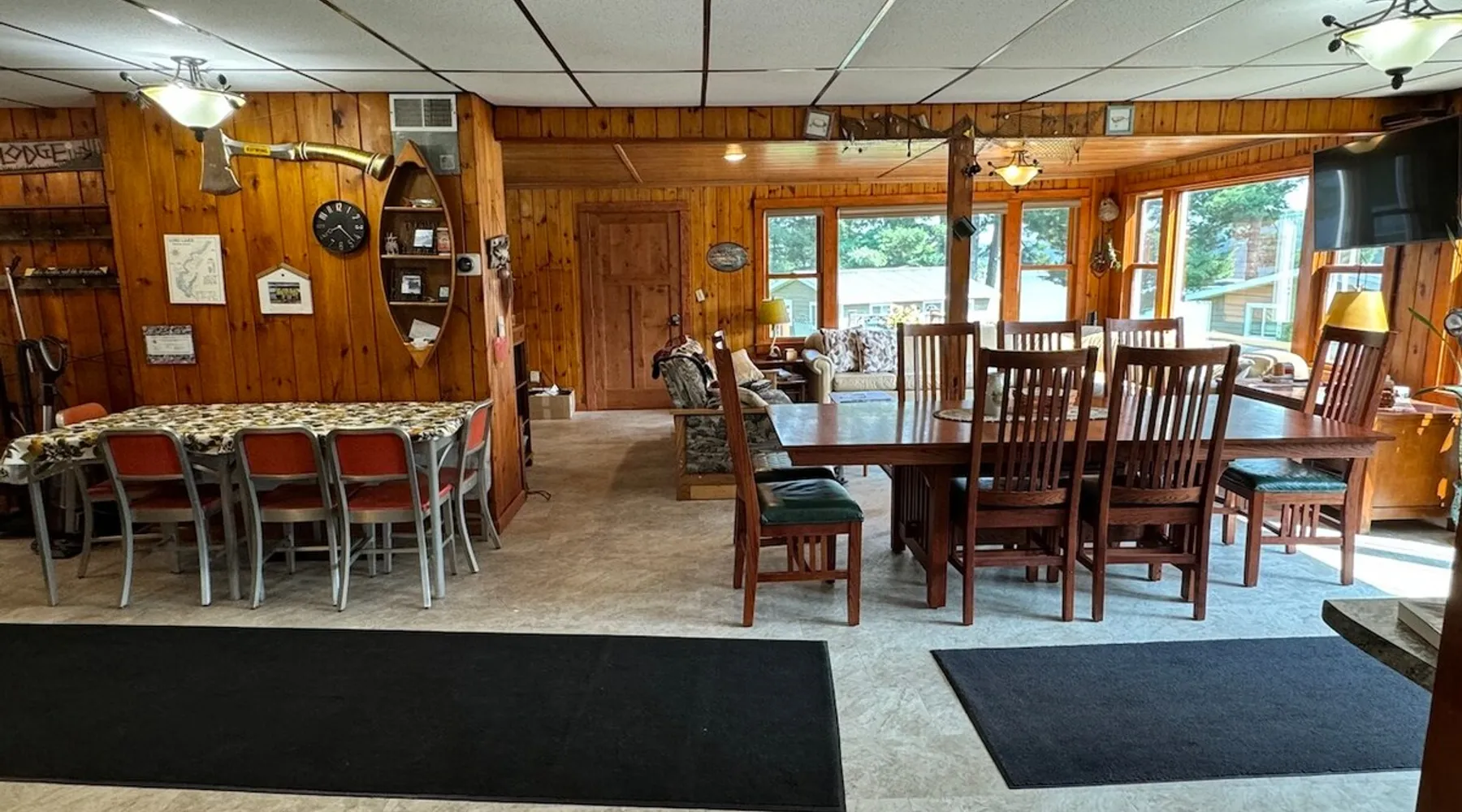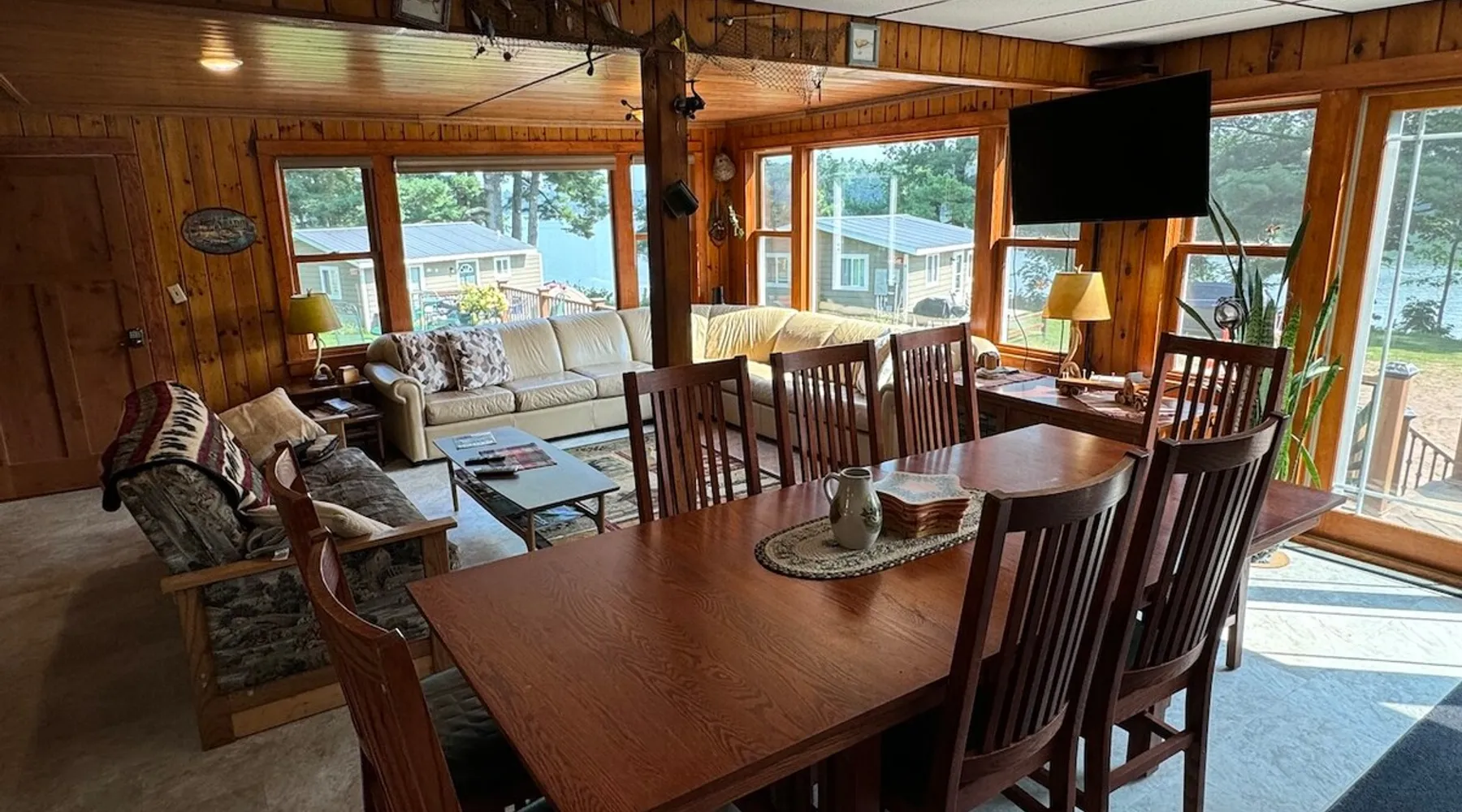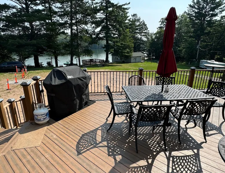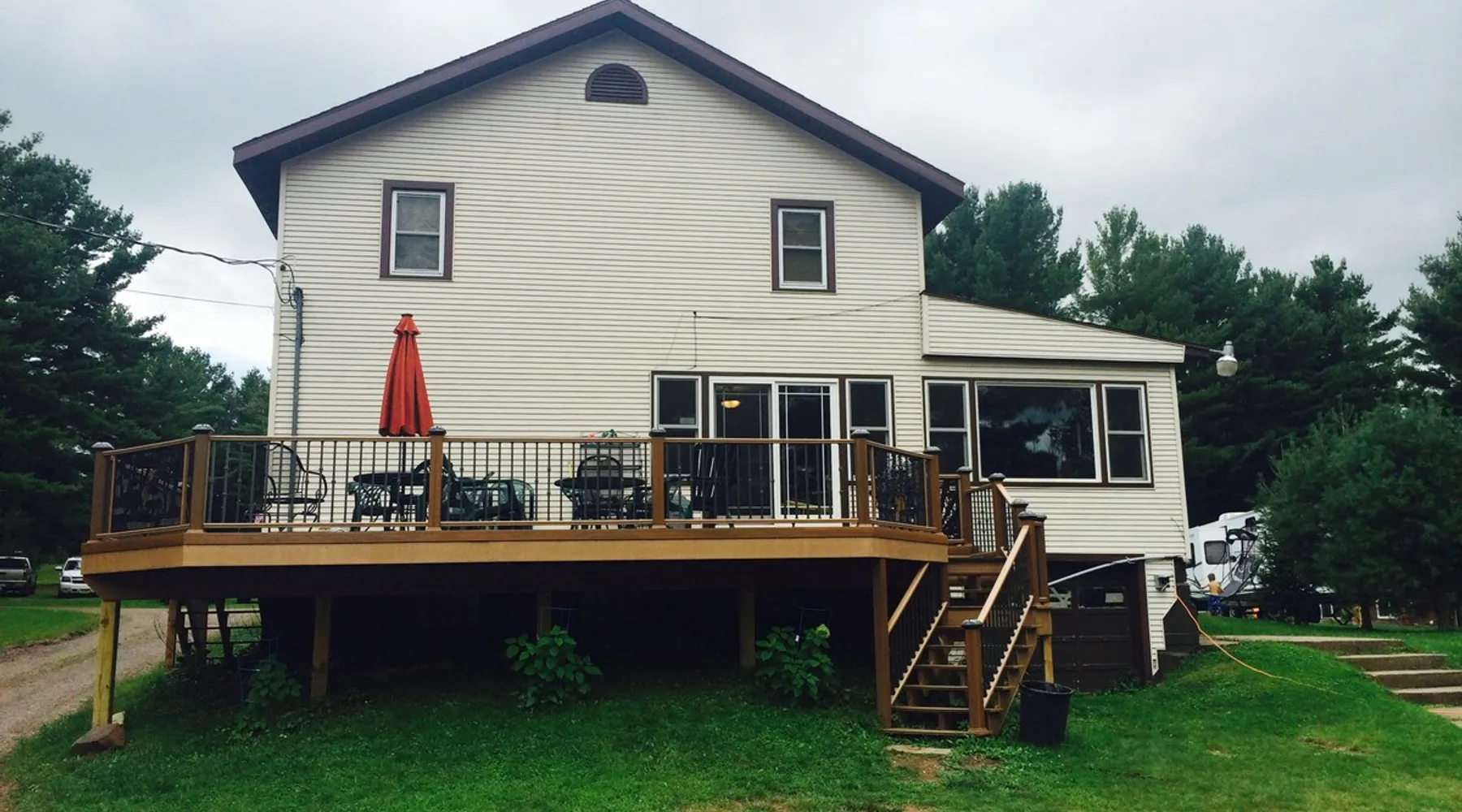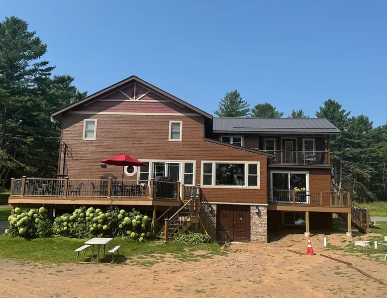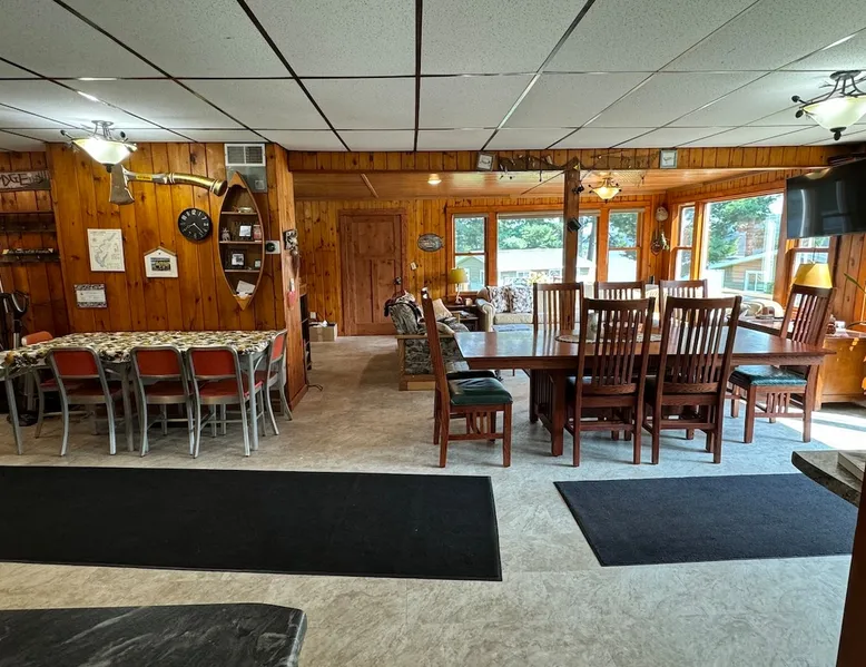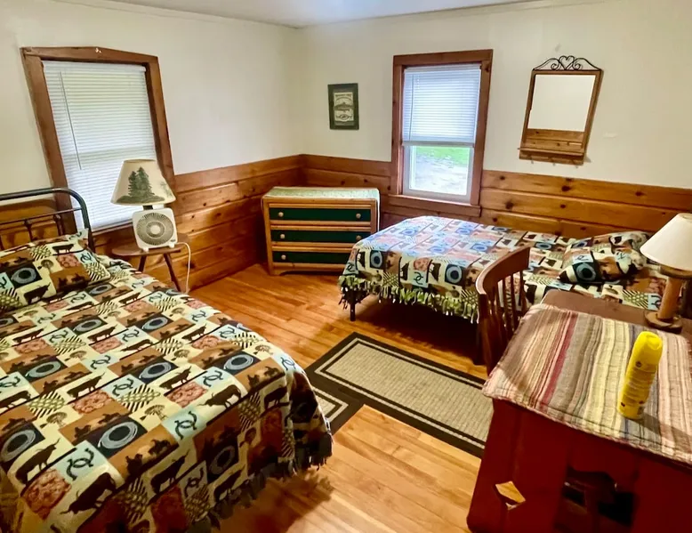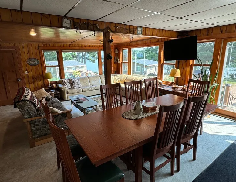Open 4 seasons : Lemenslodge: 4 bedroom(2.0 bath) fully equipped house(kitchen, large dining&living, 3 decks) on sand bottom lake. Great water activities summer & ice/snow in winter. Great fishing, water skiing, ATV, near by golf, Snowmobiling, Boat dock. Bring your own personal flotation, towels & food&drinks New large lake side deck in 2013. Remodel in 2023&2024 The space A wide open layout on first floor, with large windows to view the great outdoors. Bring your group and share the experience. 4 bedrooms upstairs for some privacy. Huge fully equipped kitchen. Grass lawn & parking area to meet your needs. The east side slowly slope s down to "ice house" deck, and campfire ring over looking the lake. Bring your own Towels, food, drink, personal floatation devices. Neighboring cabins at Sam's Place share fish cleaning house and lake front. Guest access You will have access to the entire house. Please take care of it all. Please do not enter shed. You may use Large dock & raft & fish cleaning house with Sam's Place guests. Other things to note We are state inspected and maintain our annual tourist license which includes well water testing.