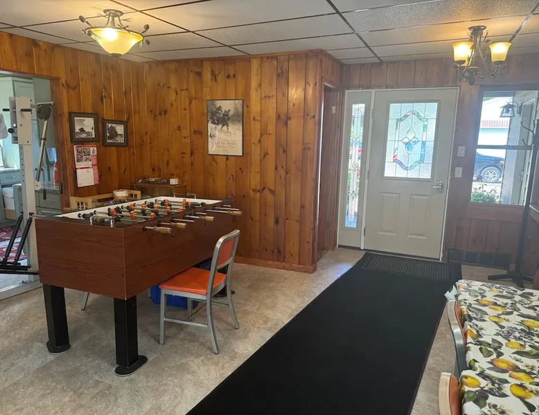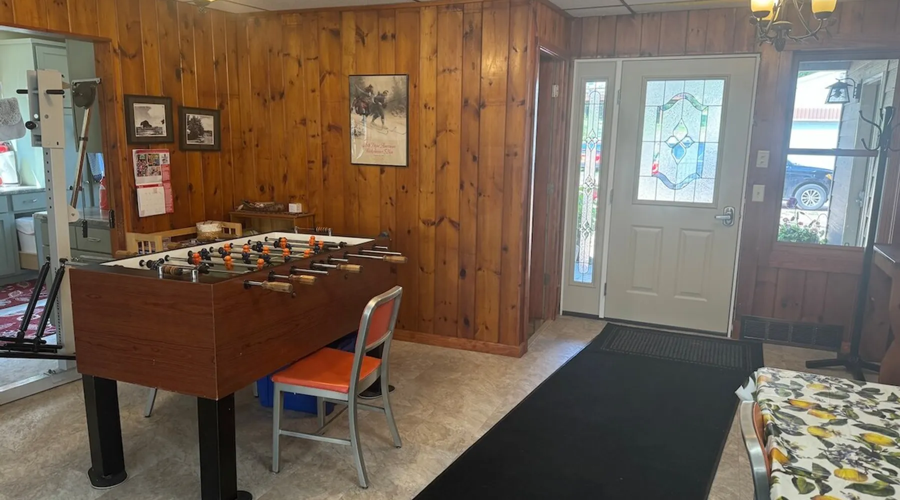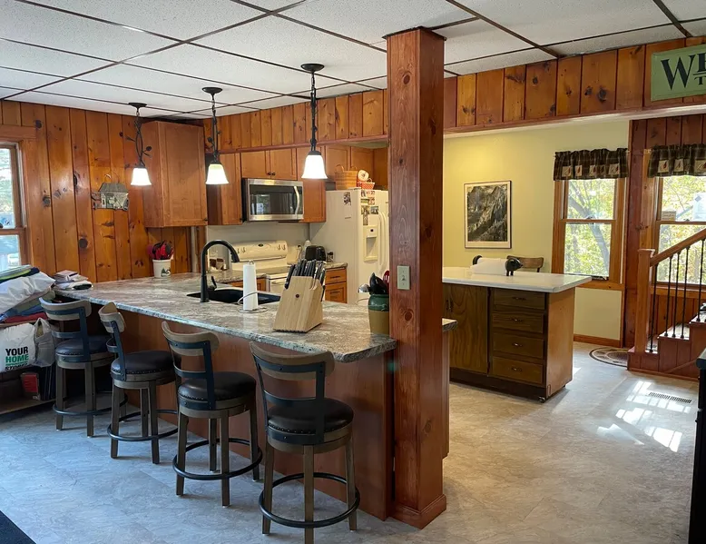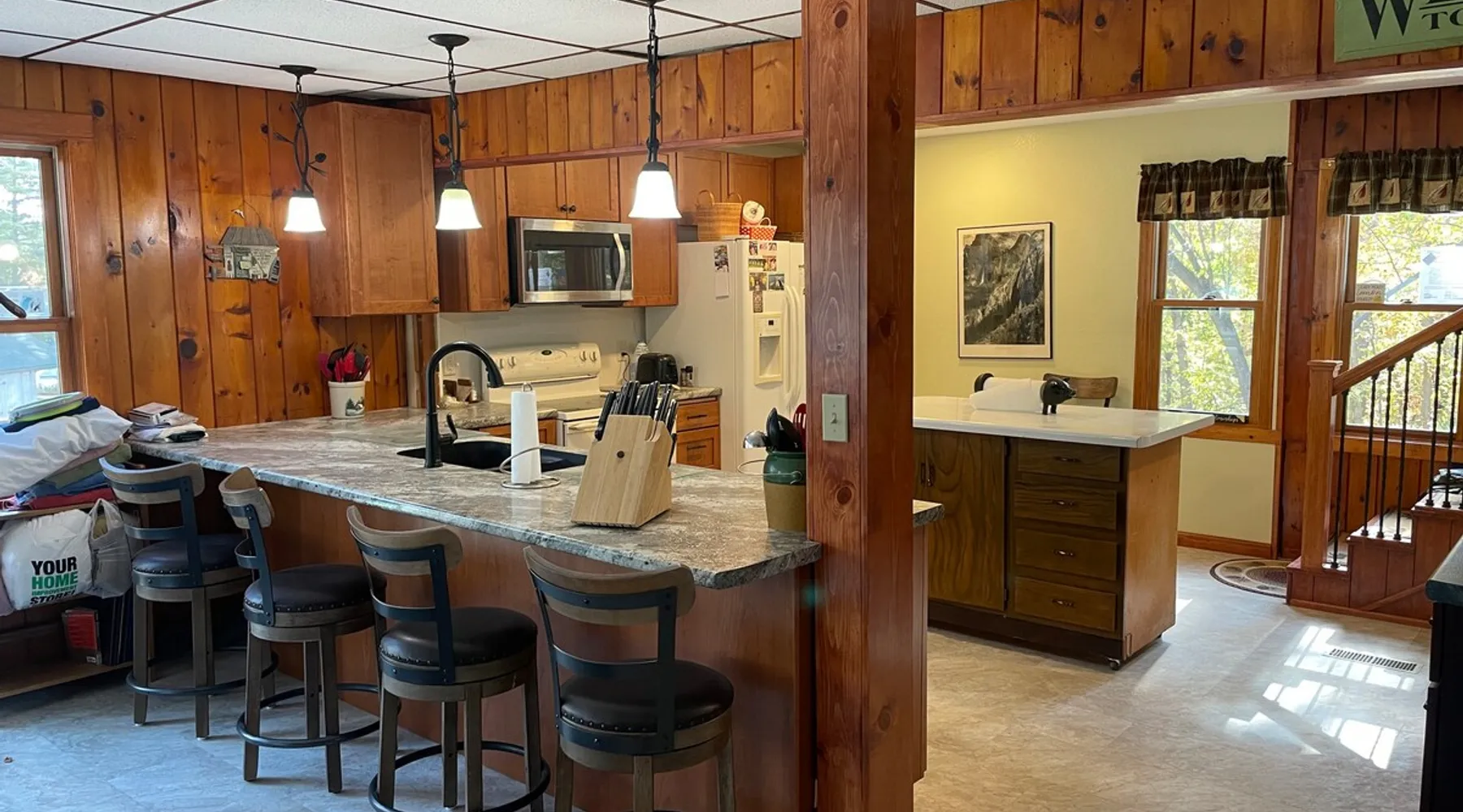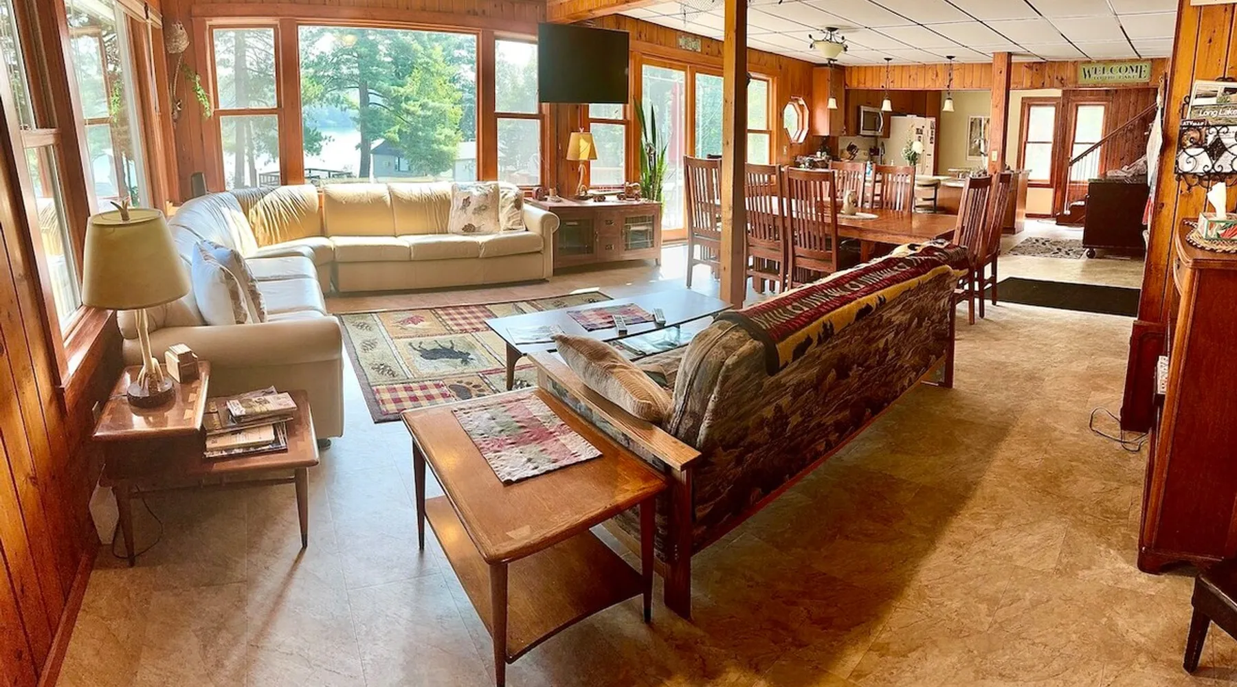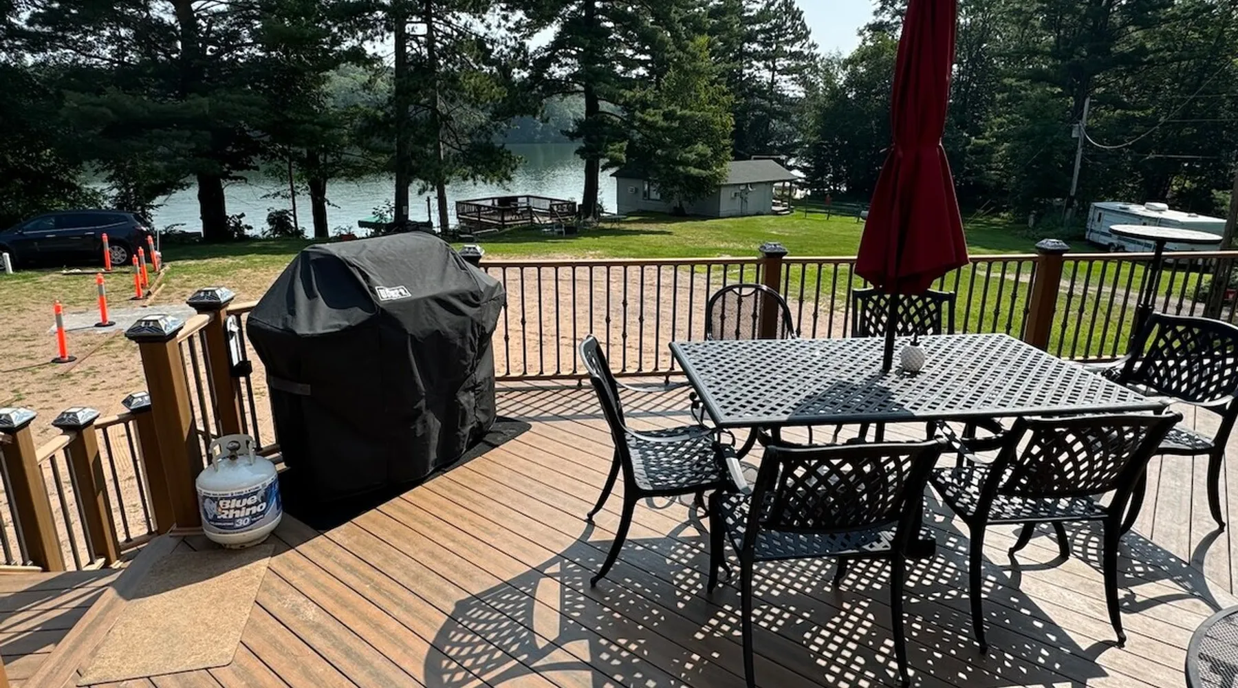 Open 4 seasons : Lemenslodge: 4 bedroom(2.0 bath) fully equipped house(kitchen, large dining&living, 3 decks) on sand bottom lake. Great water activities summer & ice/snow in winter. Great fishing, water skiing, ATV, near by golf, Snowmobiling, Boat dock. Bring your own personal flotation, towels & food&drinks New large lake side deck in 2013. Remodel in 2023&2024 The space A wide open layout on first floor, with large windows to view the great outdoors. Bring your group and share the experience. 4 bedrooms upstairs for some privacy. Huge fully equipped kitchen. Grass lawn & parking area to meet your needs. The east side slowly slope s down to "ice house" deck, and campfire ring over looking the lake. Bring your own Towels, food, drink, personal floatation devices. Neighboring cabins at Sam's Place share fish cleaning house and lake front. Guest access You will have access to the entire house. Please take care of it all. Please do not enter shed. You may use Large dock & raft & fish cleaning house with Sam's Place guests. Other things to note We are state inspected and maintain our annual tourist license which includes well water testing.