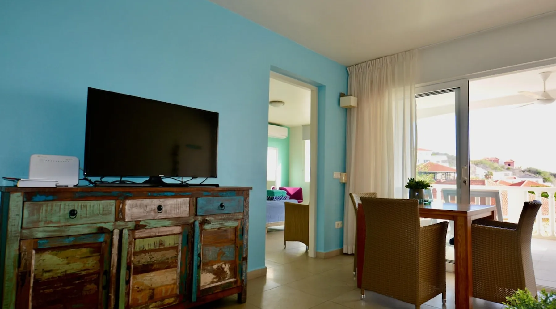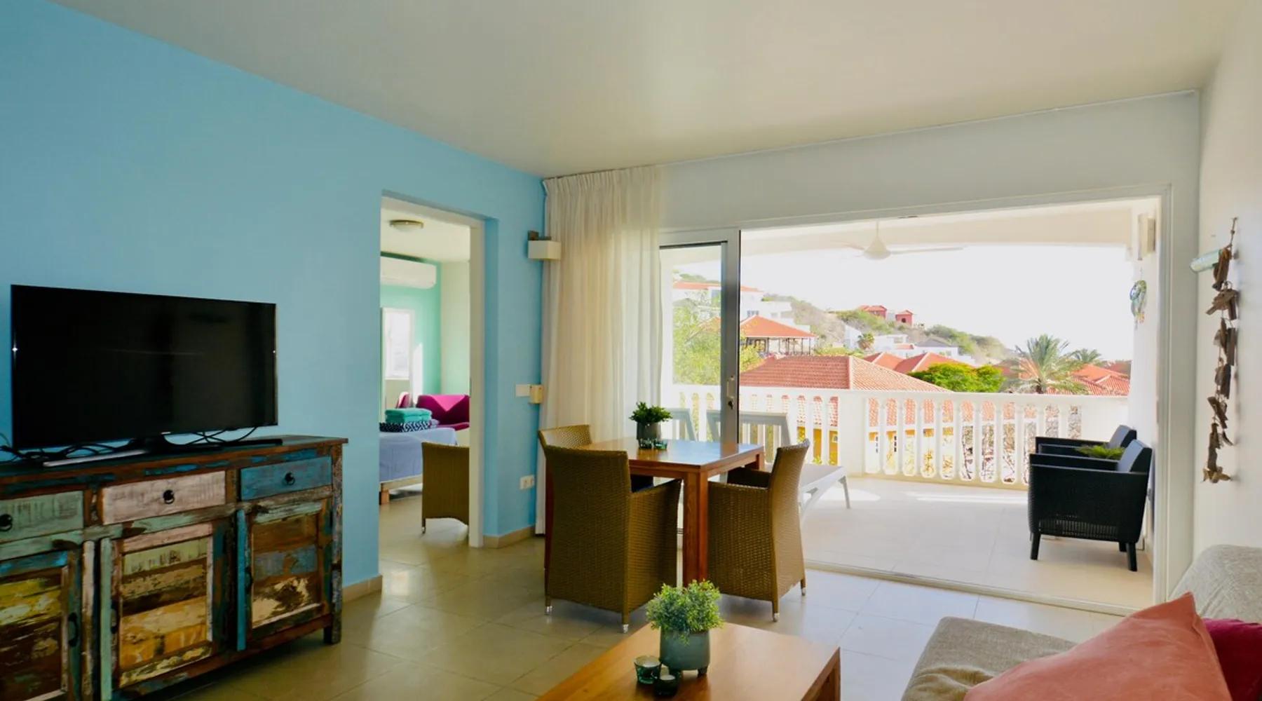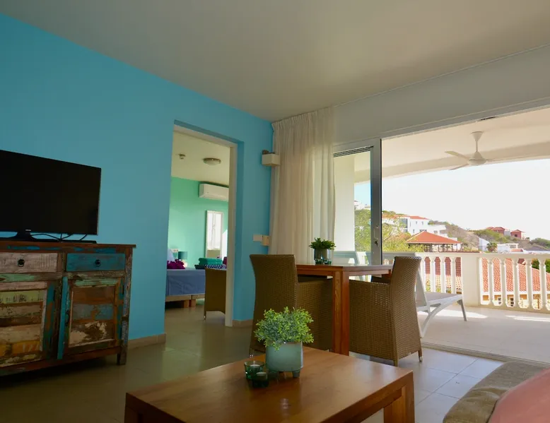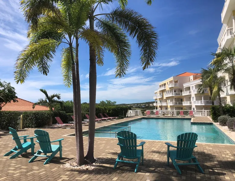 Our V.I.P. BLUE BAY BEACH APARTMENT #38 is close to the beach and the pool. From the terrace you overlook the tropical garden. The apartment has ocean view! The space ✔ Free access to the beach, including sun loungers and gazebos ✔ Electricity and water included in the nightly rate Blue Bay is a fully gated Golf and Beach Resort with 24h security. Our guests will have full access to all Blue Bay facilities including the beach with sun beds and gazebos, pool, restaurants, bars, dive center, golf, tennis and gym. Exclusive Perks – Only for Our Guests - Unlike other villas in Blue Bay, we offer a collection of premium extras at no additional cost, ensuring a truly exceptional stay: V.I.P. services: * Early check-in, if possible * Late check-out, if possible * Please note that storage of suitcases is always possible as well as late return of beach passes and beach towels In our V.I.P. Apartments we provide: * Fast internet (WiFi) through a fiber optic cable * Netflix, fire tv stick * Silent inverter airconditioner * Cooling fan and atmospheric lighting at the veranda * European 220V outlets and various adapters * Curaçao travel and dive guides and activities flyers * Our personal list of favorite beaches, beach clubs, restaurants etc. * Several board games, playing cards and a small library * Pack and play and high chair In our fully equipped kitchens we provide: * Ice cold beers and non-alcoholic refreshment upon arrival * Full set of olive oil, balsamico, sugar, spices etc. for your cooking use * Detergents, foils, ziplocs and trash bags * Nespresso and American coffee machine plus coffee for the first few days * Refrigerator with freezer, electrical stove, microwave, oven, cooker, blender, toaster In our bathrooms we also provide: * Beach towels * Bath towels and bath mat * Hair dryer * Shampoo, conditioner, shower gel and handsoap In our storage rooms we also provide: * Washing machine plus dry rack * Cool box to take to the beaches We also offer sports gear for our villas to share: * Golf sets and balls, free of charge upon availability * Tennis rackets and balls, free of charge upon availability Guest access To get around on the Island renting a car is the way to go! We can assist you in getting the right car for you. We have a selection of long-range electric rental cars available exclusively for our guests: Brand new cars; automatic; 5-doors Free charging at our private charging station next to your Beach Villa Please contact us for information! Other things to note Because natural resources are limited on the island, the responsible use of water and electricity is very important on Curaçao. Electricity and water included in the nightly rate. Thank you for using these valuable resources thoughtfully during your stay.