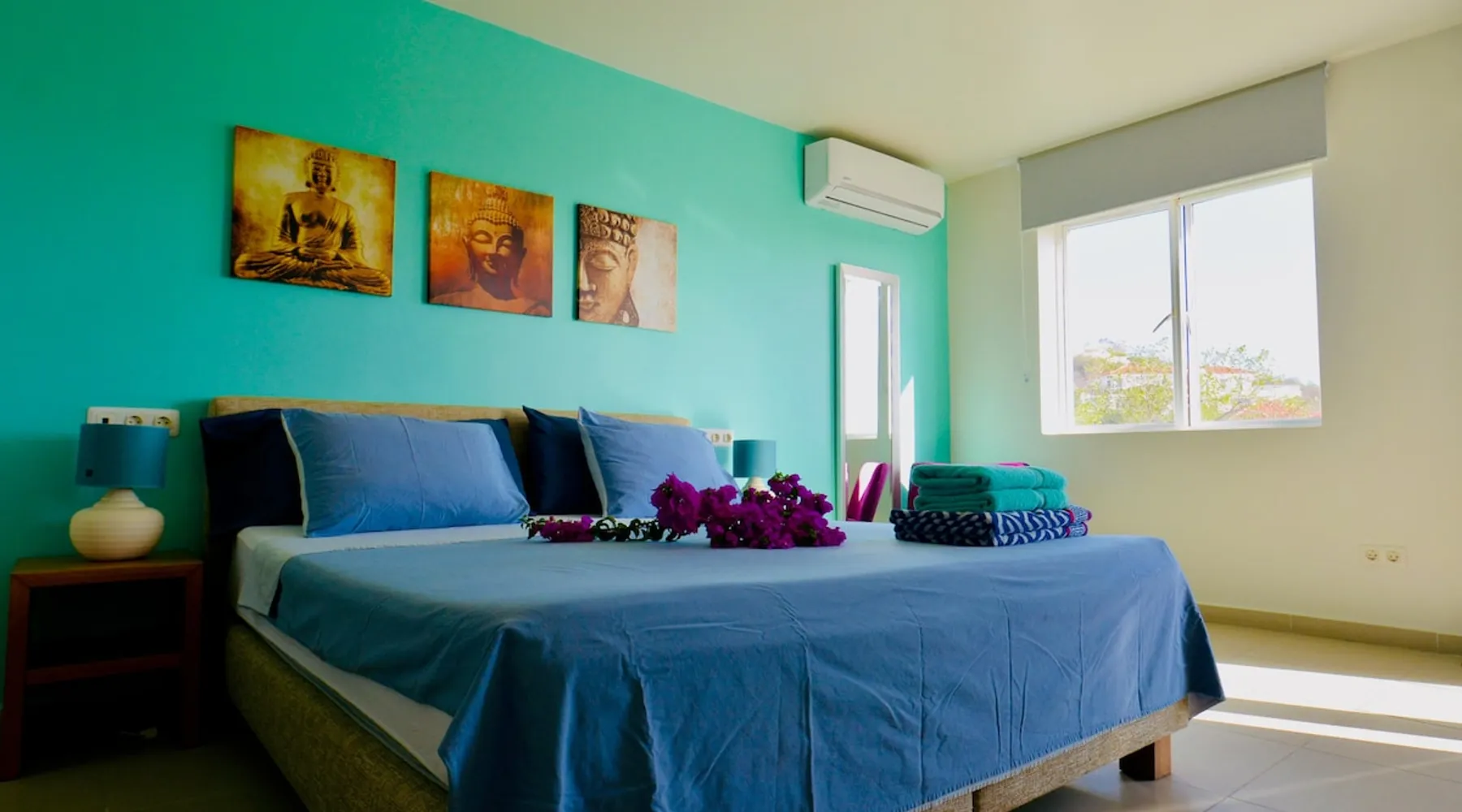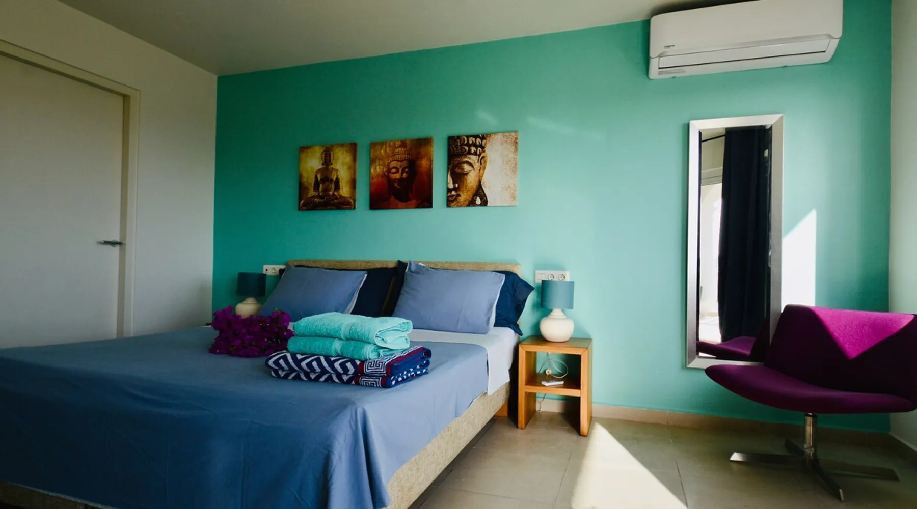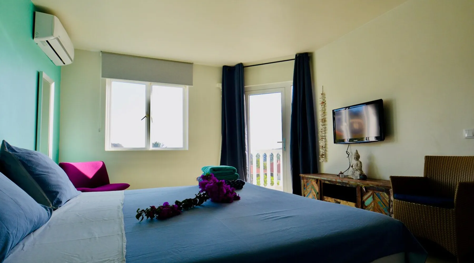 Our V.I.P. BLUE BAY BEACH APARTMENT #38 is close to the beach and the pool. From the terrace you overlook the tropical garden. The apartment has ocean view! The space ✔ Free access to the beach, including sun loungers and gazebos ✔ Electricity and water included in the nightly rate Blue Bay is a fully gated Golf and Beach Resort with 24h security. Our guests will have full access to all Blue Bay facilities including the beach with sun beds and gazebos, pool, restaurants, bars, dive center, golf, tennis and gym. Exclusive Perks – Only for Our Guests - Unlike other villas in Blue Bay, we offer a collection of premium extras at no additional cost, ensuring a truly exceptional stay: V.I.P. services: * Early check-in, if possible * Late check-out, if possible * Please note that storage of suitcases is always possible as well as late return of beach passes and beach towels In our V.I.P. Apartments we provide: * Fast internet (WiFi) through a fiber optic cable * Netflix, fire tv stick * Silent inverter airconditioner * Cooling fan and atmospheric lighting at the veranda * European 220V outlets and various adapters * Curaçao travel and dive guides and activities flyers * Our personal list of favorite beaches, beach clubs, restaurants etc. * Several board games, playing cards and a small library * Pack and play and high chair In our fully equipped kitchens we provide: * Ice cold beers and non-alcoholic refreshment upon arrival * Full set of olive oil, balsamico, sugar, spices etc. for your cooking use * Detergents, foils, ziplocs and trash bags * Nespresso and American coffee machine plus coffee for the first few days * Refrigerator with freezer, electrical stove, microwave, oven, cooker, blender, toaster In our bathrooms we also provide: * Beach towels * Bath towels and bath mat * Hair dryer * Shampoo, conditioner, shower gel and handsoap In our storage rooms we also provide: * Washing machine plus dry rack * Cool box to take to the beaches We also offer sports gear for our villas to share: * Golf sets and balls, free of charge upon availability * Tennis rackets and balls, free of charge upon availability Guest access To get around on the Island renting a car is the way to go! We can assist you in getting the right car for you. We have a selection of long-range electric rental cars available exclusively for our guests: Brand new cars; automatic; 5-doors Free charging at our private charging station next to your Beach Villa Please contact us for information! Other things to note Because natural resources are limited on the island, the responsible use of water and electricity is very important on Curaçao. Electricity and water included in the nightly rate. Thank you for using these valuable resources thoughtfully during your stay.