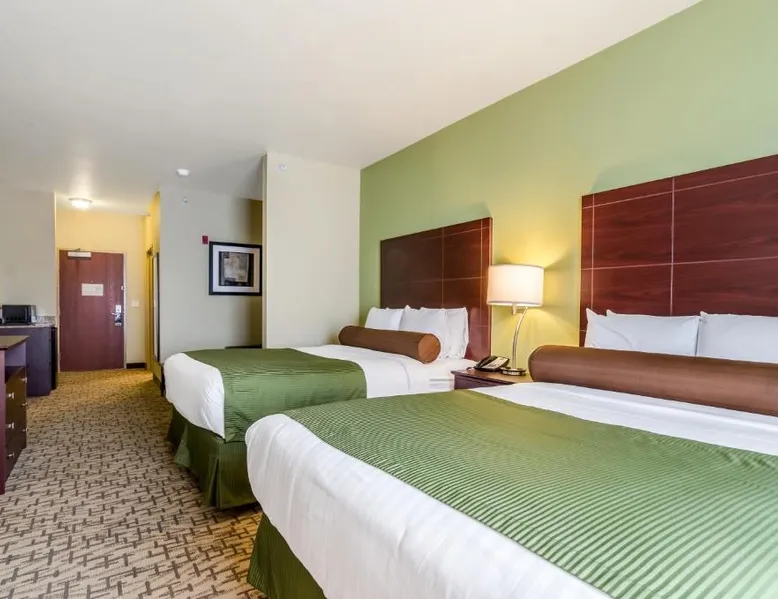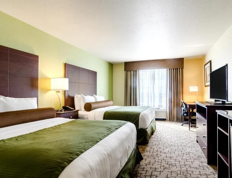 Comfortable Accommodations: Cobblestone Hotel & Suites - McCook in McCook offers clean and comfortable rooms with air-conditioning, private bathrooms, and free WiFi. Guests appreciate the room cleanliness and comfort. Exceptional Facilities: The hotel features a fitness center, indoor swimming pool, and a bar. Additional amenities include a lounge, 24-hour front desk, minimarket, and free on-site private parking. Delicious Breakfast: A complimentary American buffet breakfast is served daily, providing a great start to the day. Convenient Location: Located 3.7 mi from McCook Ben Nelson Regional Airport, the hotel offers easy access to local attractions. The quadruple room offers air conditioning and a tea and coffee maker. The unit offers 2 beds.