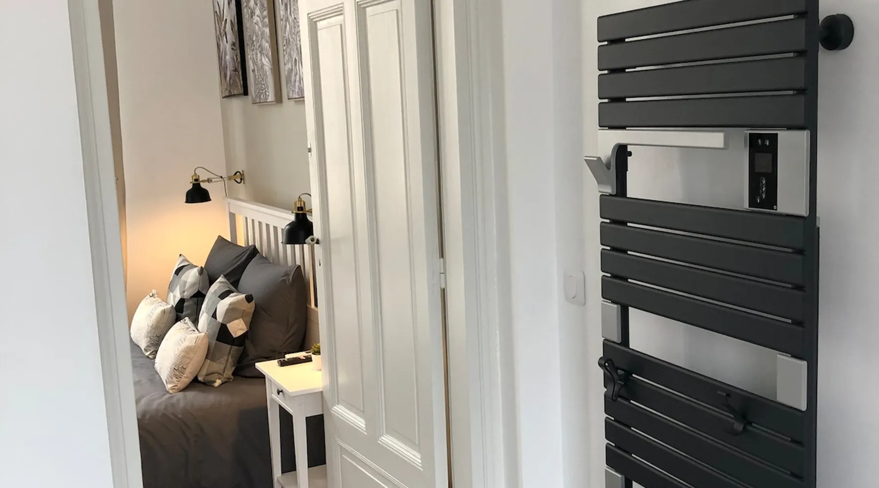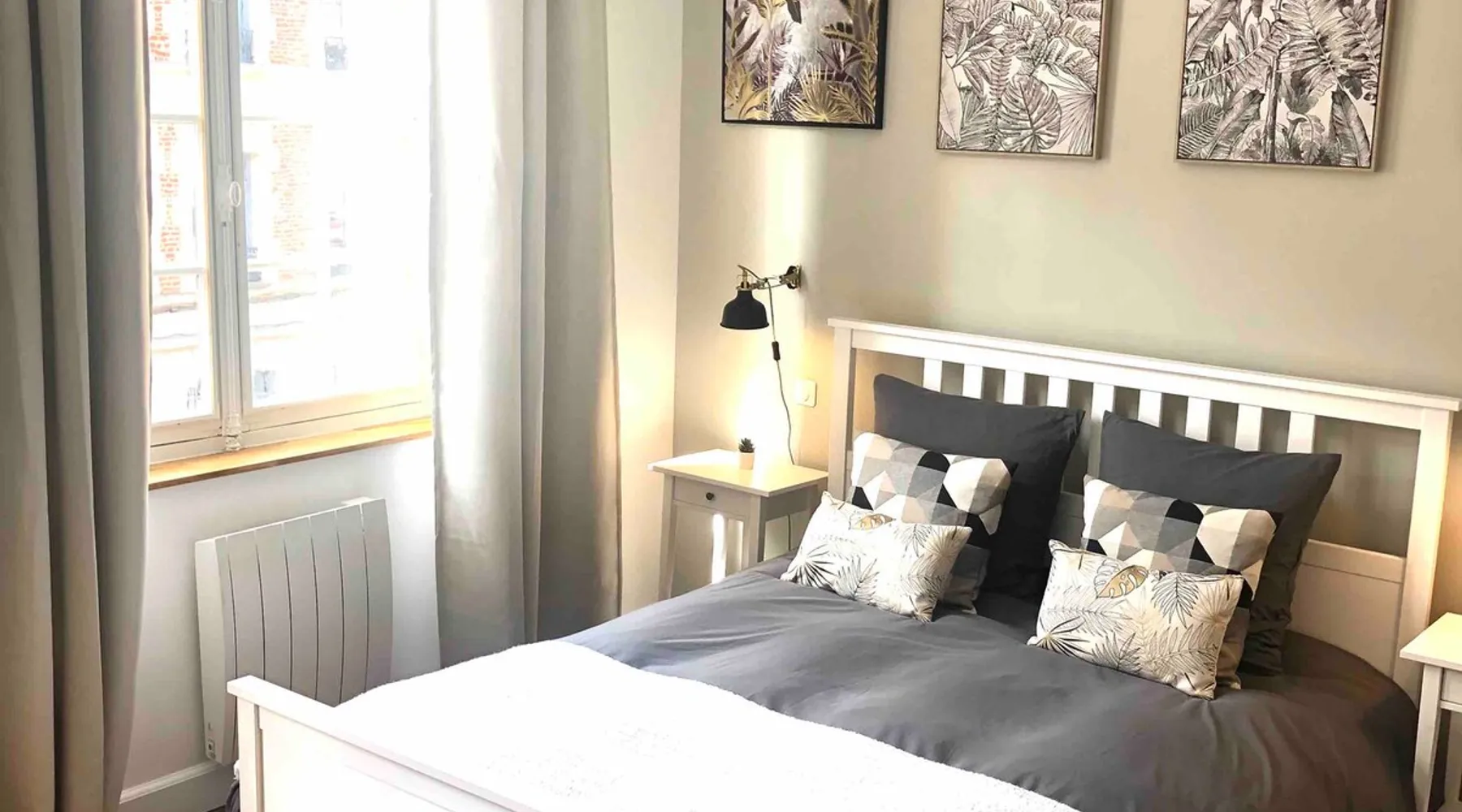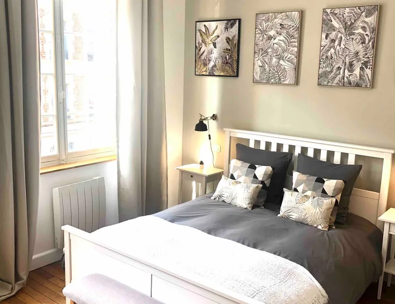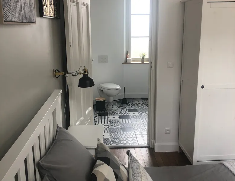 Discover our charming 25 m² apartment, ideally located in the heart of Arras. This bright and refined accommodation is perfect for a relaxing stay, whether for a romantic weekend or a business trip. Although there is no kitchen, you can enjoy the many cafes and restaurants nearby to discover the local gastronomy. A few steps from the main attractions, this apartment is a perfect base for exploring the city and its riches. The space Spacious room equipped with a queen size double bed (160 x 200 cm), an armchair, a connected TV, a desk and a large storage closet. Private attached bathroom equipped with large shower, hair dryer, washing machine, heated towel rail and toilet. The entire accommodation has been completely renovated in the cocooning spirit while seeking to keep the authenticity of this beautiful Arras house. Guest access Access to our accommodation is very easy! Located just an 8-minute walk from the train station, you can get there with ease. For those who prefer to arrive by car, you can stop directly in front of the house to unload your belongings comfortably. Once your luggage is dropped off, you can park your vehicle nearby. For your visits, consider parking for free at Place Victor Hugo, just a 10-minute walk to the center. Alternatively, green areas offer low-cost parking. Remember, parking is free in the city center on Sundays, public holidays, and weekdays from 6pm to 9am. This could be a cost-effective option if you plan to explore at those times. Please let me know if you need any further advice or information. We can’t wait to see you! Other things to note We would like to inform you that there are security cameras located in the common areas of our property. These cameras are there to help keep all guests safe and prevent unwanted behavior. Your comfort and safety are our priority.