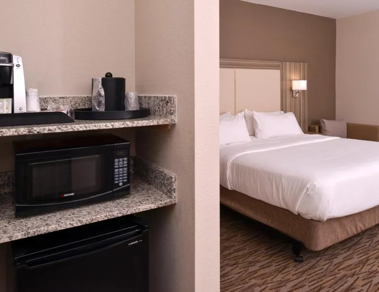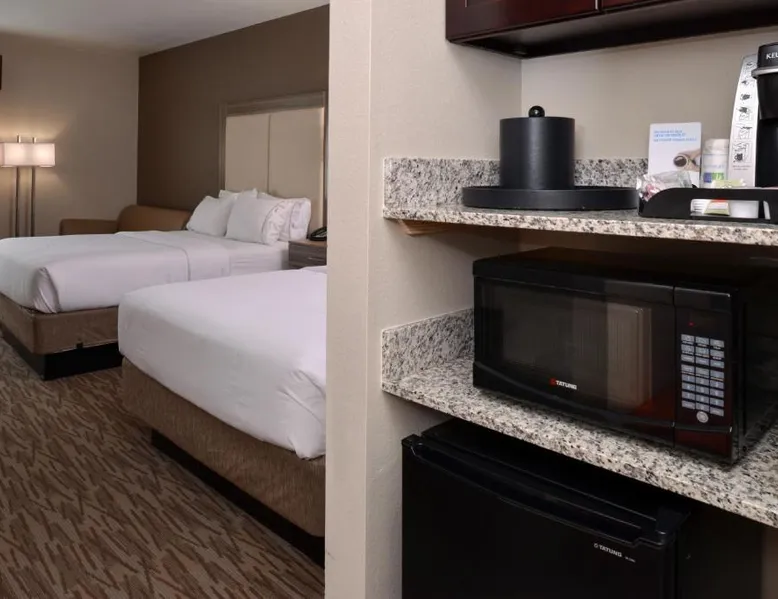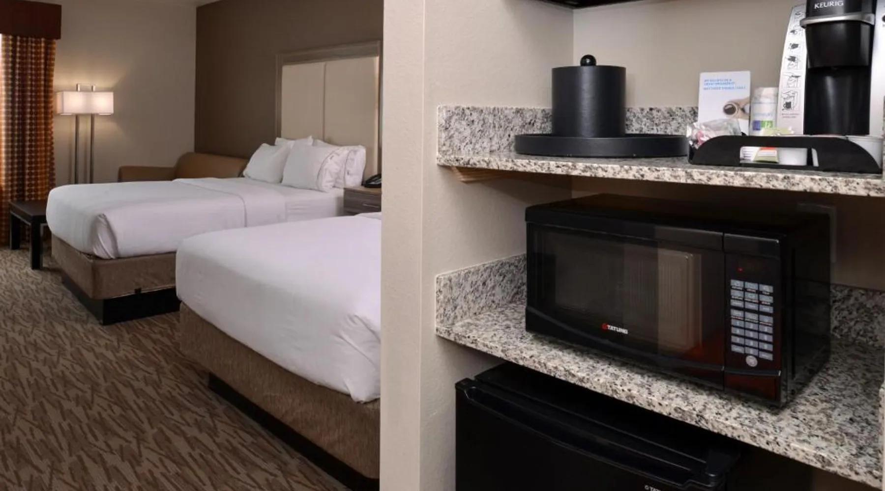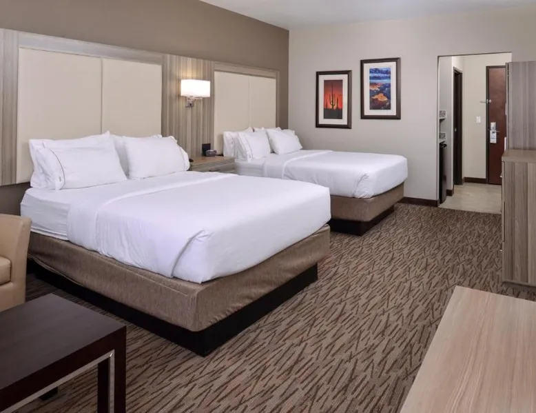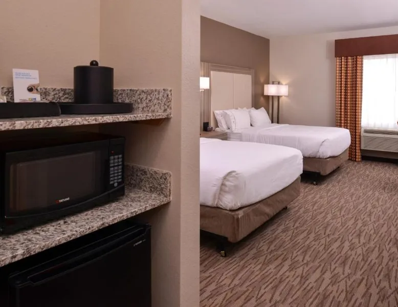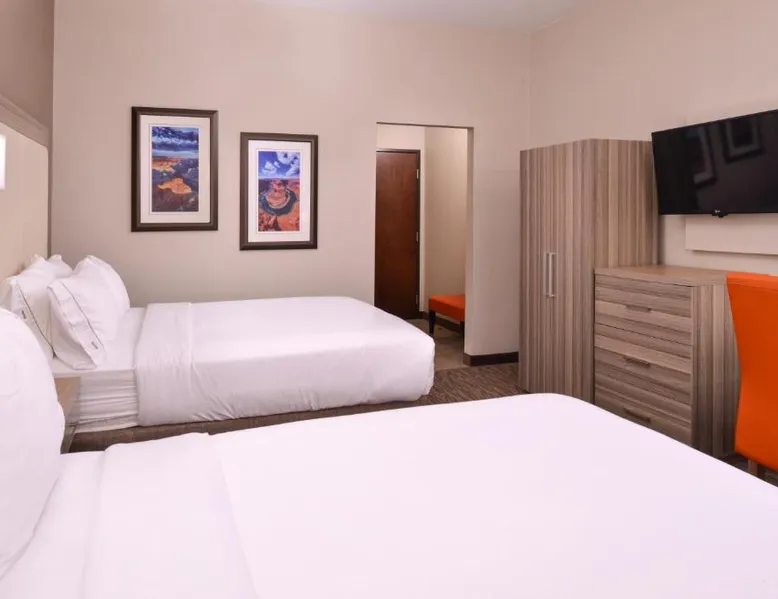 Comfortable Accommodations: Holiday Inn Express & Suites Williams by IHG in Williams offers family rooms with air-conditioning, private bathrooms, and mountain views. Each room includes a tea and coffee maker, refrigerator, and free toiletries. Exceptional Facilities: Guests can enjoy a spa and wellness center, indoor swimming pool with a view, and a fitness center. Free WiFi is available throughout the property, ensuring connectivity. Convenient Location: Located 35 mi from Flagstaff Pulliam Airport, the hotel provides easy access to skiing, hiking, and cycling. Free on-site parking and a 24-hour front desk enhance the stay. Guest Services: The property offers private check-in and check-out, a lounge, and a business area. Additional amenities include a hot tub, child-friendly buffet, and free WiFi. This has a microwave and a refrigerator.