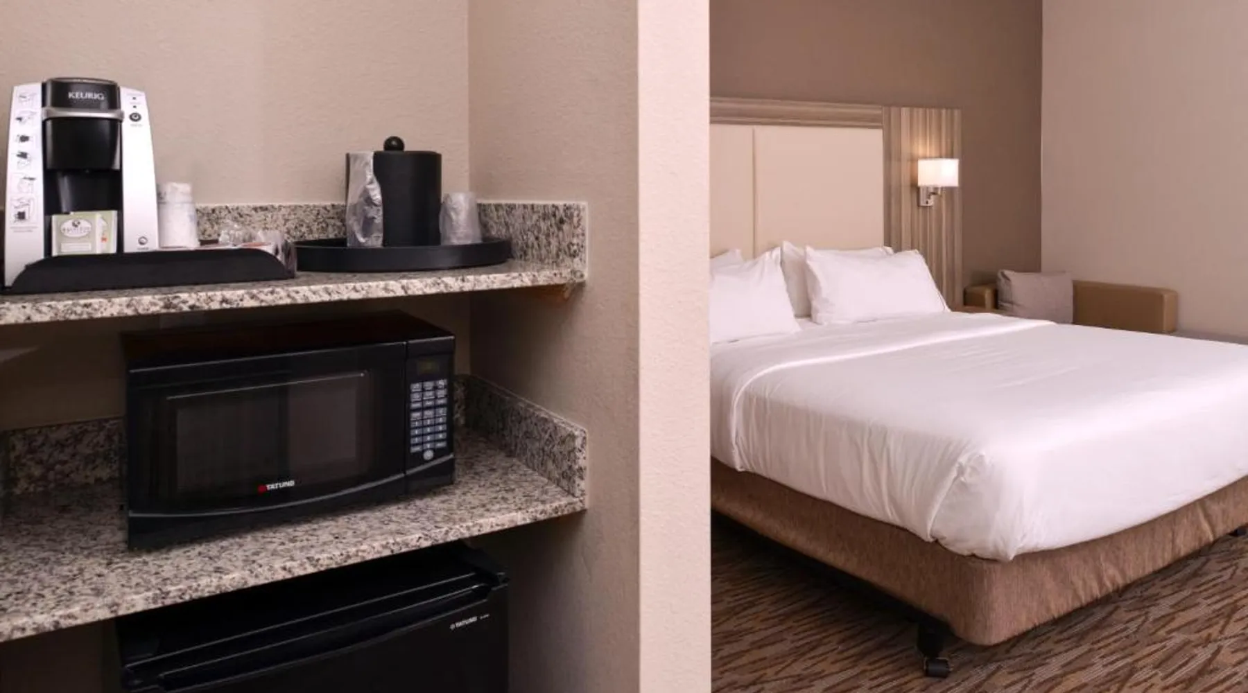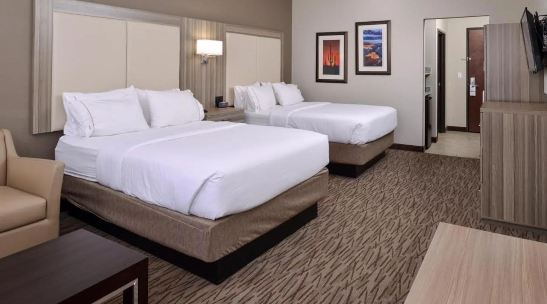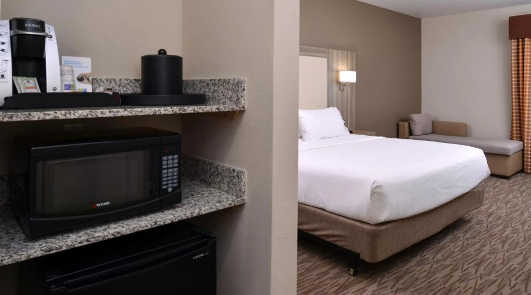 Comfortable Accommodations: Holiday Inn Express & Suites Williams by IHG in Williams offers family rooms with air-conditioning, private bathrooms, and mountain views. Each room includes a tea and coffee maker, refrigerator, and free toiletries. Exceptional Facilities: Guests can enjoy a spa and wellness center, indoor swimming pool with a view, and a fitness center. Free WiFi is available throughout the property, ensuring connectivity. Convenient Location: Located 35 mi from Flagstaff Pulliam Airport, the hotel provides easy access to skiing, hiking, and cycling. Free on-site parking and a 24-hour front desk enhance the stay. Guest Services: The property offers private check-in and check-out, a lounge, and a business area. Additional amenities include a hot tub, child-friendly buffet, and free WiFi. This has a microwave and a refrigerator.