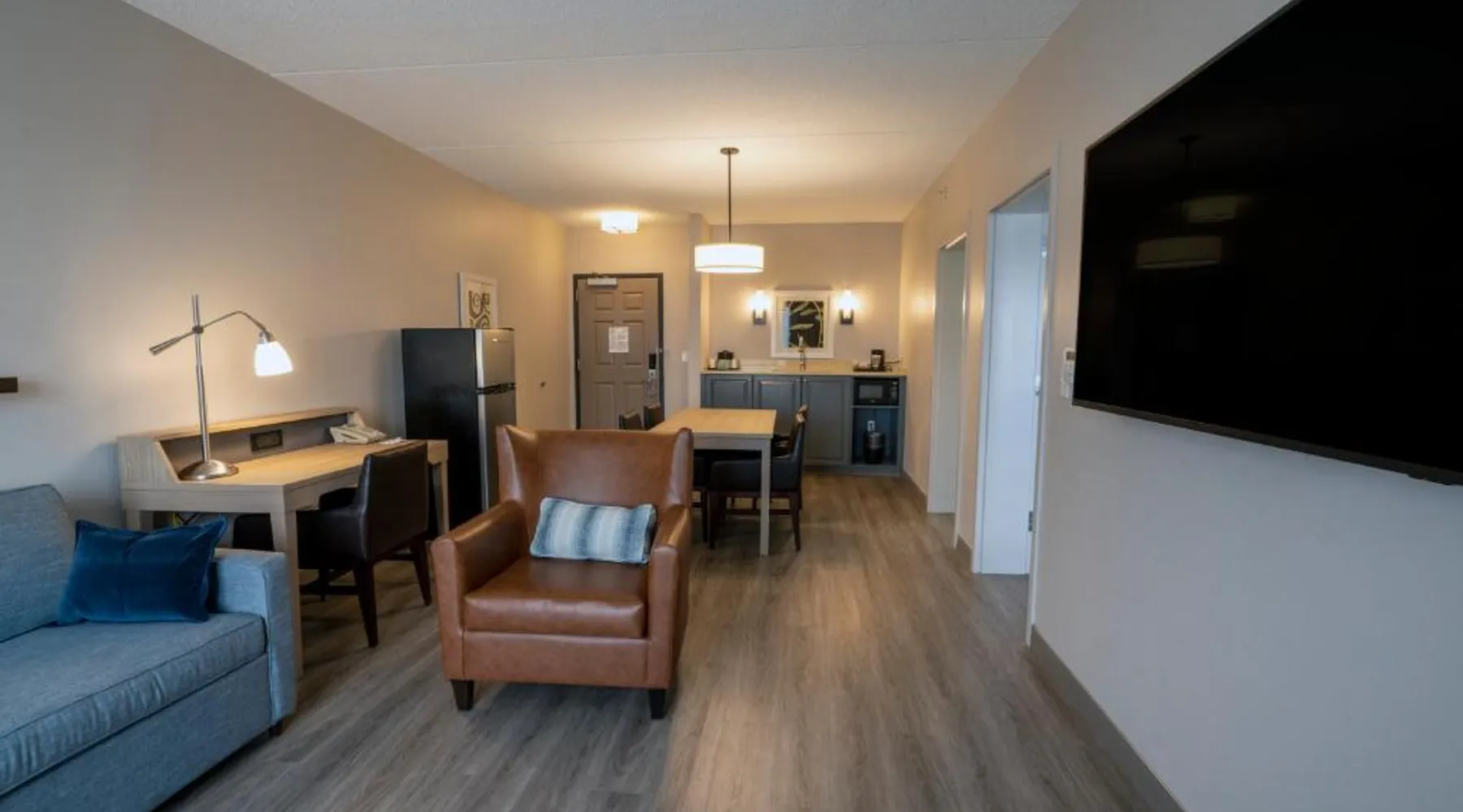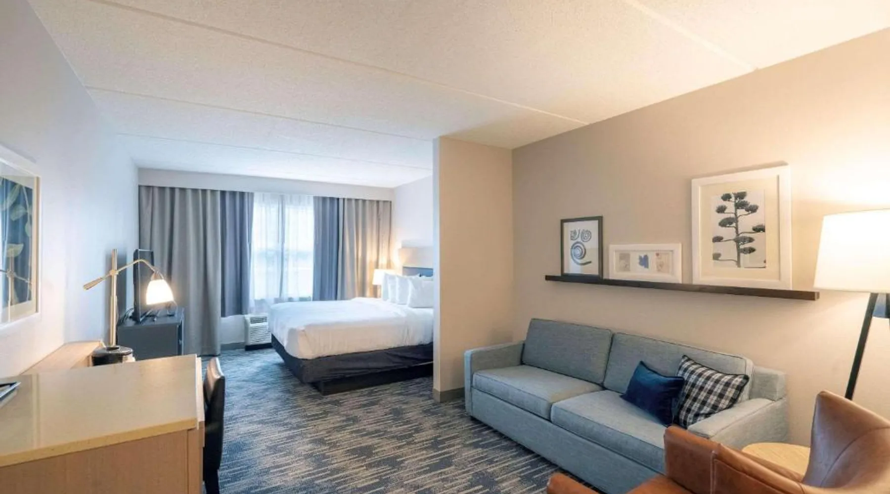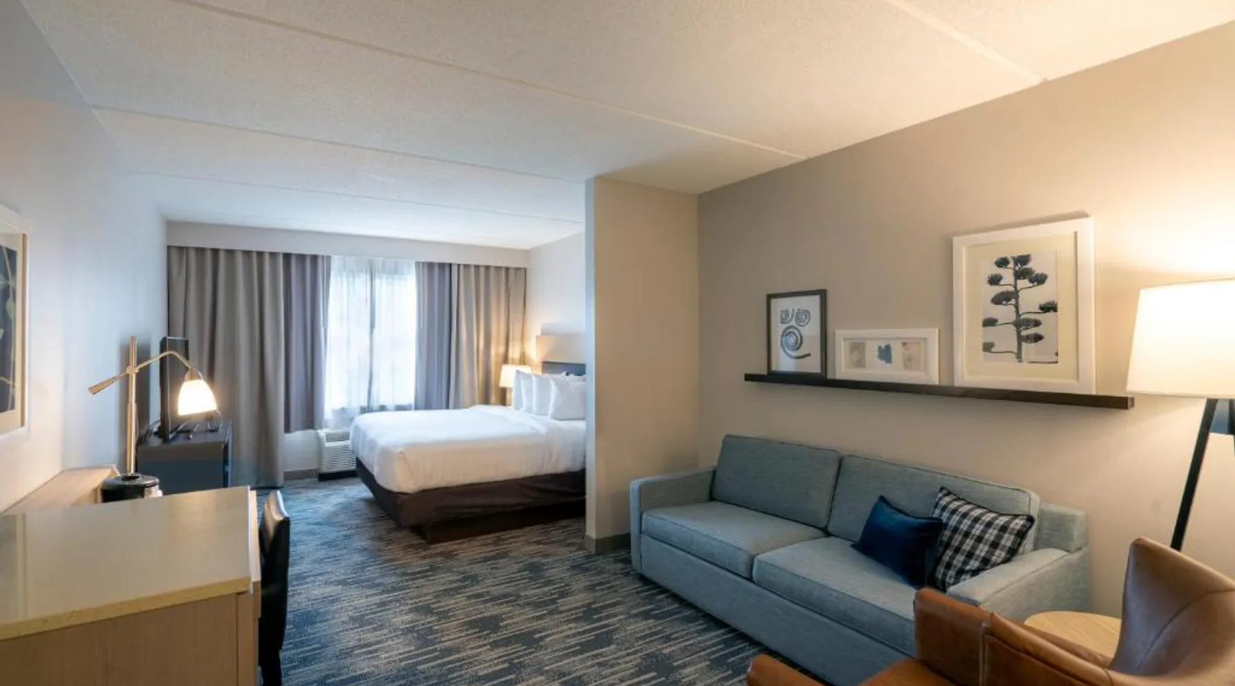 Located in State College, Pennsylvania, this hotel is 5 minutes' drive from Penn State University it has an indoor swimming pool and offers free WiFi access and free shuttle service. Downtown State College is 6 minutes' drive. Guest rooms at Country Inn & Suites State College are equipped with a microwave and a refrigerator. A free hot buffet breakfast is served each morning. Guests at the State College Country Inn & Suites can relax in the hot tub or work out in the fitness center. Fax and photocopying services are available. Beaver Stadium is 2 mi away and Penn State Golf Course is 13 minutes' drive. University Park Airport is 6 mi away. The property features 4 free electric vehicle charging stations, including 2 Tesla and 2 regular stations. This room features a separate living area with a sofa bed and an additional flat-screen cable TV.