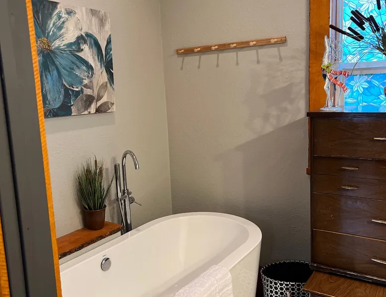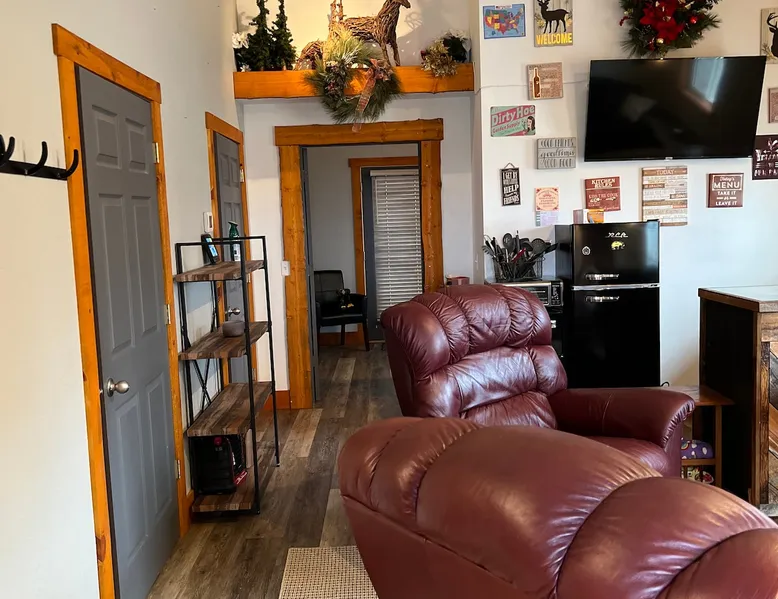 This luxurious cabin features 600 sq space with all you would ever need in the middle of the mountains. The comforts you need are found inside this brand new cabin, including a queen bed in the master bedroom, a queen fold out couch, and spa like bathroom retreat with a freestanding soaker tub and corner shower. The space Those views tho! Diamond In The Ruff Cabin Rental has 360 views and access to mountain ranges all from your door step. Relaxing modern retreat with the feel of the country you’ll never find a place like this! Guest access The entire space is all provided for you! Other things to note Don’t book if you’re A Karen Can’t use a map to realize your driving to the middle of nowhere Feel the need to complain about being in the middle of nowhere Don’t like well water Don’t like normal food aka wisdom is in the middle of nowhere we don’t do non gmo vegan gluten free tofu. Expect burgers fries and AMERICAN food Need public transportation Have the need to complain about literally everything including having to go to the middle of nowhere. I am not your mother. I will not hold your hand and explain such things. And I will be charging extra services charges to those who cannot figure out how to be an adult. Please. Respect my business and town as I do yours or please. Do not book or come to wisdom. It’s not your vibe.