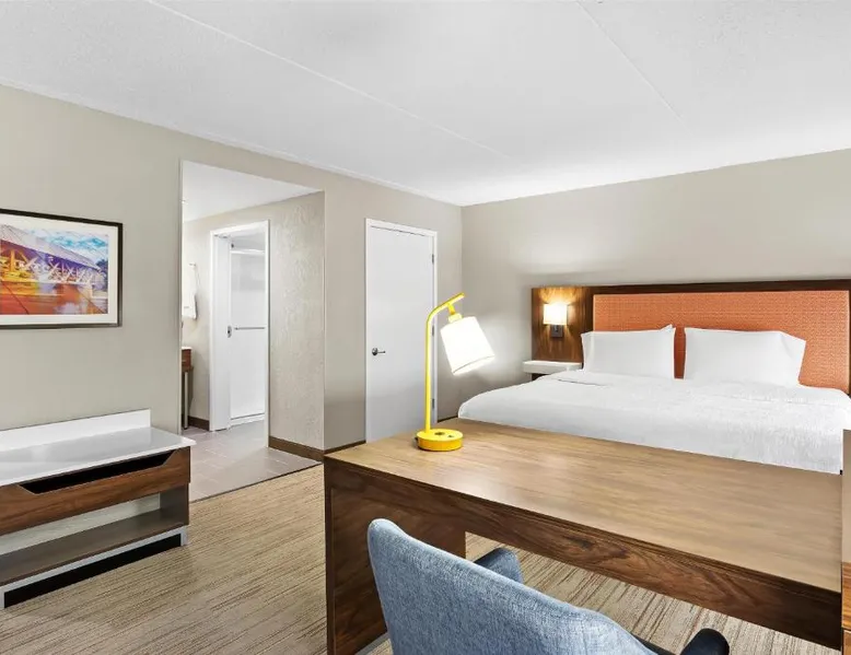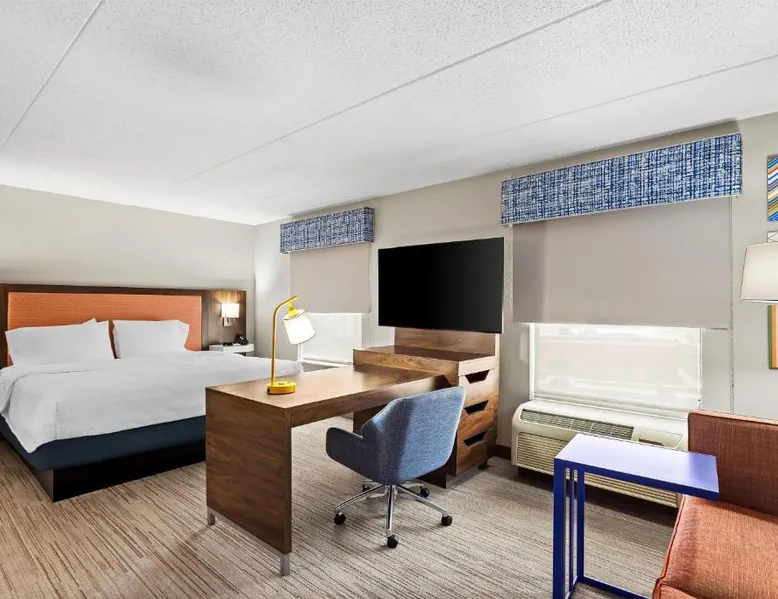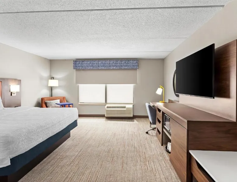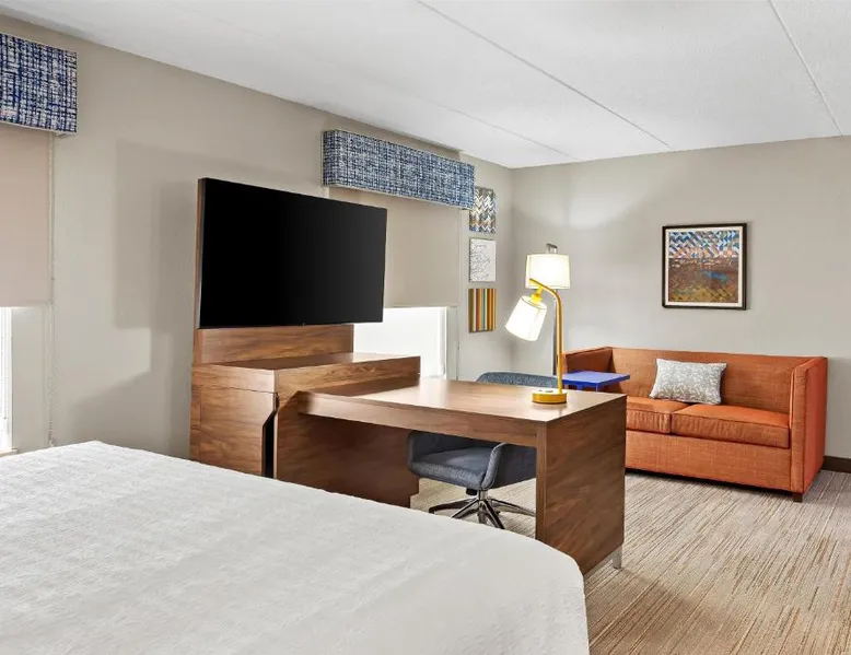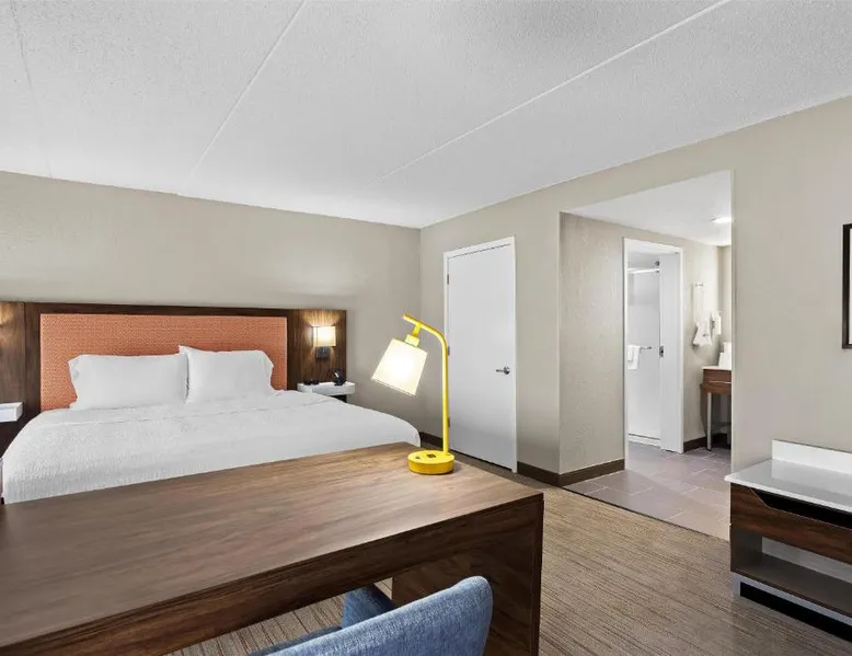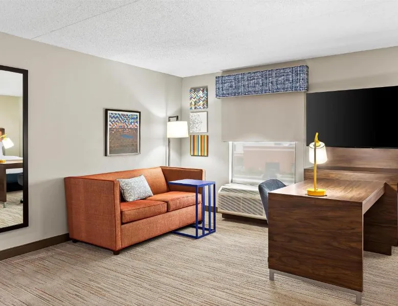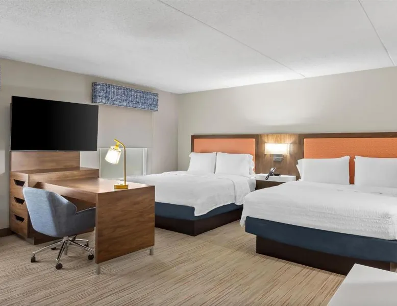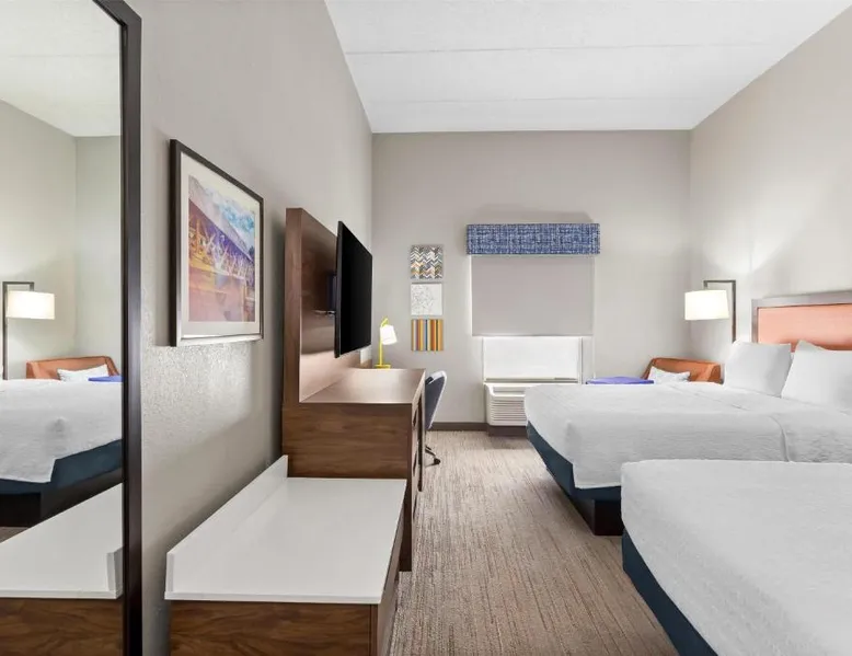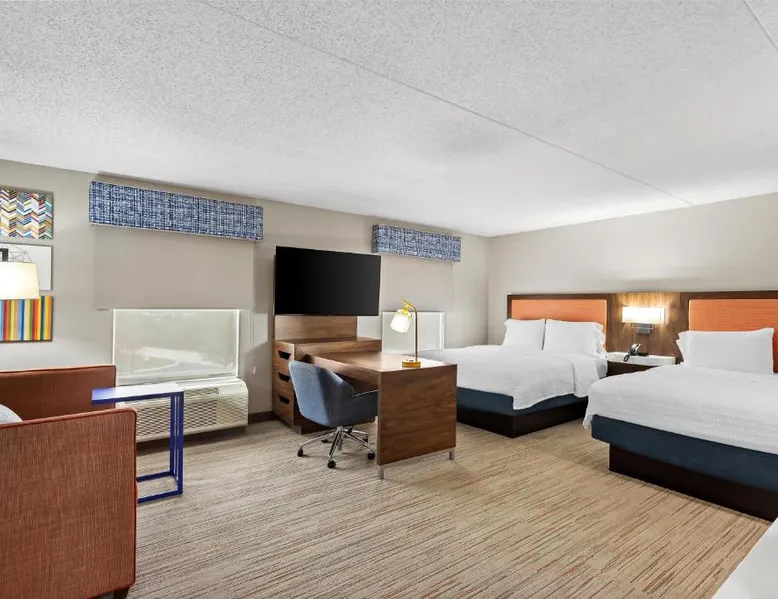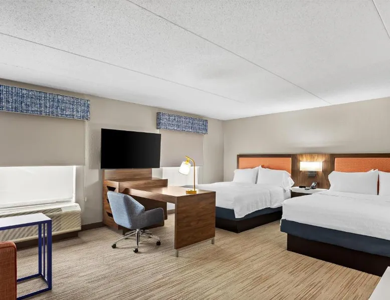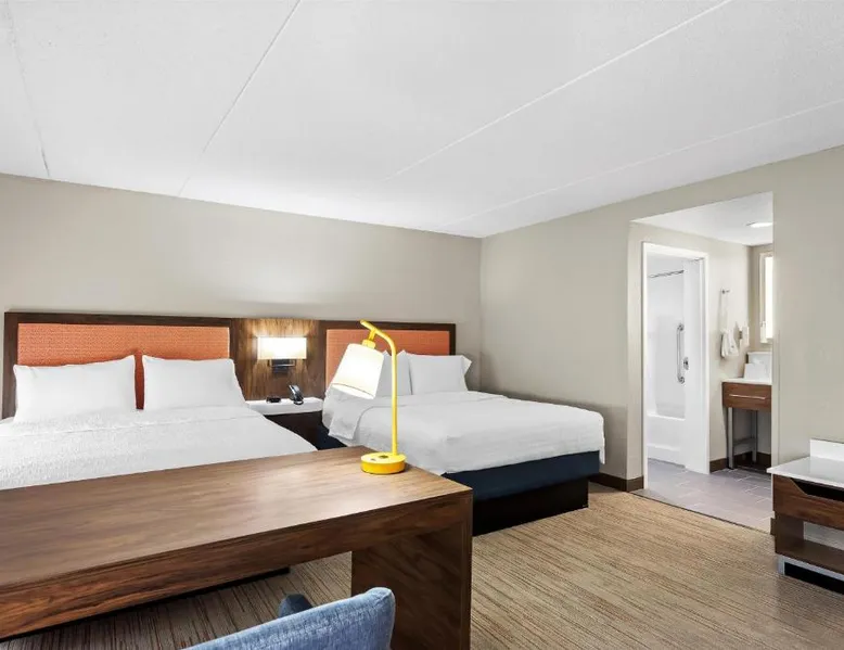 Conveniently located just off Interstate 55, this Bolingbrook, Illinois hotel features a variety of modern amenities and facilities, and is an ideal location for exploring the surrounding areas and attractions. The Hampton Inn and Suites Bolingbrook provides guests with everything needed for an enjoyable stay. Start the morning with a delicious free breakfast, or take a refreshing swim in the indoor pool. Browse the internet with wireless access or enjoy an in-room pay-per-view movie. In the area surrounding the Bolingbrook Hampton Inn, guests will find a number of golf courses, shopping centers and restaurants. Remington Lakes Sports Complex as well as the Chicago Speedway are also located nearby. The family room features air conditioning, a tea and coffee maker, heating, as well as a flat-screen TV with cable channels. The unit has 2 beds.