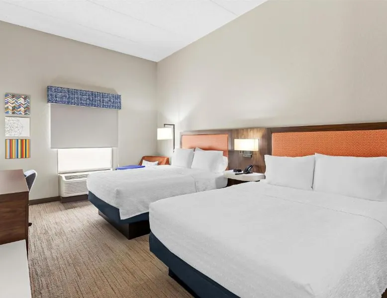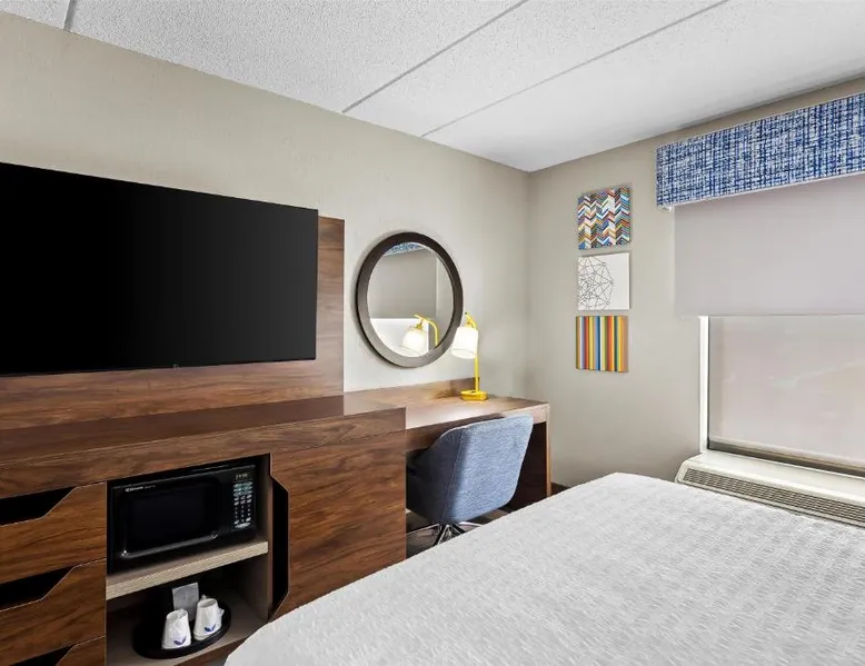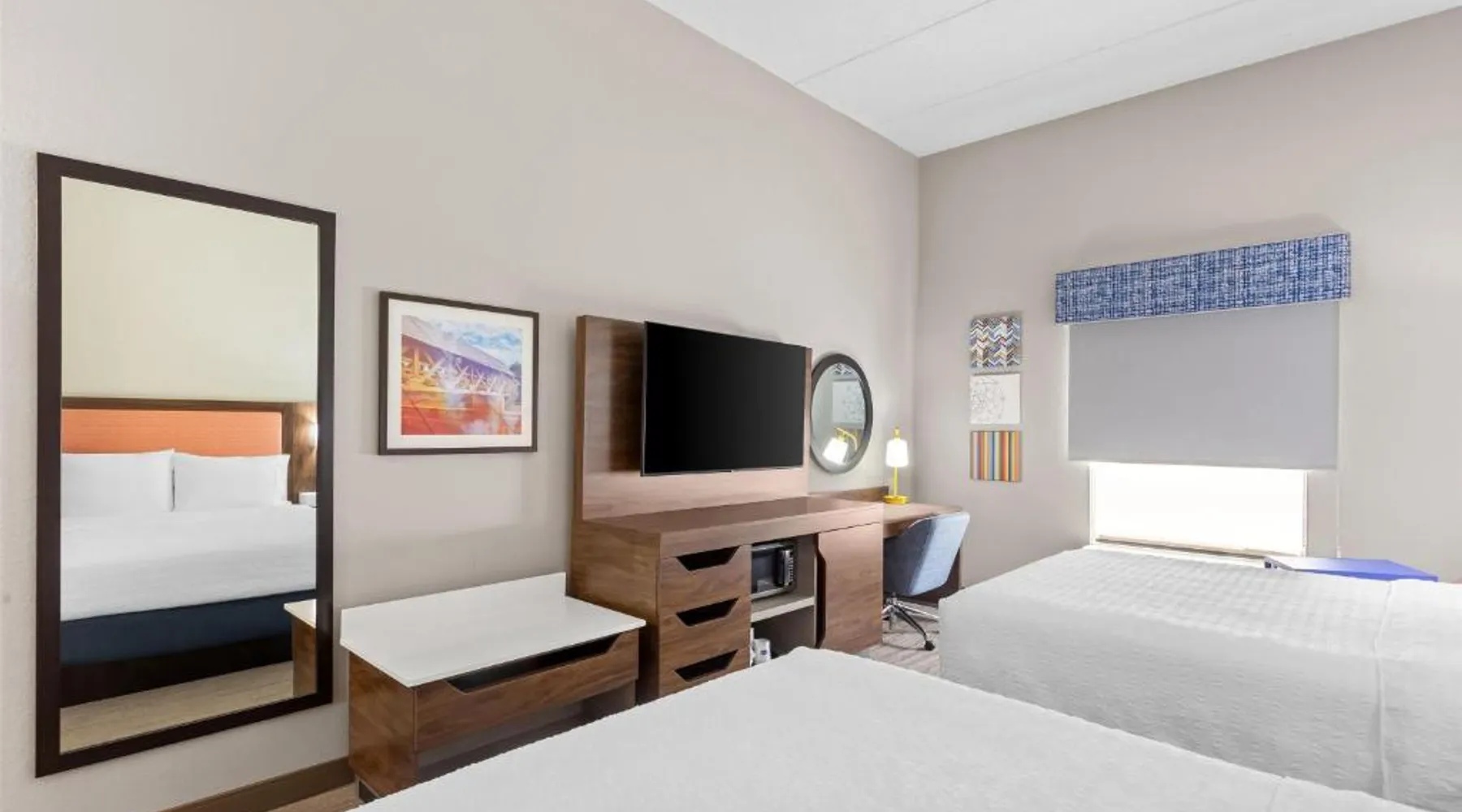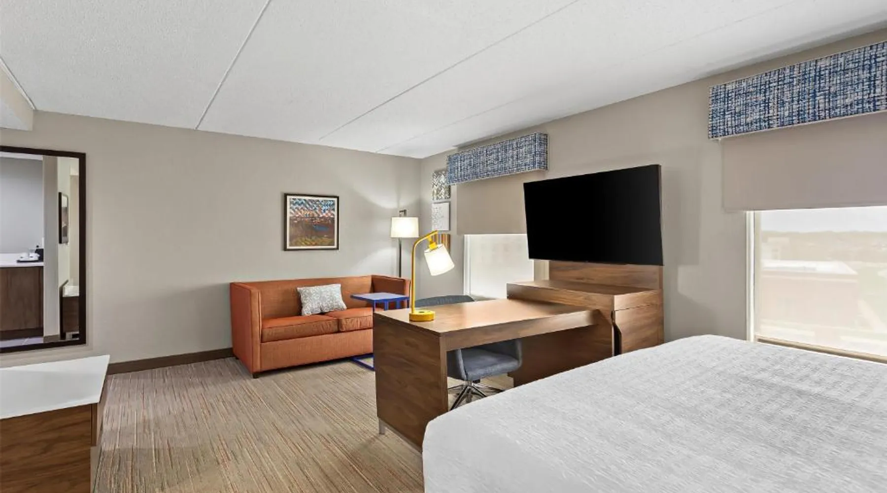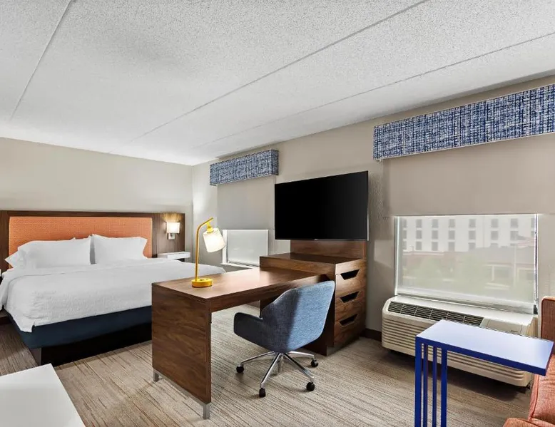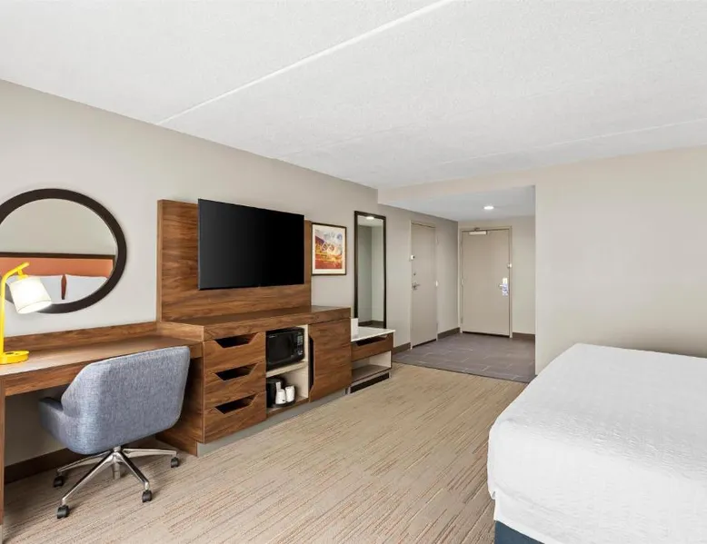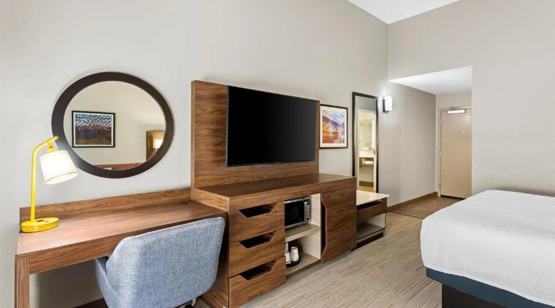 Conveniently located just off Interstate 55, this Bolingbrook, Illinois hotel features a variety of modern amenities and facilities, and is an ideal location for exploring the surrounding areas and attractions. The Hampton Inn and Suites Bolingbrook provides guests with everything needed for an enjoyable stay. Start the morning with a delicious free breakfast, or take a refreshing swim in the indoor pool. Browse the internet with wireless access or enjoy an in-room pay-per-view movie. In the area surrounding the Bolingbrook Hampton Inn, guests will find a number of golf courses, shopping centers and restaurants. Remington Lakes Sports Complex as well as the Chicago Speedway are also located nearby. The family room features air conditioning, a tea and coffee maker, heating, as well as a flat-screen TV with cable channels. The unit has 2 beds.