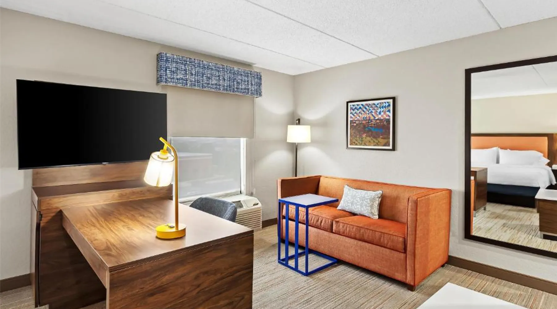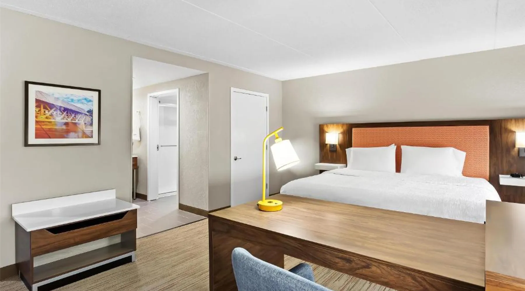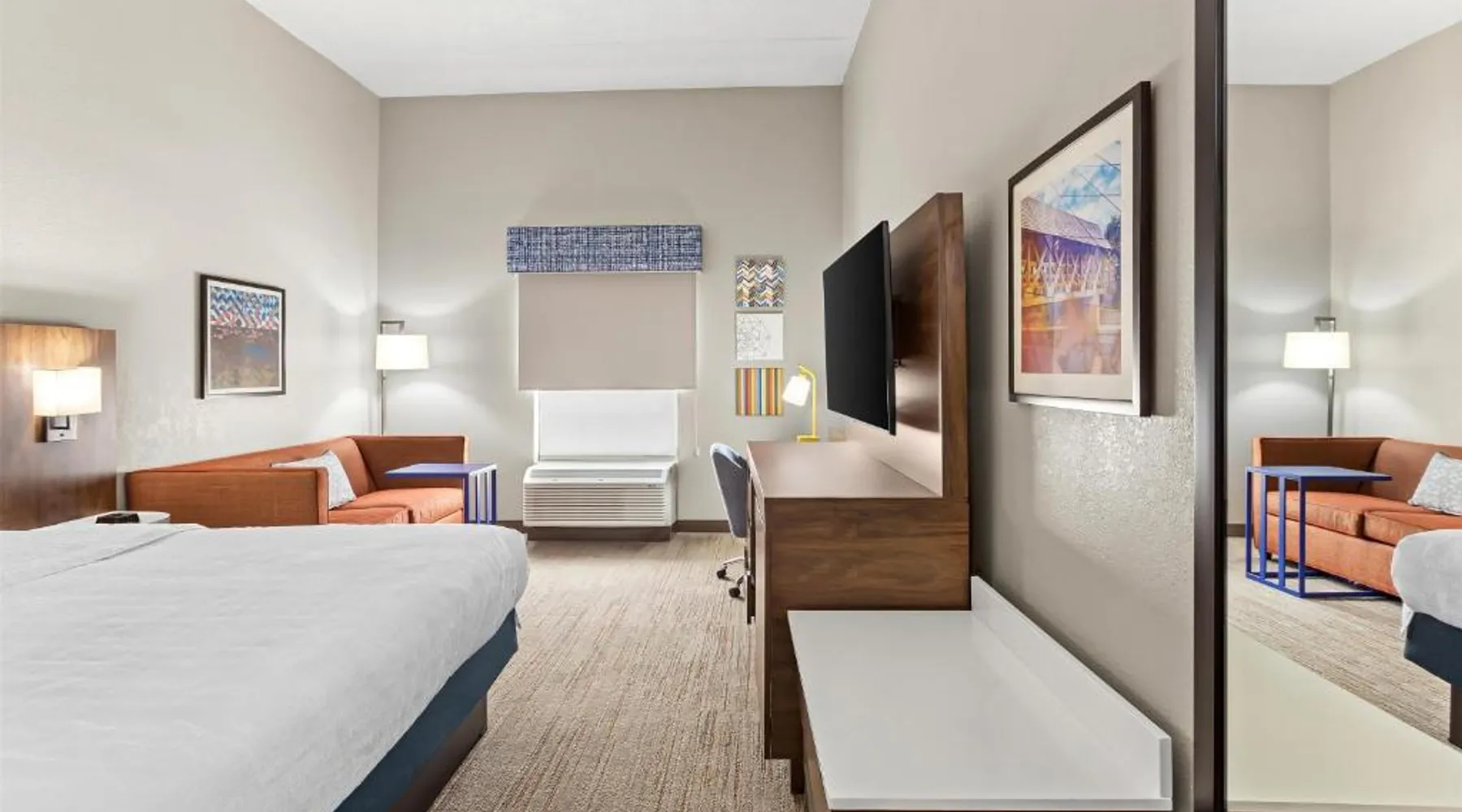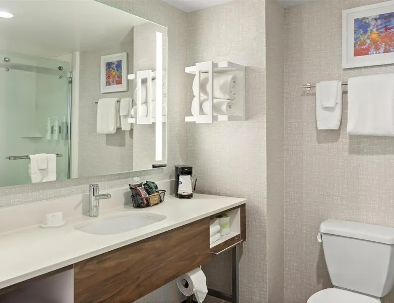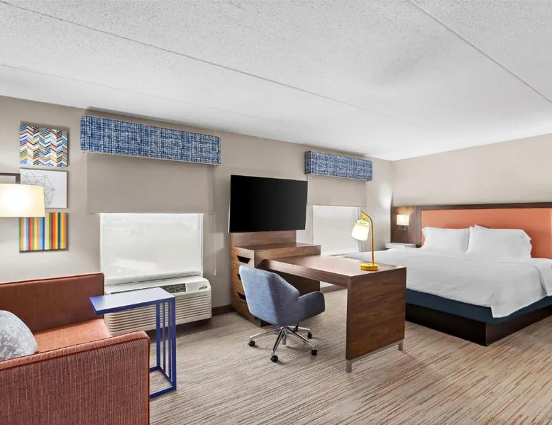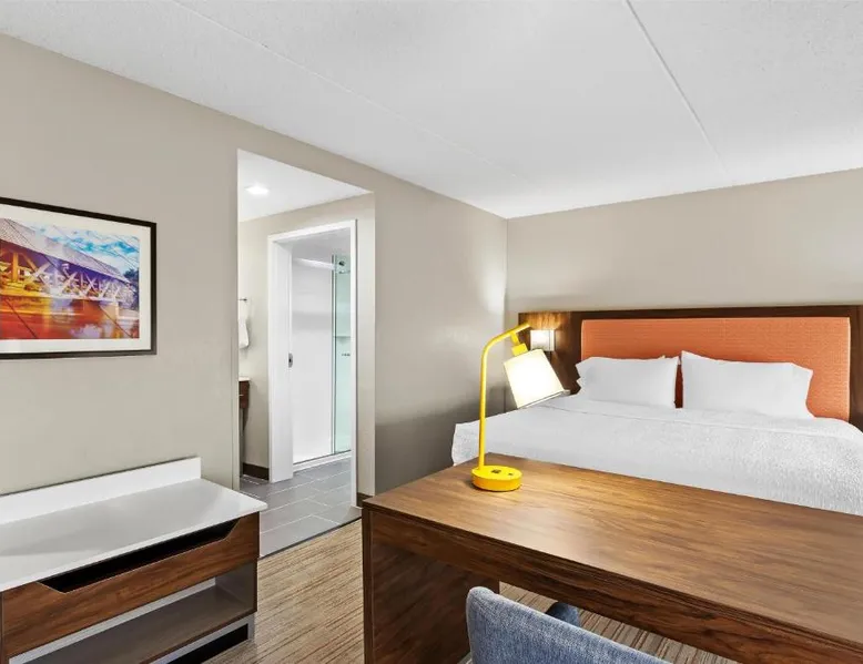 Conveniently located just off Interstate 55, this Bolingbrook, Illinois hotel features a variety of modern amenities and facilities, and is an ideal location for exploring the surrounding areas and attractions. The Hampton Inn and Suites Bolingbrook provides guests with everything needed for an enjoyable stay. Start the morning with a delicious free breakfast, or take a refreshing swim in the indoor pool. Browse the internet with wireless access or enjoy an in-room pay-per-view movie. In the area surrounding the Bolingbrook Hampton Inn, guests will find a number of golf courses, shopping centers and restaurants. Remington Lakes Sports Complex as well as the Chicago Speedway are also located nearby. The family room features air conditioning, a tea and coffee maker, heating, as well as a flat-screen TV with cable channels. The unit has 2 beds.