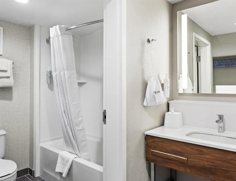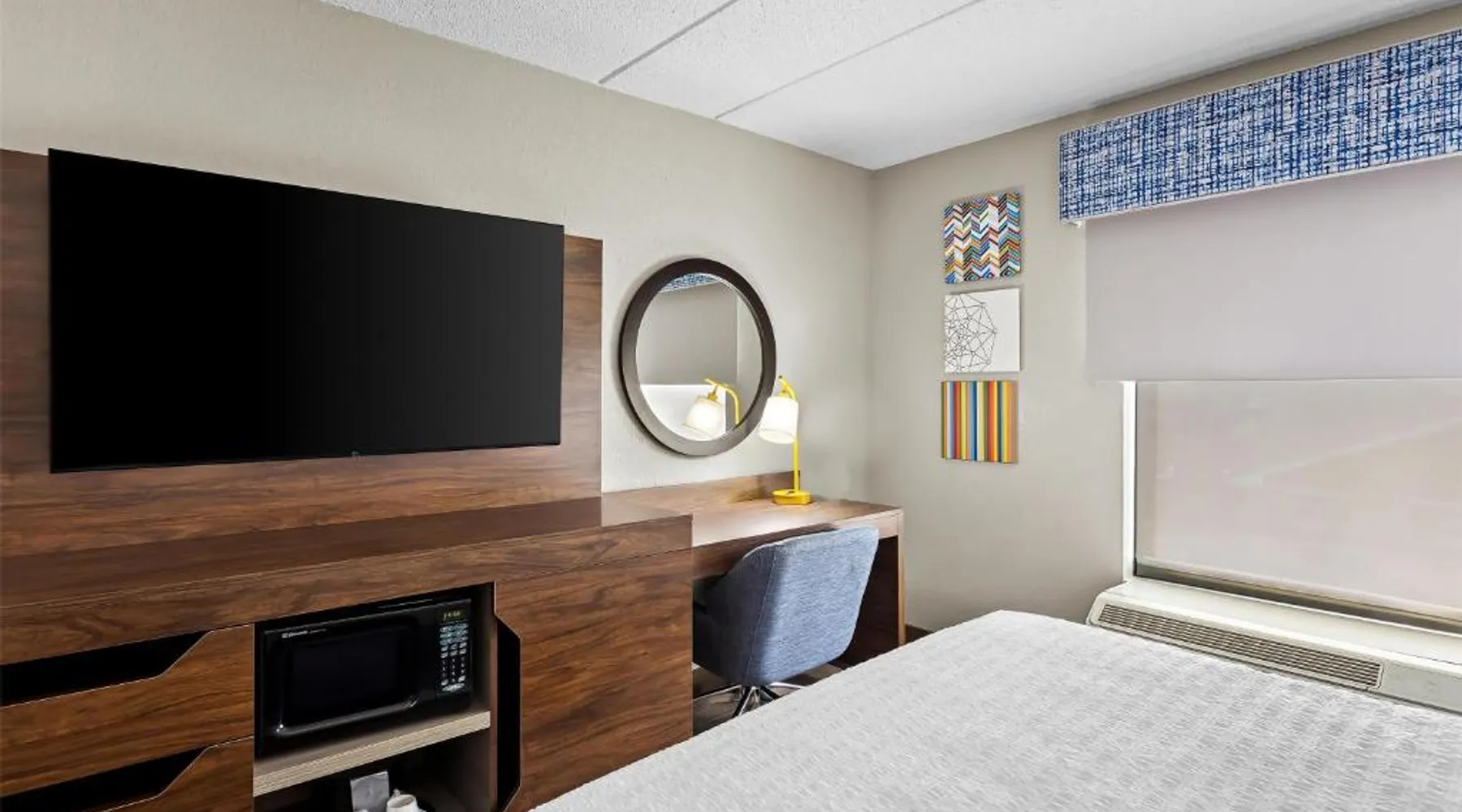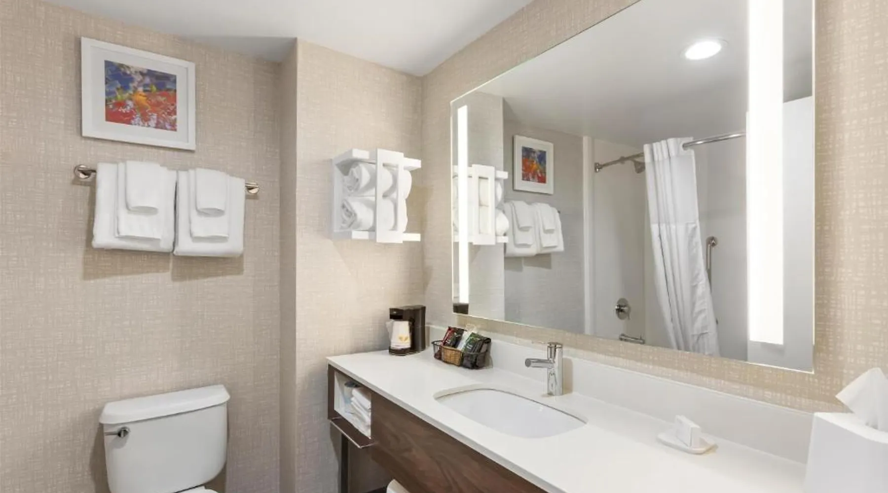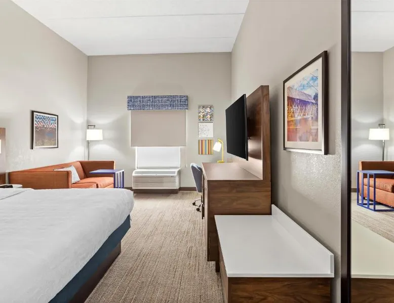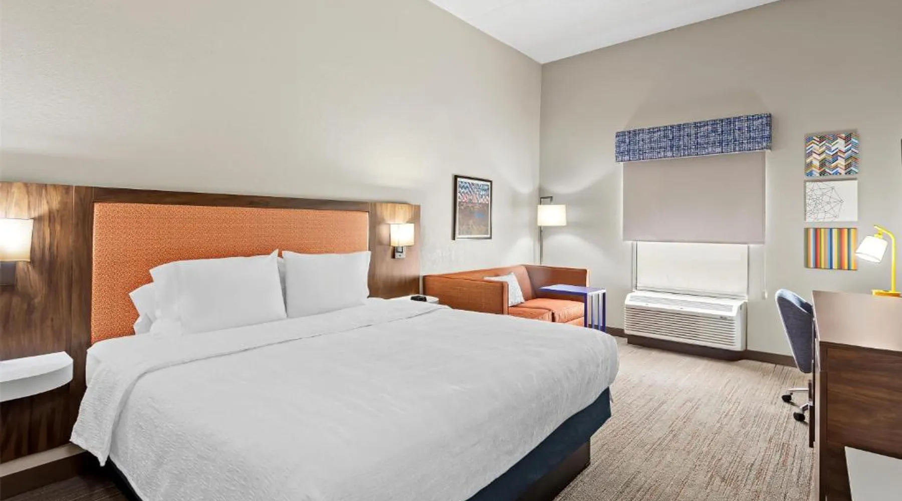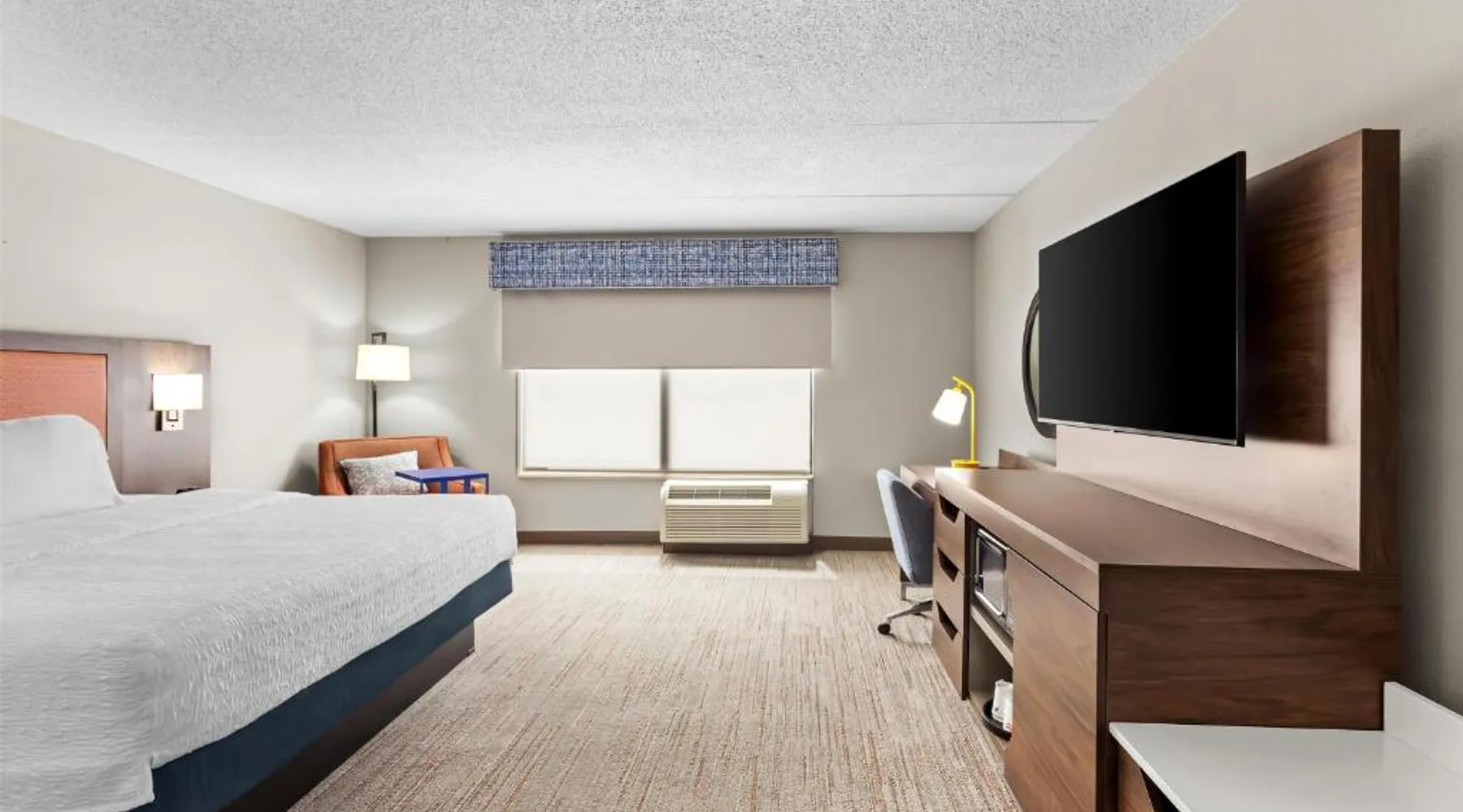 Conveniently located just off Interstate 55, this Bolingbrook, Illinois hotel features a variety of modern amenities and facilities, and is an ideal location for exploring the surrounding areas and attractions. The Hampton Inn and Suites Bolingbrook provides guests with everything needed for an enjoyable stay. Start the morning with a delicious free breakfast, or take a refreshing swim in the indoor pool. Browse the internet with wireless access or enjoy an in-room pay-per-view movie. In the area surrounding the Bolingbrook Hampton Inn, guests will find a number of golf courses, shopping centers and restaurants. Remington Lakes Sports Complex as well as the Chicago Speedway are also located nearby. The family room features air conditioning, a tea and coffee maker, heating, as well as a flat-screen TV with cable channels. The unit has 2 beds.