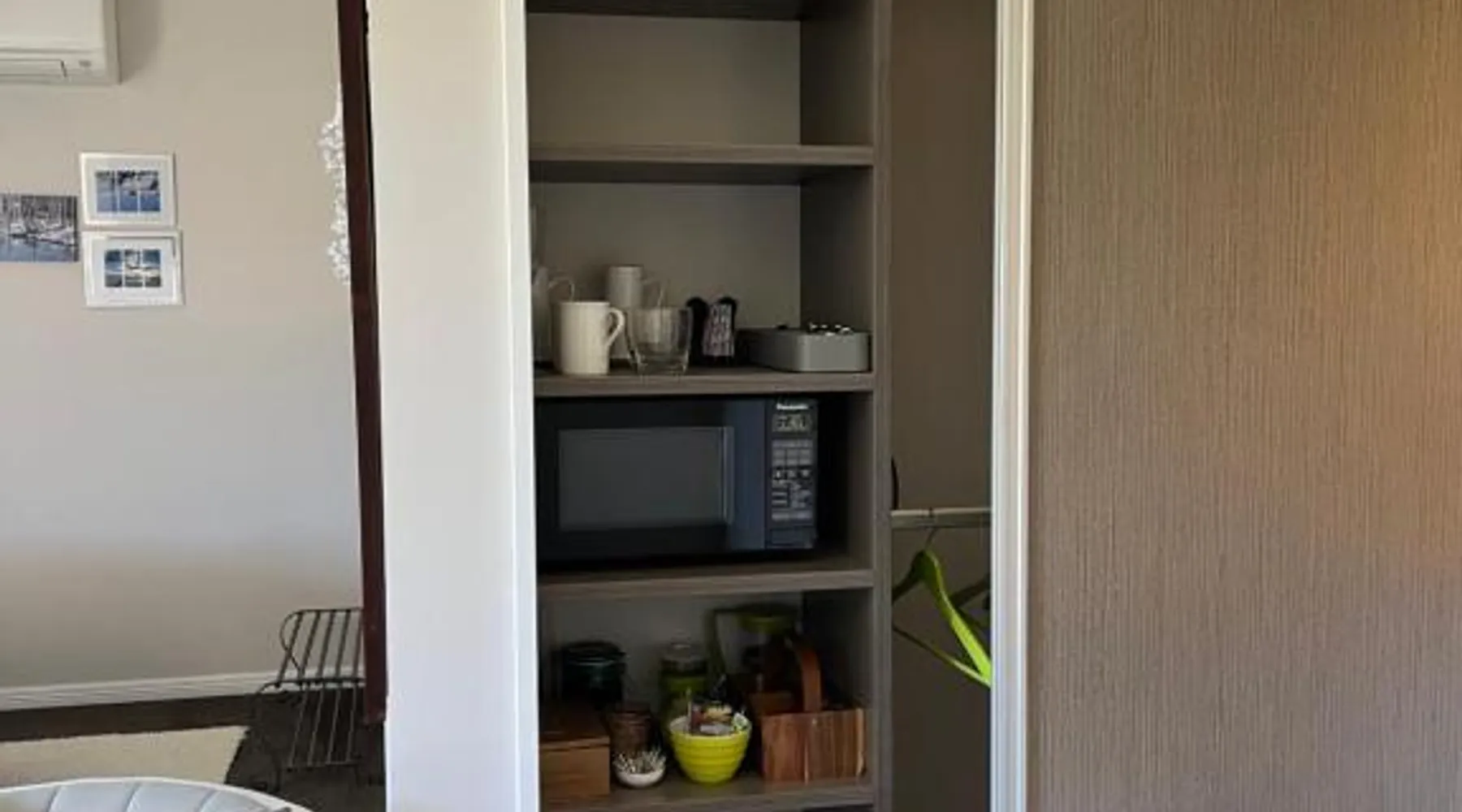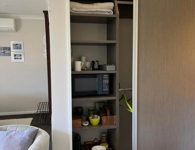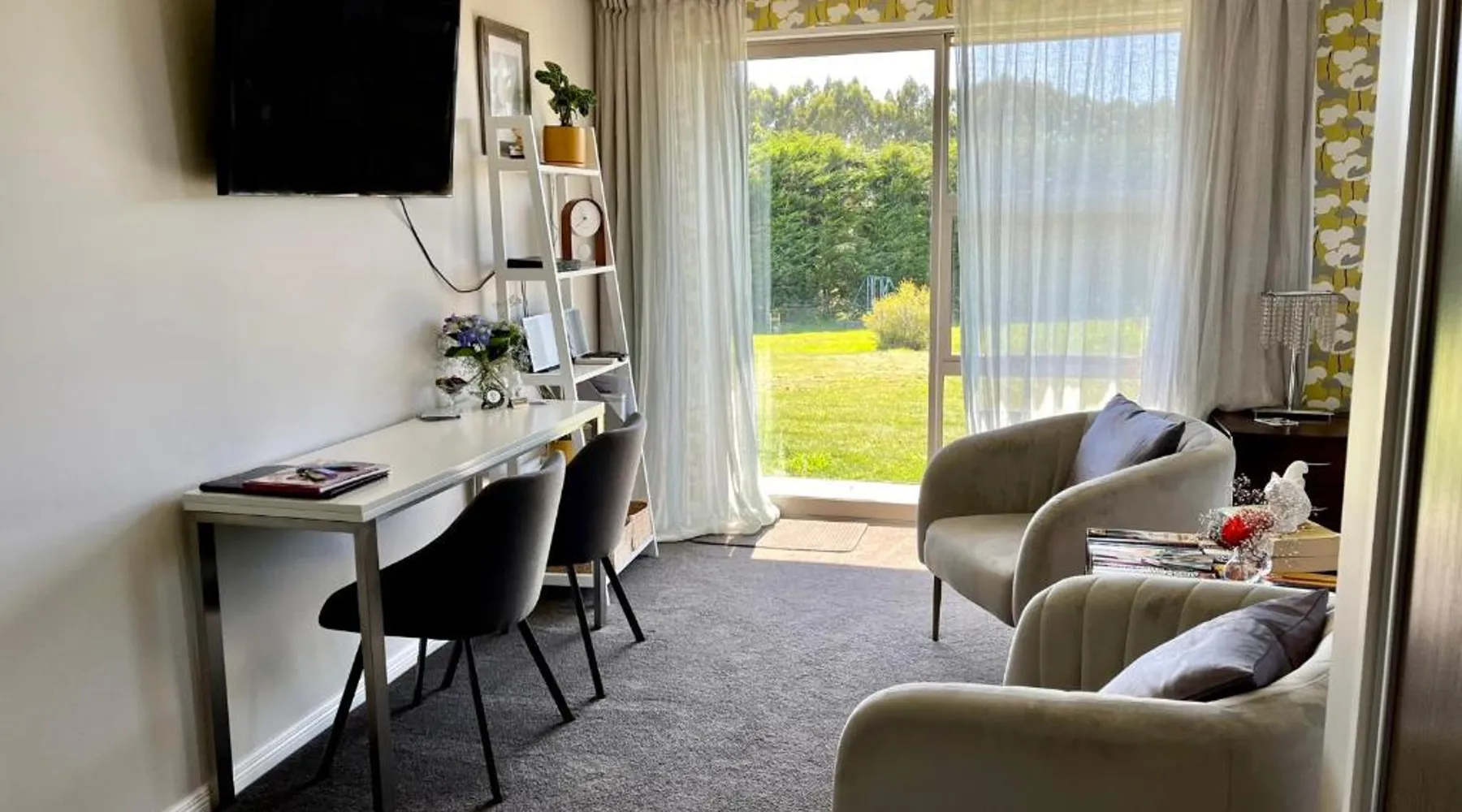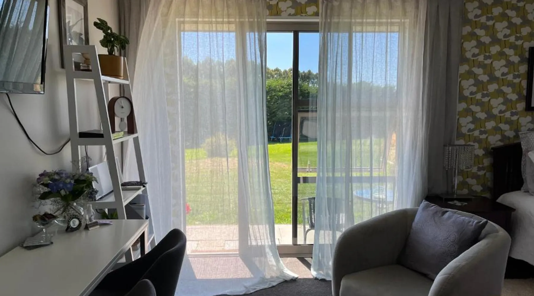 Comfortable Accommodations: Ra-ata Farm in Rangiora offers a bed and breakfast with one bedroom and a living room. Guests enjoy sea views, air-conditioning, and a private entrance. The property features a sun terrace, garden, and free WiFi. Modern Amenities: The bed and breakfast provides free on-site private parking, a private check-in and check-out service, and breakfast in the room. Additional facilities include an outdoor seating area, picnic area, family rooms, bicycle parking, and free WiFi throughout. Convenient Location: Located 24 mi from Christchurch International Airport, the property is near attractions such as Christchurch Art Gallery (25 mi) and Canterbury Museum (25 mi). Guests appreciate the quietness of the area and the comfort of the rooms. Featuring a private entrance, this air-conditioned suite consists of 1 living room, 1 separate bedroom and 1 bathroom with a walk-in shower and a hairdryer. This wheelchair accessible suite features a tea and coffee maker, a seating area with a flat-screen TV and a roll-in shower. The unit offers 1 bed.