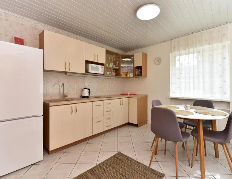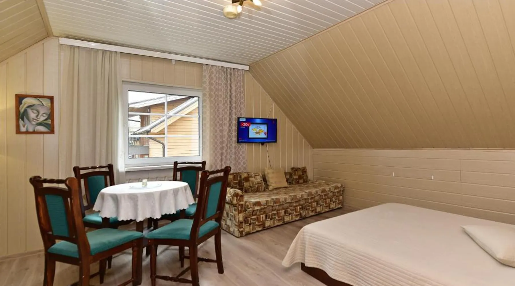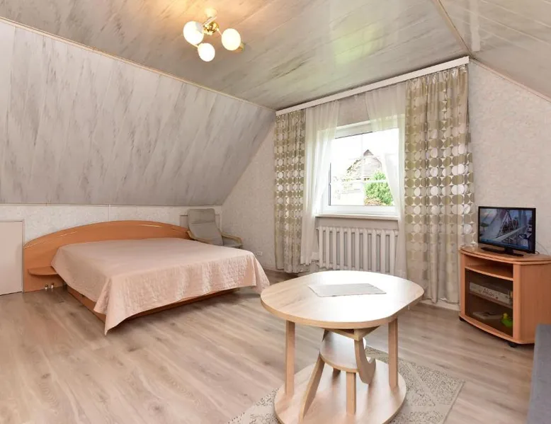 Beachfront Location: Augutės Zurlienės apartamentai in Trakai offers a private beach area and beachfront access. Guests can relax on the sun terrace or in the garden, enjoying stunning lake views. Comfortable Accommodations: The guest house features family rooms with private bathrooms, equipped with modern amenities. Free WiFi is available throughout the property, ensuring connectivity for all visitors. Leisure Facilities: Guests can enjoy an outdoor fireplace, sauna, steam room, and outdoor play area. Additional facilities include a lounge, shared kitchen, and barbecue areas, catering to all leisure needs. Nearby Attractions: Trakai Castle is a 17-minute walk away, while Vilnius International Airport is 19 mi from the property. Boating and other activities are available in the surrounding area. This room features a TV with satellite channels, a CD player and a sofa. It offers a patio with a view of the lake and shared bathroom facilities. There is also a hairdryer available.