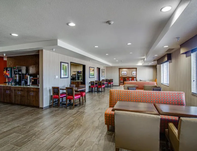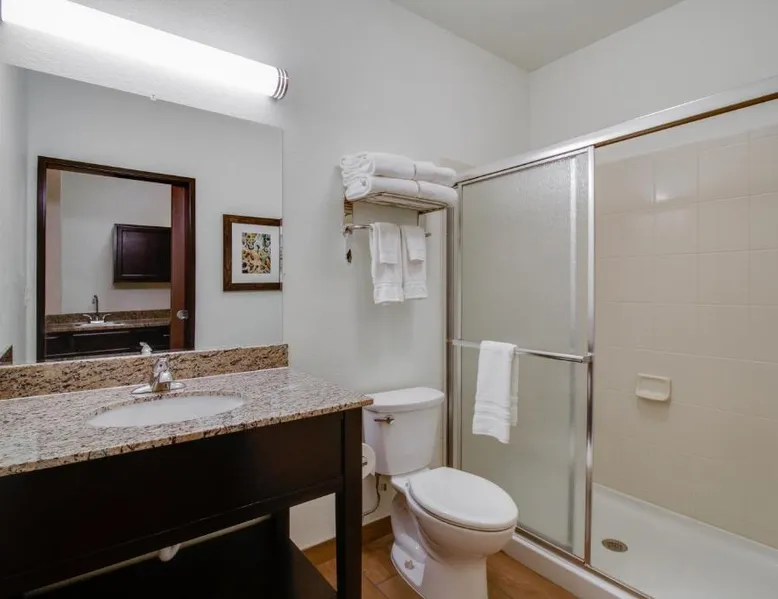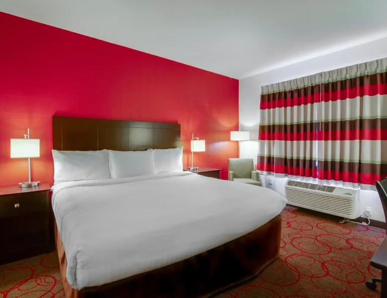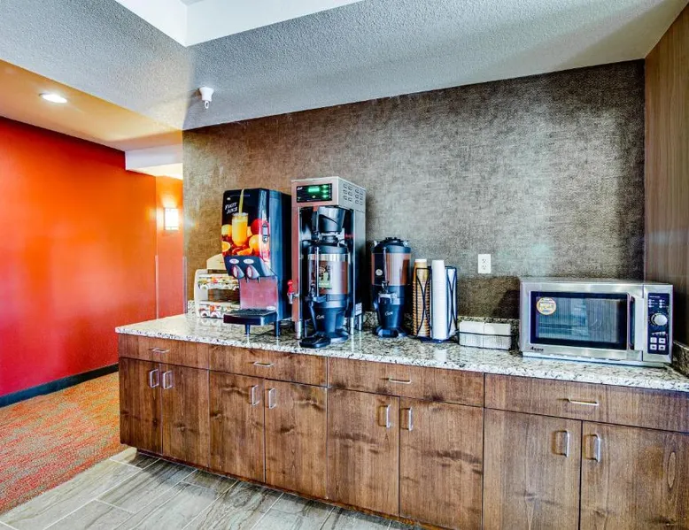 Comfortable Accommodations: Inn at Hunters Run in Watford City offers clean, comfortable rooms with air-conditioning, private bathrooms, and modern amenities. Guests enjoy free on-site private parking, a fitness center, and an outdoor seating area. Convenient Facilities: The hotel features a lounge, elevator, 24-hour front desk, minimarket, laundry service, and streaming services. Additional amenities include a kitchenette with a refrigerator, microwave, stovetop, toaster, and coffee machine. Interconnected rooms are available for added comfort. Breakfast and Dining: A continental breakfast is served daily, providing a selection of fresh options to start the day. Location and Attractions: Located 56 mi from Williston Basin International Airport, the hotel is highly rated for its room cleanliness, value for money, and quietness. The air-conditioned suite has 1 bedroom and 1 bathroom with a bath and a shower. In the well-equipped kitchenette, guests will find a stovetop, a refrigerator, kitchenware and a microwave. This suite offers a tea and coffee maker and a flat-screen TV with streaming services. The unit has 1 bed.