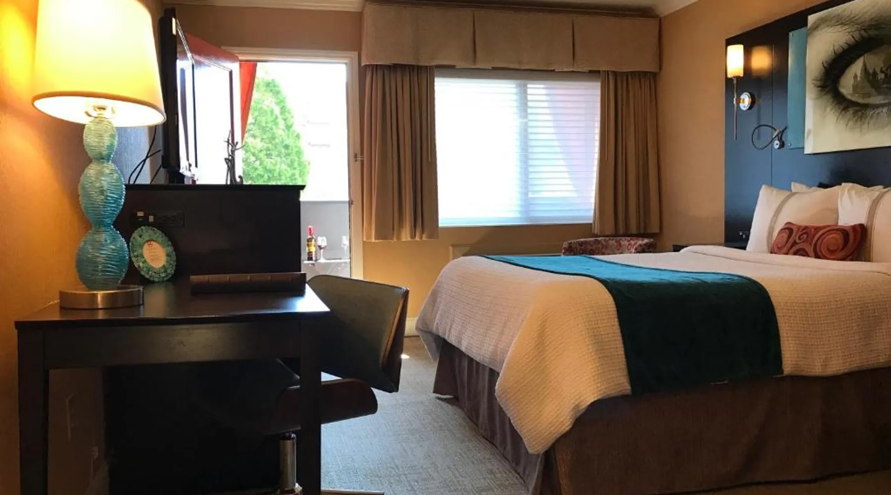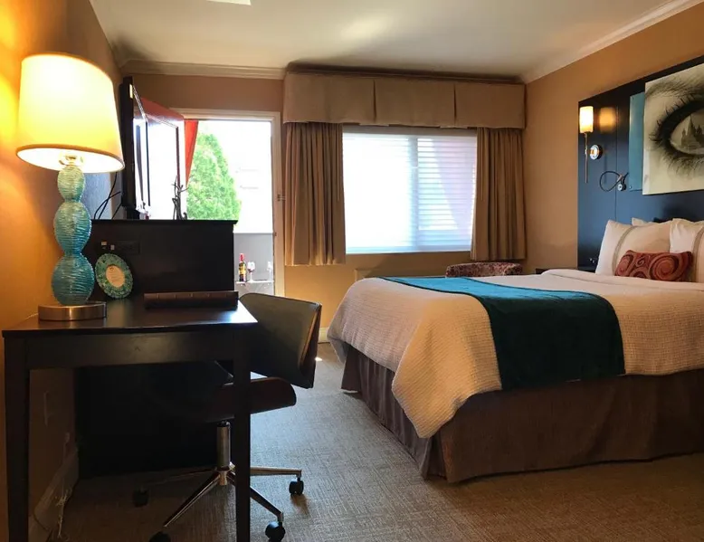 The Dylan Hotel at SFO is 0.9 mi away from San Francisco International Airport. This boutique hotel is family-owned and located 3 minutes' walk to the Millbrae BART/CalTrain station with service to San Francisco, San Jose, and the East Bay area. Free hi-speed WiFi, a flat-screen cable TV, USB outlets, modern artwork and individual air conditioning and heating are offered in each spacious room. An private bathroom with Spanish tile accents and rain shower head is also included. Larger deluxe rooms set along a quiet hall come with a balcony, bathrobes and vinyl record player. Coffee and tea are available 24 hours a day in the lobby and in guests' room. Wine by the glass or bottle, beer, alcohol and pre-mixed cocktails and snacks available for purchase. A tour desk is located on site. A furnished courtyard with a fountain is available for guest relaxation. Multiple restaurants are located within 5 minutes' walk of the hotel. The hotel is within 15 mi of the Moscone Center and 17 mi of Golden Gate Bridge. Deluxe rooms have a refrigerators and microwave. Parking is free night of stay. THIS IS VERY IMPORTANT. WE ARE AN AIRPORT HOTEL AND GUESTS CANNOT LEAVE THEIR CAR WHILE THEY HAVE LEFT FOR A TRIP. Public - guest paid airport shuttle minutes from the hotel. Offering in-room coffee, APP streaming, 40" TV with HD cable channels, USB outlets, free WiFi, ECO friendly water bottles, air-conditioning, safe and work desk. Free parking night of stay, guest paid Grab-n-Go continental breakfast and pre-mixed cocktails, beer and wine. Public paid airport shuttle nearby. ADA room available