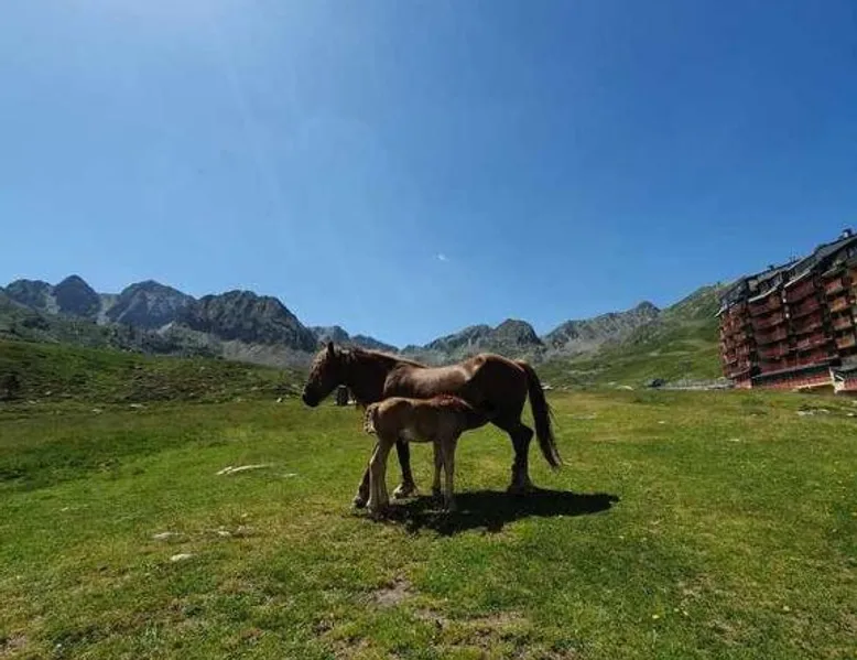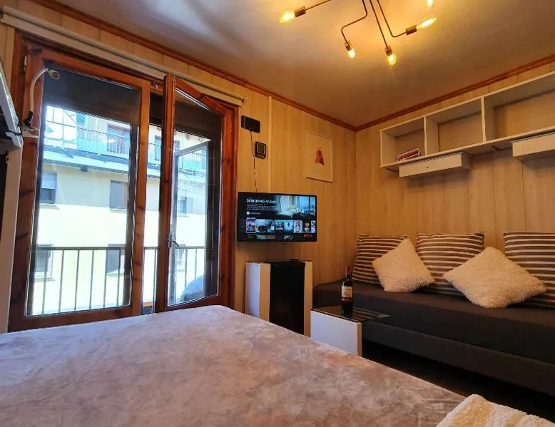 Ski-to-Door Access: Tu Refugio veraniego en la Montaña 2-0064 in Pas de la Casa offers ski-to-door access, allowing guests to enjoy winter sports directly from their apartment. Modern Amenities: The property features a terrace, balcony, and free WiFi. Additional amenities include a kitchenette, private bathroom, and a living room with a fireplace. Comfortable Living: Guests can relax in the dining area or take advantage of the streaming services available. The apartment includes a refrigerator, microwave, and a TV. Local Attractions: Naturland is 26 mi away, Meritxell sanctuary 12 mi, and Estadi Comunal de Aixovall 18 mi. Winter sports enthusiasts will appreciate the nearby ski resorts. This apartment features a fireplace. Guests can make meals in the kitchen that has a stovetop, a refrigerator, kitchenware and a microwave. This apartment is consisted of of a TV with streaming services, a private bathroom as well as a terrace with mountain views. The unit has 2 beds.