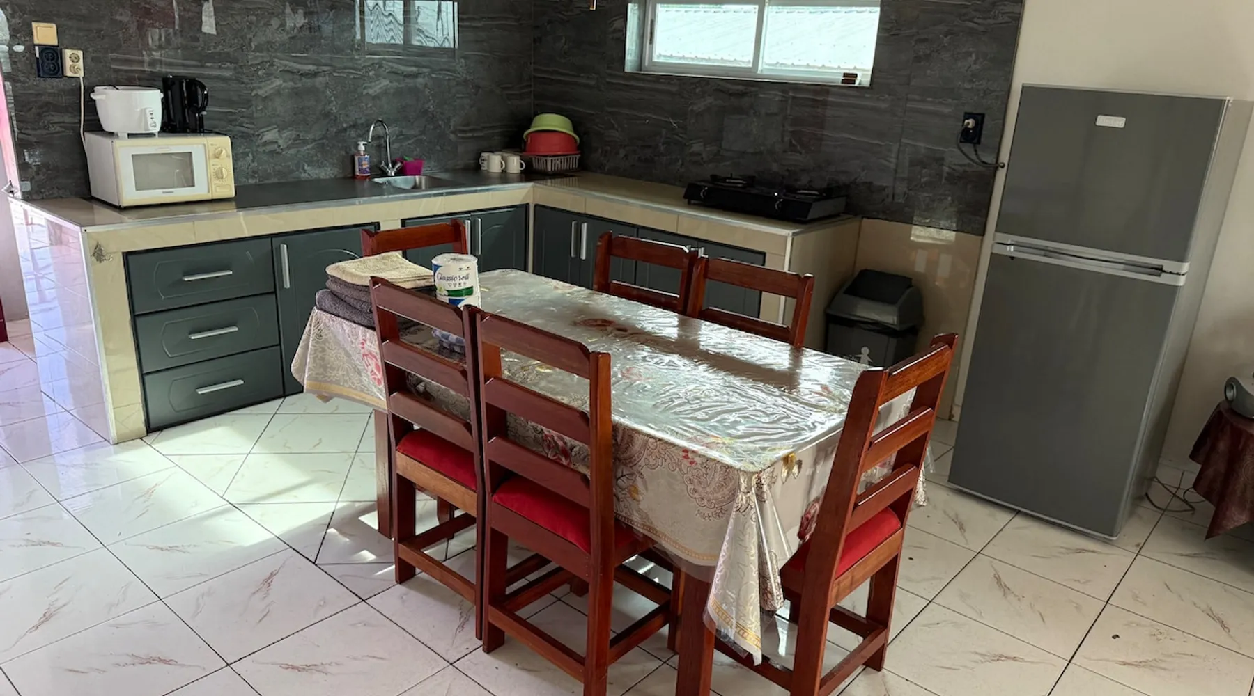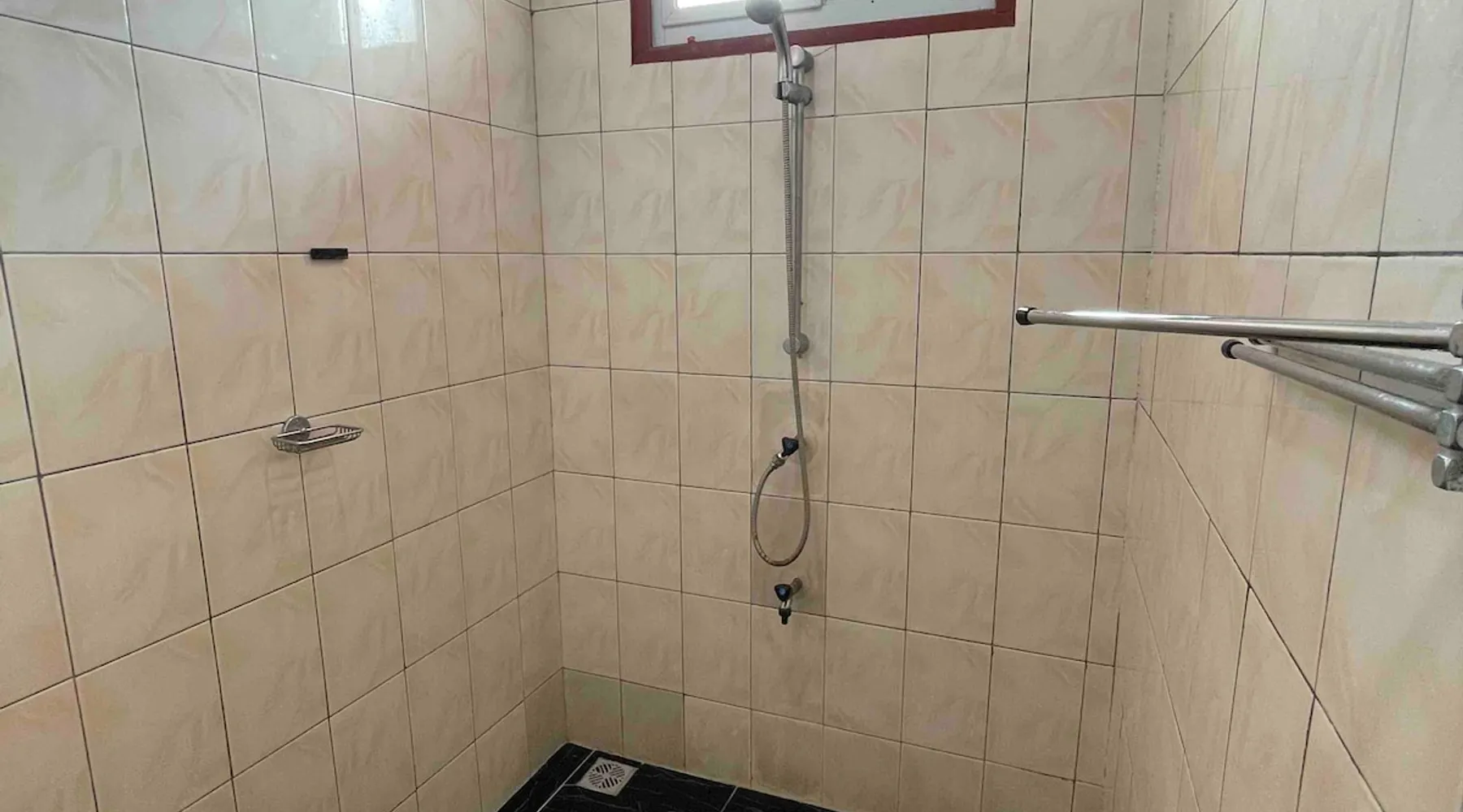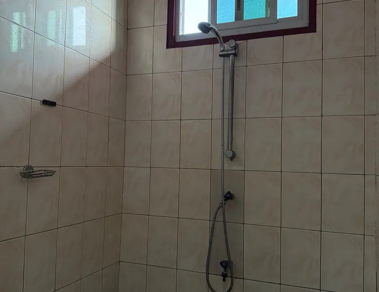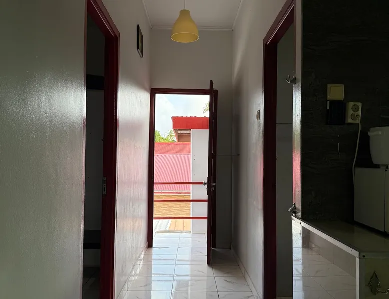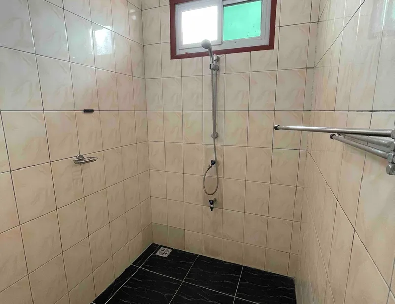 This apartment is on the first floor with sea view. All rooms have air conditioning. The other amenities are: 3 bedrooms of 16 m2 with beds of 160×200 cm, 1 living room 8×4 m, dining area with 6 chairs, fridge, gas stove, kettle, rice cooker, microwave, sofa set, radio, LEDtv and bathroom, toilet, separate room with sink, balcony 4×9 m with lounge set at the front and balcony at the rear 1.5x 2 m.