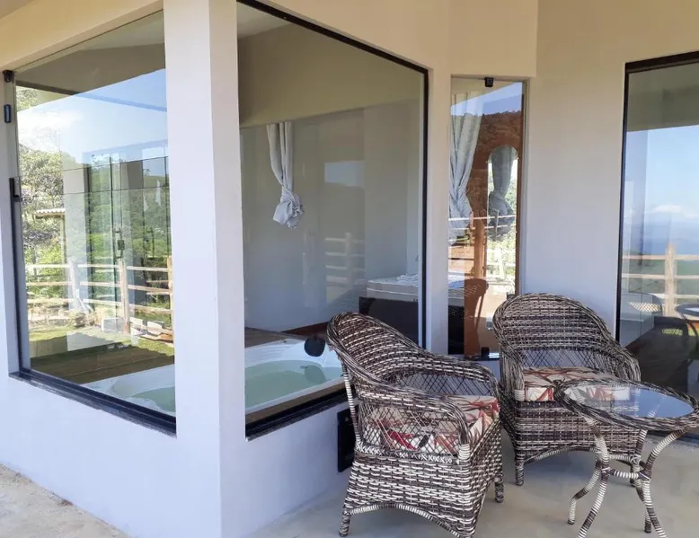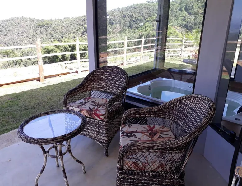 Chalé Privilégio in Rio Prêto: Chalé Privilégio offers a chalet experience in Rio Prêto, Brazil. The property features a garden, bar, and free WiFi, ensuring a relaxing and connected stay. Comfortable Accommodations: The chalet includes one bedroom, one bathroom, and a spacious living room. Guests can enjoy amenities such as a kitchenette, balcony with garden and mountain views, and a fireplace. Leisure Facilities: Guests can unwind in the hot tub, pool with a view, or sauna. The property also provides a children's playground, barbecue facilities, and outdoor seating areas. Convenient Services: Private check-in and check-out, concierge service, and entertainment staff enhance the stay. Free on-site private parking is available, and walking tours can be arranged. Guests will have a special experience as this chalet offers a pool with a view, a hot tub and a spa bath. Featuring a private entrance, this chalet consists of 1 living room, 1 separate bedroom and 1 bathroom with a shower and a hairdryer. Guests will find a stovetop, a refrigerator, kitchenware and an oven in the well-fitted kitchen. The chalet also offers a barbecue. Boasting a balcony with garden views, this chalet also provides soundproof walls and a flat-screen TV with cable channels. The unit offers 2 beds.