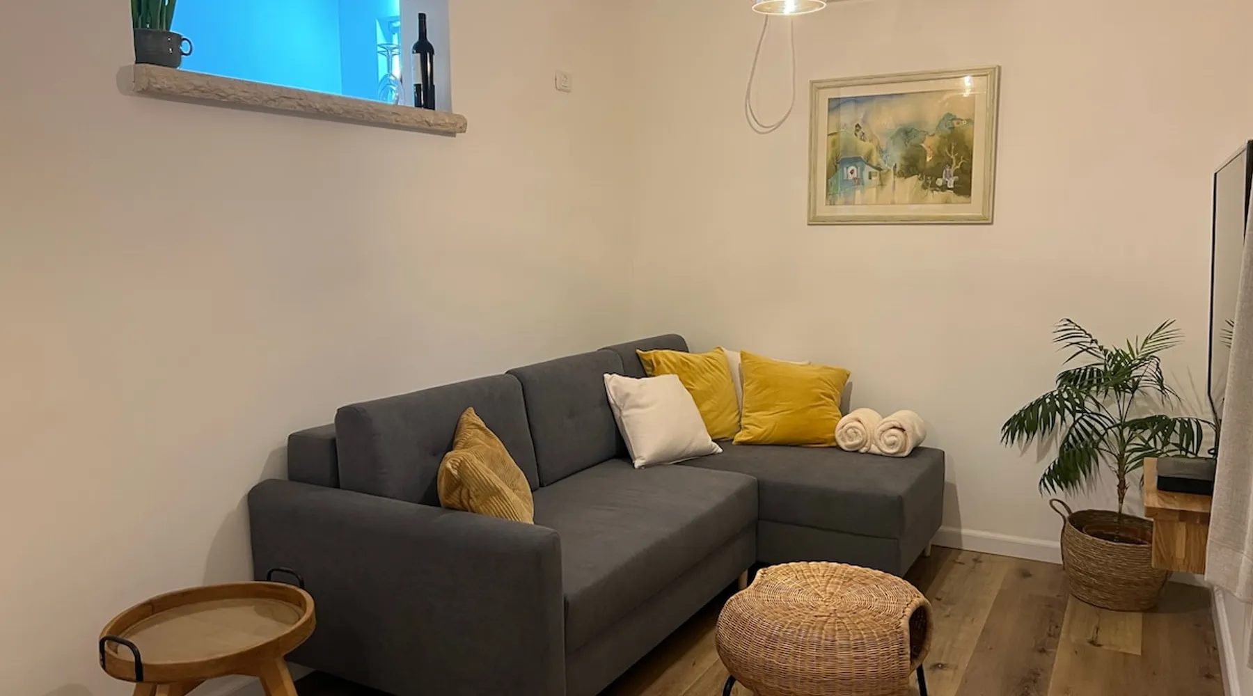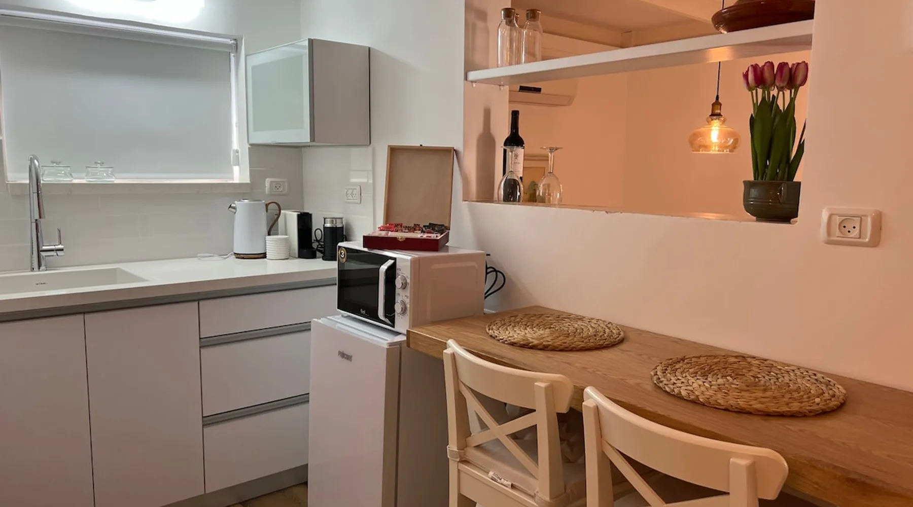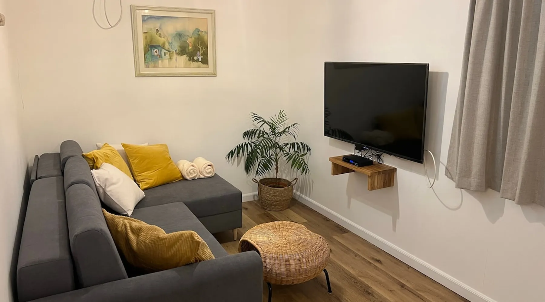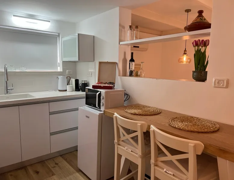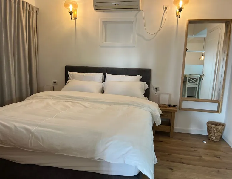 In Moshav Kfar Hittim, located on the Arbel ridge, you will be staying in the Zimer Hittim, A single B&B with full privacy in a rustic and pastoral atmosphere. The B&B is spacious and equipped with everything you need for a pleasant double vacation. In the courtyard of the Zimmer under the shade of the mango tree you will enjoy a refreshing pool, a pampering Jacuzzi, garden furniture, a well maintained garden, a barbecue area and pleasant night lighting. The B&B includes: a bedroom with a comfortable double bed, a living room, TVs connected to Lis, WiFi, a dining area and a fully equipped kitchen including: refrigerator, microwave, electric kettle, coffee machine, dinnerware and induction stove, air conditioning, and a fully equipped private bathroom