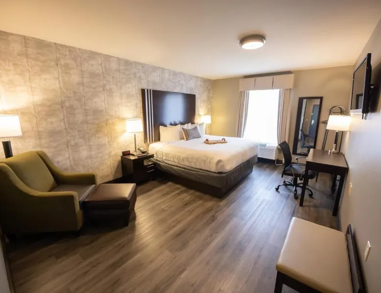 Comfortable Accommodations: Distill-Inn in Bardstown offers 3-star rooms with air-conditioning, private bathrooms, and free WiFi. Each room includes a tea and coffee maker, work desk, and parquet floors. Exceptional Facilities: Guests can enjoy a bar, coffee shop, and outdoor seating area. Additional amenities include a 24-hour front desk, daily housekeeping, and free on-site private parking. Delicious Breakfast: A continental and American buffet breakfast is served with warm dishes, fresh pastries, pancakes, cheese, fruits, and juice. Prime Location: Located 32 mi from Louisville International Airport, the hotel is near attractions such as My Old Kentucky Home State Park (2.6 mi) and Oscar Getz Museum of Whiskey History (2.1 mi). The spacious double room features air conditioning, a tea and coffee maker, as well as a private bathroom boasting a bath and a hairdryer. This double room has parquet floors, heating and a flat-screen TV with cable channels. The unit has 1 bed.