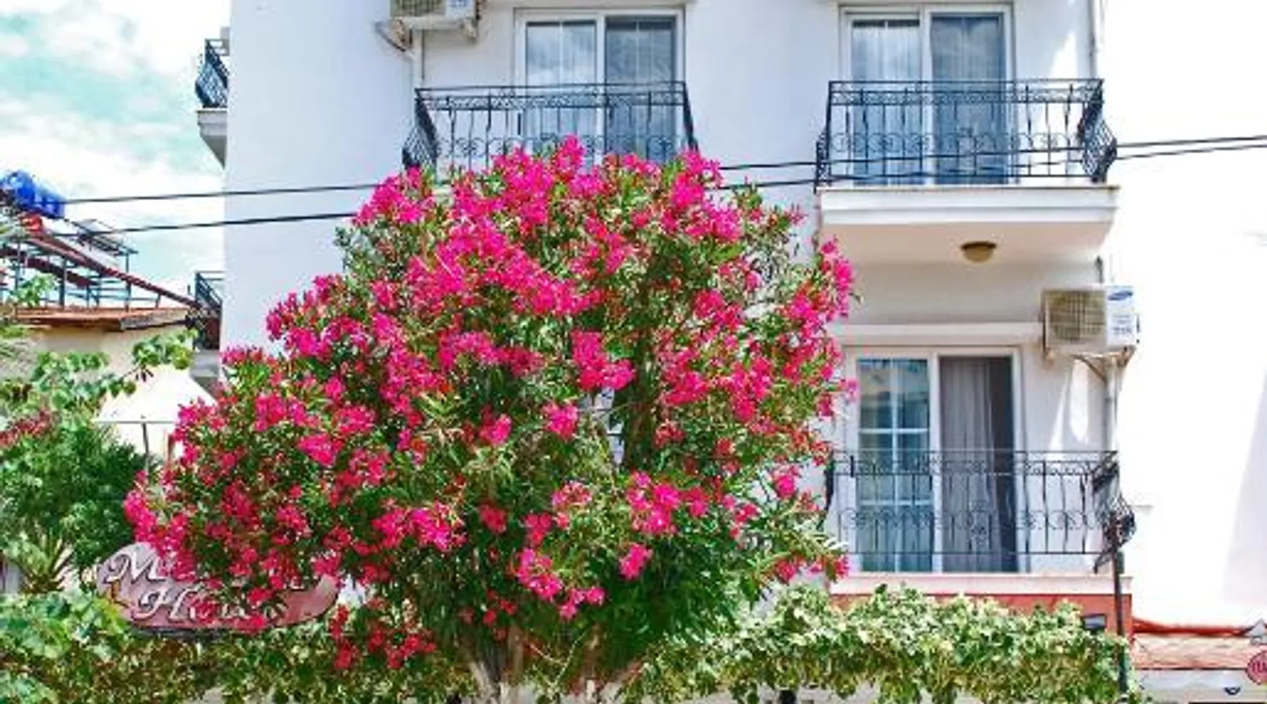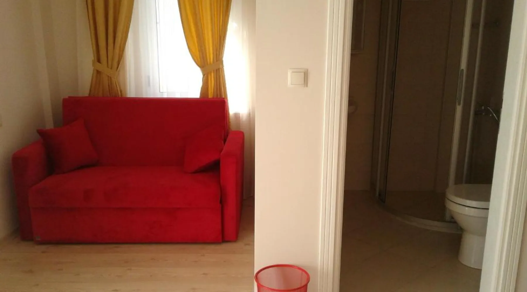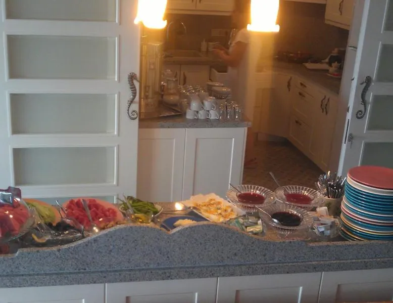 Beachfront Location: Melaike Hotel in Foca offers direct beachfront access, a sun terrace, and a lush garden. Guests enjoy free WiFi throughout the property. Comfortable Accommodations: Rooms feature balconies with garden views, private bathrooms, parquet floors, and modern amenities such as TV and hairdryer. Leisure Facilities: The hotel provides a lounge, outdoor seating area, and family rooms. Additional services include a paid shuttle, bike hire, and free on-site parking. Nearby Attractions: Kucukdeniz is a 5-minute walk away, Buyukdeniz lies 0.7 mi from the hotel, and Karakum Beach is 1.4 mi distant. Izmir Adnan Menderes Airport is 58 mi away. Spacious suite with 2 private balconies.