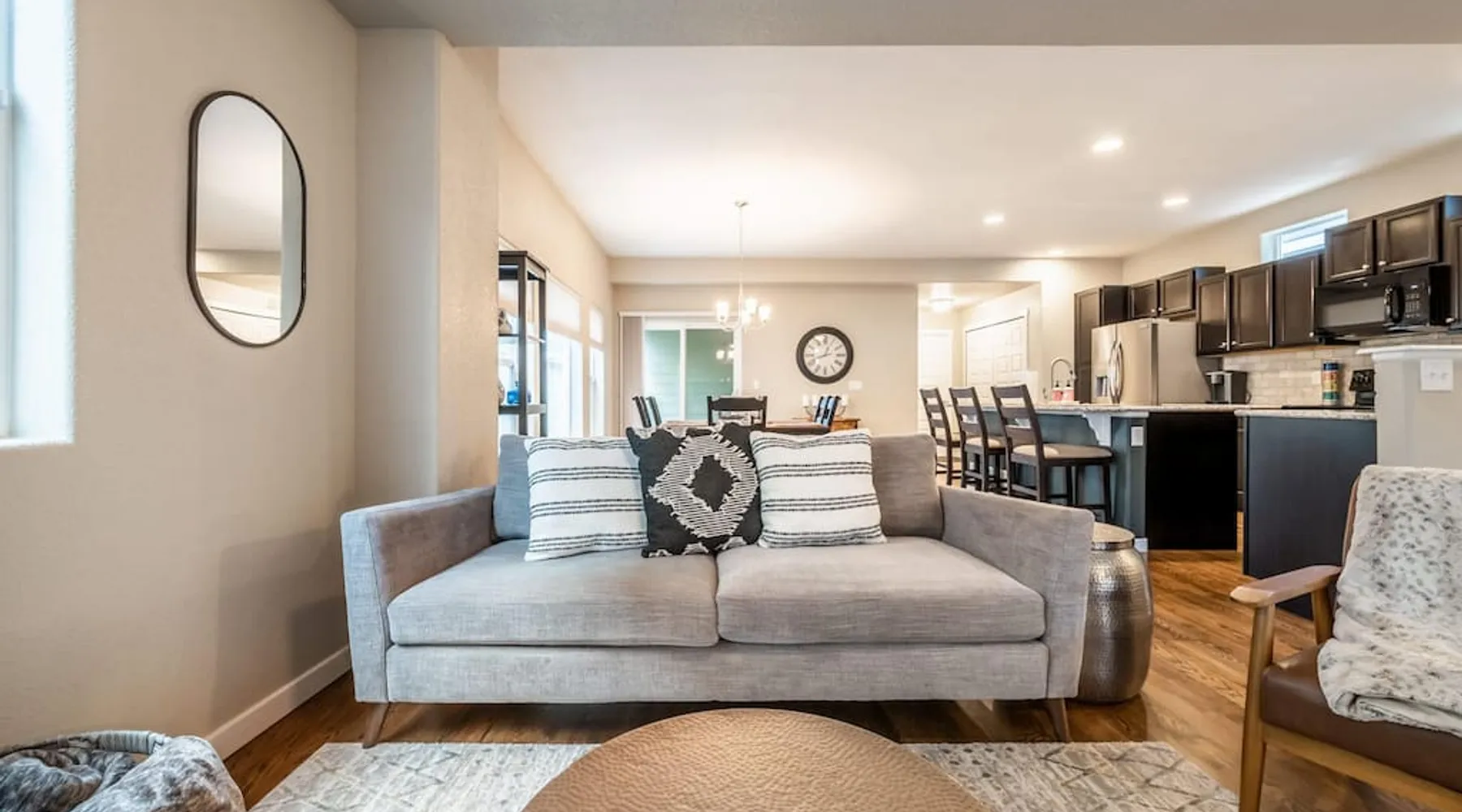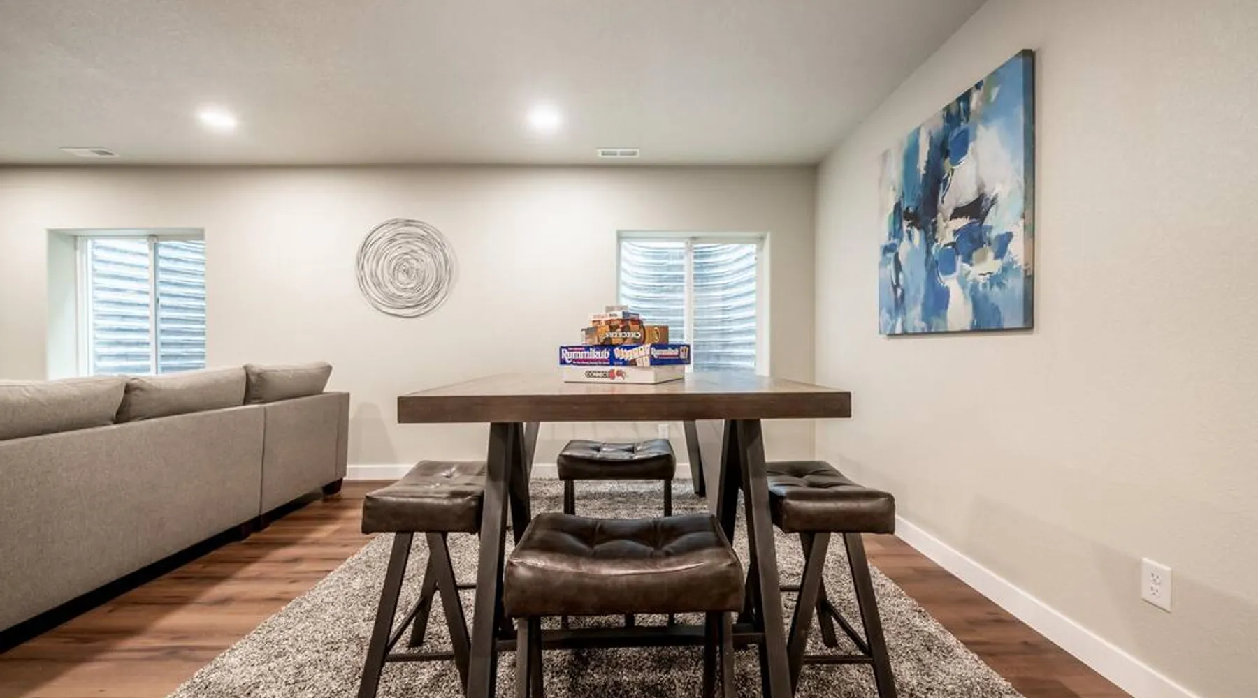 Relax and feel at home in this modern Colorado Springs retreat! 🏡 Perfect for families and groups, it’s centrally located with open spaces and comfy bedrooms. 🏙️ Minutes to downtown shops & restaurants 🏰 Quick drive to Garden of the Gods, The Broadmoor & more 🎲 Table football & board games for fun nights in 🚀 Fast WiFi, workspace, & Smart TVs 🍽️ Fully-stocked kitchen 👶 Pack-n-play for little adventurers Your relaxing trip is waiting! Book now! ✨ The space Step into your sanctuary of relaxation and modern comfort, where every detail is thoughtfully designed for a memorable stay. From the inviting open floor plan to serene bedrooms and convenient amenities, this contemporary Colorado Springs home offers the perfect retreat for work, study, or leisure. 🌟 Relaxation Haven 🛋️ Unwind in the spacious family room with large comfy couches. 🎥 Enjoy movie nights on the Smart TV. 🎮 Play games or cook in the fully equipped kitchen. Bedroom Setup 🛏️ Bedroom 1: Queen Bed 🛏️ Bedroom 2: Queen Bed 🛏️ Bedroom 3: Queen Bed 🛏️ Bedroom 4: Single Bed 🛏️ Bedroom 5: Single Bed Smoke-Free Environment 🚭 Smoking is strictly prohibited within the unit. A $250 penalty fee applies for violations. Guest Age Requirements 👤 Guests named on the reservation must be at least 18 years old and present at check-in throughout the stay. Check-In / Check-Out 🕓 Check-in: 4 PM onwards 🕙 Check-out: By 10 AM 📅 Early check-ins/late check-outs available upon request and subject to fees. Enhanced Security 🔒 Audio/video cameras are installed in common areas and outside for safety. 🛑 No recording devices are present within the unit, ensuring complete privacy. Book your stay and enjoy a relaxing and secure getaway! 🌟 Guest access 👥 This unit accommodates up to 6 overnight guests. Feel free to have visitors, but per city regulations, no more than 6 people are allowed overnight at any time. Over-occupancy may result in eviction. Parking 🚗 Free street parking is available in the area for your convenience. Gatherings 🎉 We want you to enjoy your time in Colorado Springs, but this property has a strict No Party policy to respect neighbors and other tenants. Quiet Hours 🔕 Quiet hours are from 10 PM to 8 AM. Guests are responsible for ensuring all persons in the unit maintain peaceful conduct during these hours. Other things to note 📜 Rental Agreement: For a seamless booking experience, a Rental Agreement is required for all reservations. Once your reservation is confirmed, we’ll provide details for completing the agreement. 🔑 Check-In Process: For a seamless check-in experience, your unique code along with your check-in instructions will be updated into your personalized guidebook on the morning of your arrival. You’ll use this code for entry. ☕ Starter Supply: We’ve prepared a starter supply that includes paper towels, coffee K-cups, toilet paper, shampoo, body wash, and plush white towels! We hope these amenities add an extra touch of comfort to your stay. ⏰ Unauthorized Late Checkout Fee: $20 Per Half Hour Late 💵 Additional Fees: For guests bringing dogs, there is a mandatory pet fee of $100 per dog, collected after booking. A maximum of 2 dogs is allowed per reservation unless otherwise approved. No other animals are permitted. Optional services, including early check-in, late check-out, and additional guests, can be arranged upon request and are subject to availability. These additional fees help cover the cost of reworking the schedule or adding an additional cleaner if needed. Please message us ahead of time for pricing and availability.