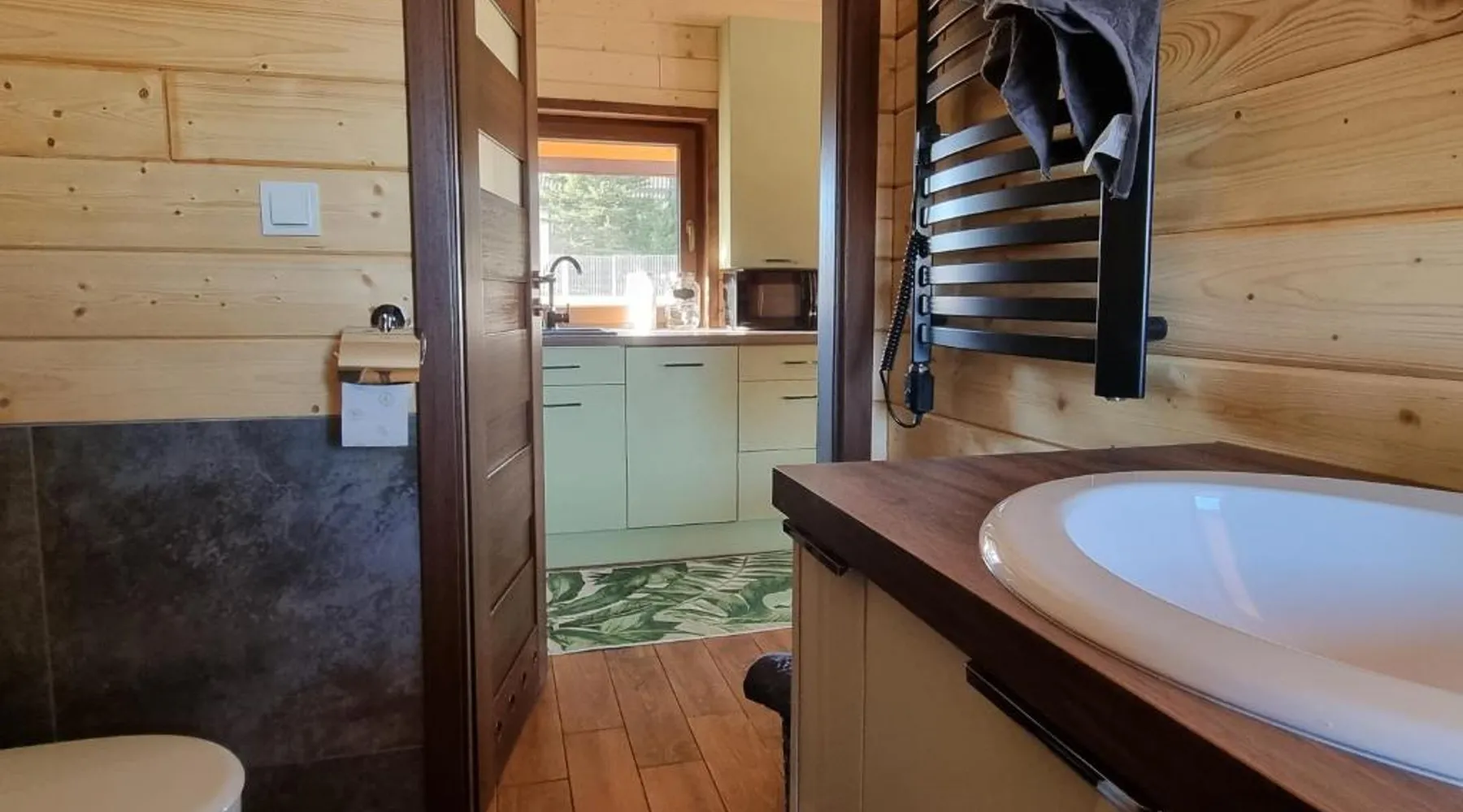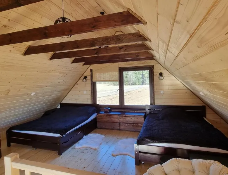 Comfortable Living Space: Agrosturystyka Leśna 21 in Rutka-Tartak offers a one-bedroom apartment with a living room. The property features a sun terrace and a garden, providing a relaxing outdoor area. Modern Amenities: The apartment includes air-conditioning, a kitchenette, balcony, washing machine, and a sauna. Guests can enjoy garden views and a private entrance. Outdoor Facilities: An outdoor fireplace, seating area, and picnic area enhance the outdoor experience. Free on-site private parking is available. Local Attractions: Hancza Lake is 12 mi away, Castle Mountain 11 mi, and Wigry National Park 27 mi from the property. Cycling activities are popular in the surrounding area. Guests will have a special experience as the chalet offers a sauna. Featuring a private entrance, this air-conditioned chalet consists of 3 living rooms, 1 separate bedroom and 1 bathroom with a shower and a hairdryer. Guests will find a stovetop, a refrigerator, a dishwasher and kitchenware in the well-fitted kitchen. The chalet also offers a barbecue. Boasting a terrace with garden views, this chalet also provides a washing machine and a flat-screen TV. The unit offers 5 beds.
