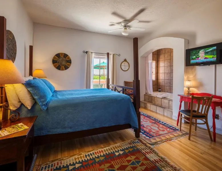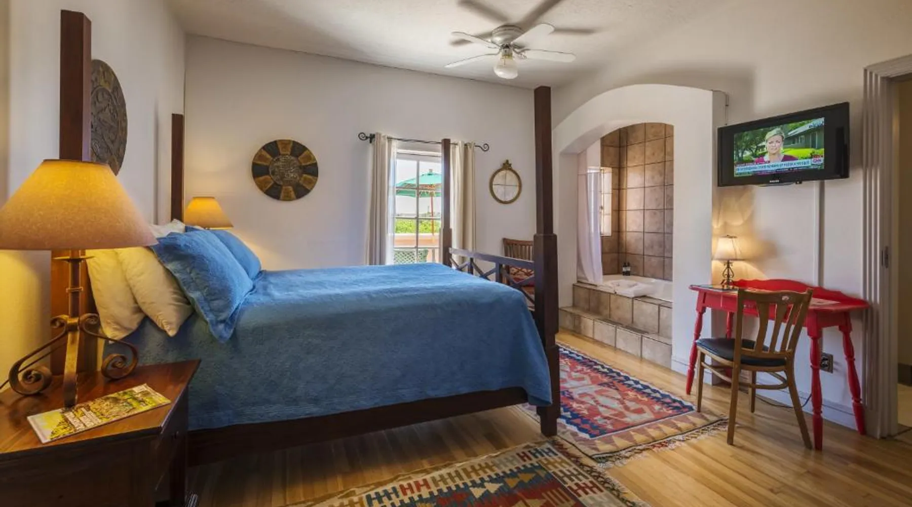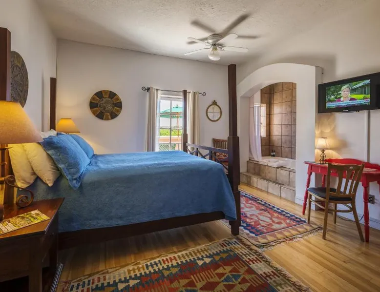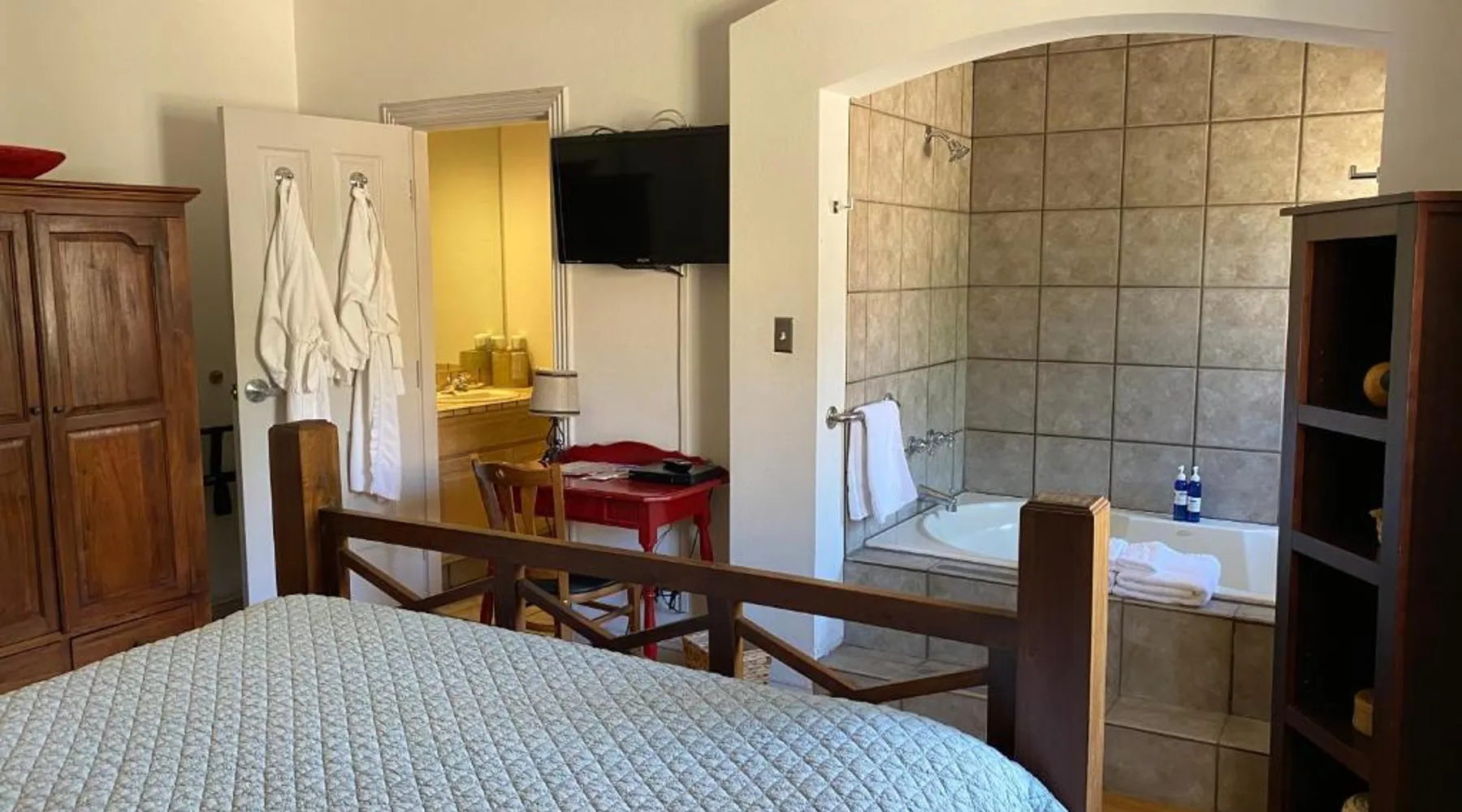 Comfortable Accommodations: Sierra Grande Lodge & Spa in Truth or Consequences offers air-conditioned rooms with private bathrooms, bathrobes, and free WiFi. Each room includes a refrigerator, TV, and wardrobe, ensuring a pleasant stay. Relaxing Facilities: Guests can unwind in the hot spring bath, spa facilities, or fitness center. Additional amenities include a terrace, hot tub, balcony, and outdoor seating area. Wellness packages and a 24-hour front desk enhance the experience. Convenient Location: Located 89 mi from Grant County Airport, the hotel provides free on-site private parking. Nearby attractions include the Truth or Consequences Hot Springs and the Rio Grande River. This air-conditioned double room is consisted of of a flat-screen TV with cable channels, a private bathroom as well as a terrace with mountain views. The unit has 1 bed.