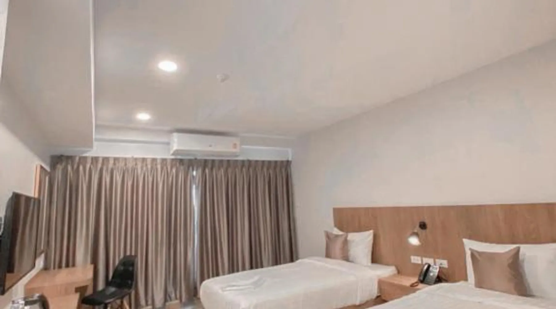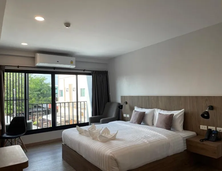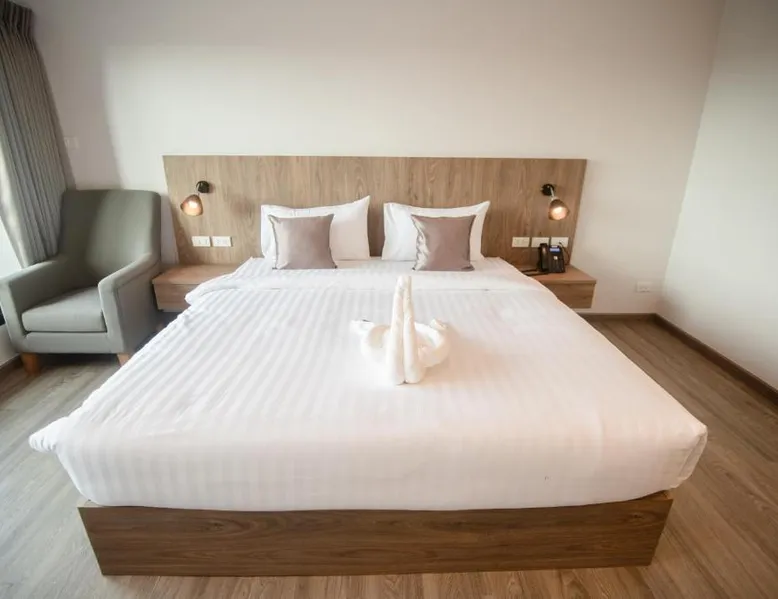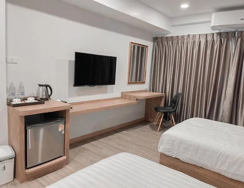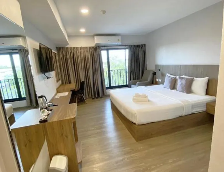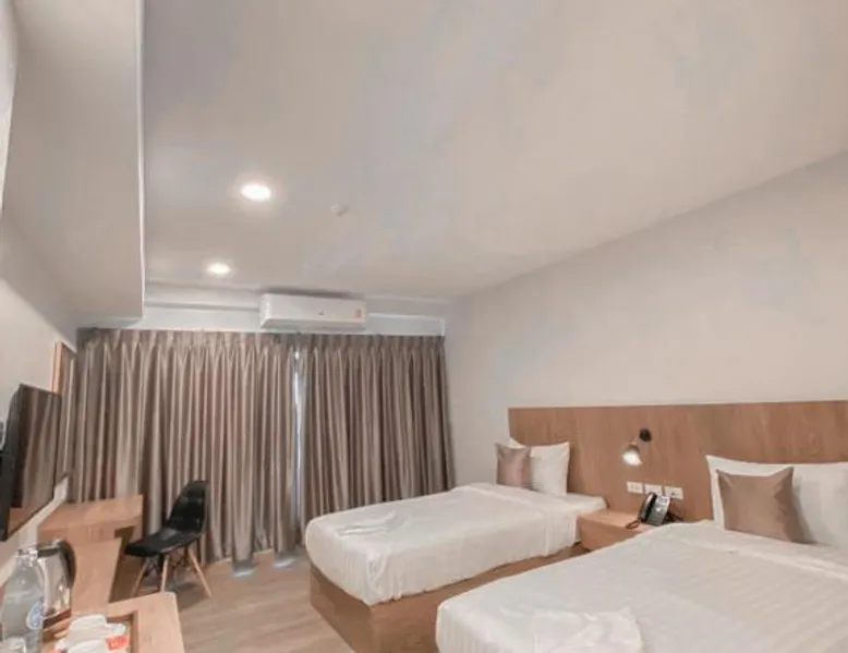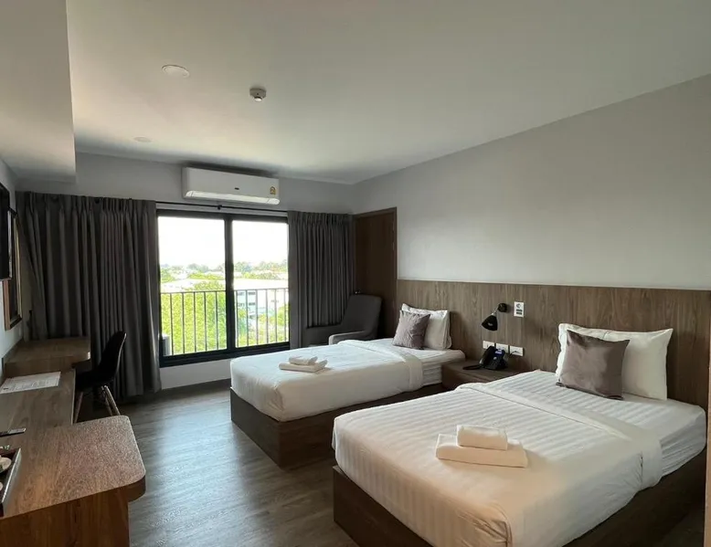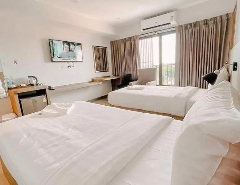 Comfortable Accommodations: Nakara Hotel in Ubon Ratchathani offers family rooms with private bathrooms, air-conditioning, and free WiFi. Each room includes a work desk, TV, and free toiletries. Dining Experience: The family-friendly restaurant serves American and Thai cuisines for lunch and dinner. Guests can enjoy meals in a relaxed dining area. Leisure Facilities: The hotel features a garden, terrace, and free on-site private parking. Additional amenities include a coffee machine and tea and coffee maker. Convenient Location: Located 1.9 mi from Ubon Ratchathani Airport, the hotel is highly rated for its attentive staff, room cleanliness, and convenient location. This spacious suite features 1 living room, 2 separate bedrooms and 2 bathrooms with a shower and free toiletries. Boasting a terrace with city views, this suite also features air conditioning and a flat-screen TV. The unit has 3 beds.