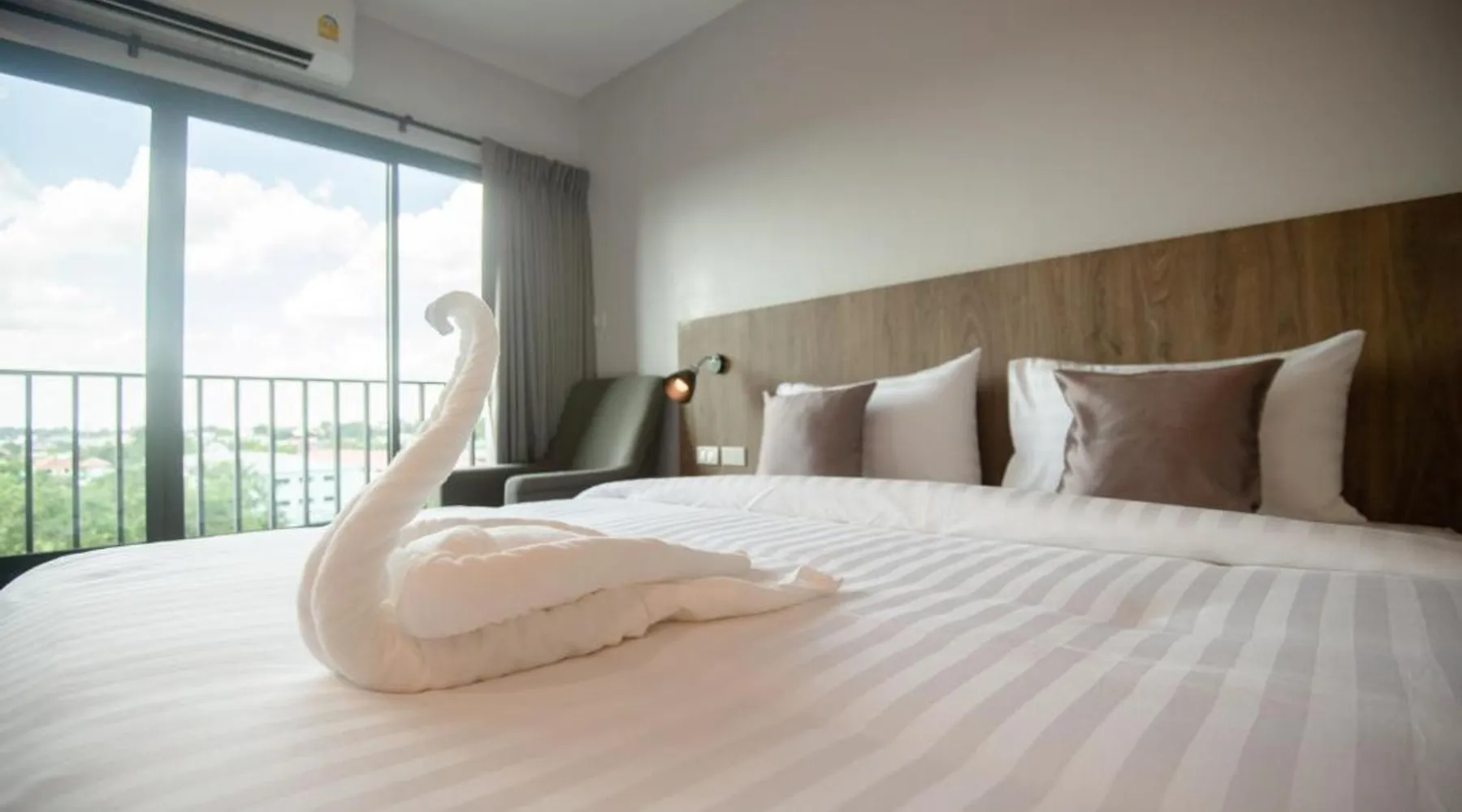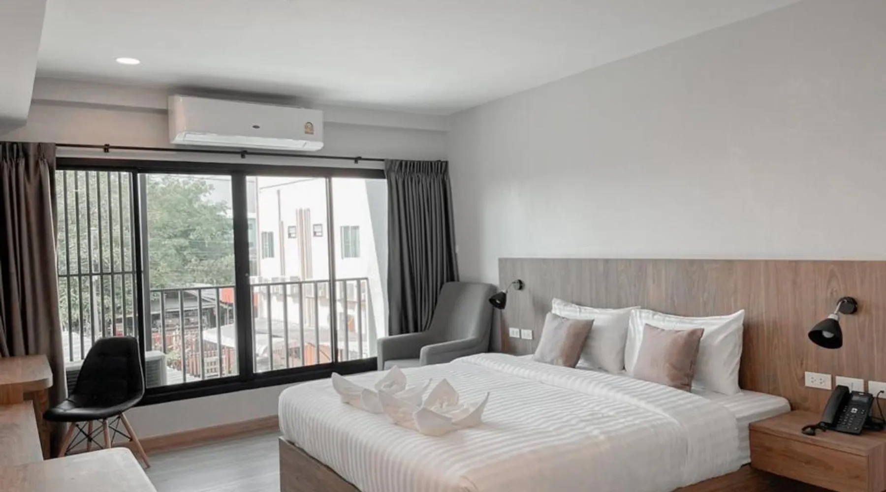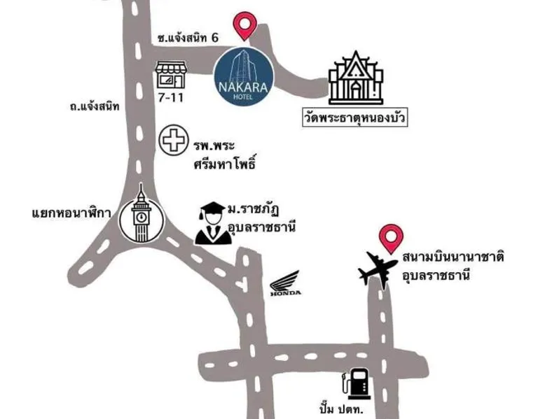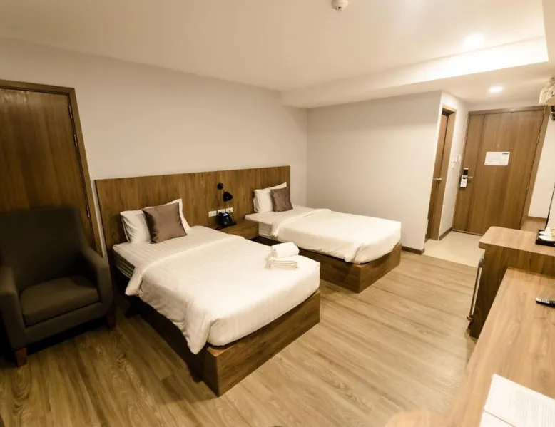 Comfortable Accommodations: Nakara Hotel in Ubon Ratchathani offers family rooms with private bathrooms, air-conditioning, and free WiFi. Each room includes a work desk, TV, and free toiletries. Dining Experience: The family-friendly restaurant serves American and Thai cuisines for lunch and dinner. Guests can enjoy meals in a relaxed dining area. Leisure Facilities: The hotel features a garden, terrace, and free on-site private parking. Additional amenities include a coffee machine and tea and coffee maker. Convenient Location: Located 1.9 mi from Ubon Ratchathani Airport, the hotel is highly rated for its attentive staff, room cleanliness, and convenient location. This spacious suite features 1 living room, 2 separate bedrooms and 2 bathrooms with a shower and free toiletries. Boasting a terrace with city views, this suite also features air conditioning and a flat-screen TV. The unit has 3 beds.
