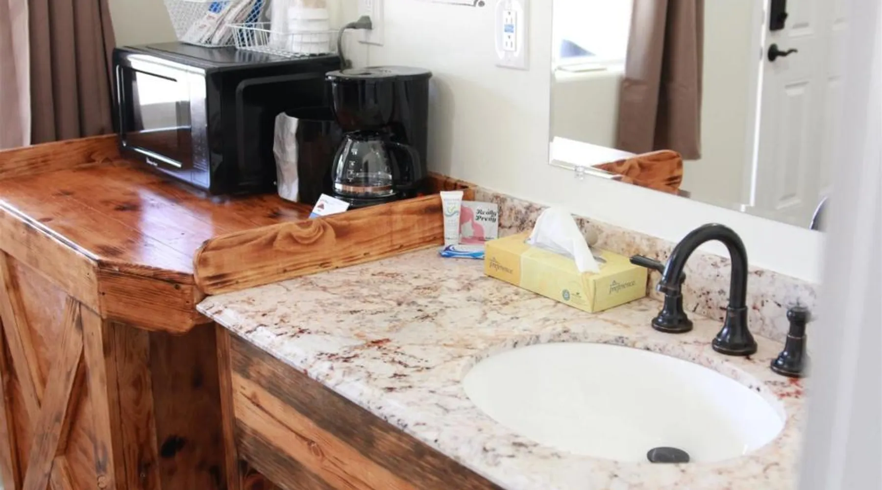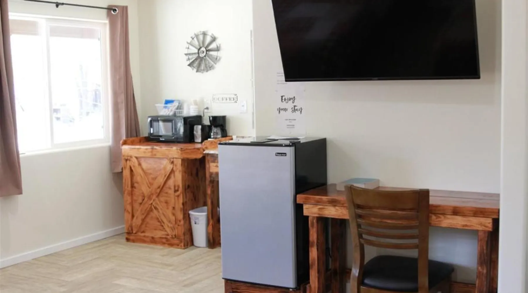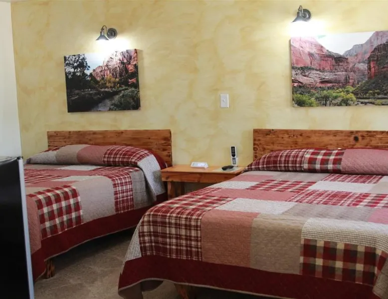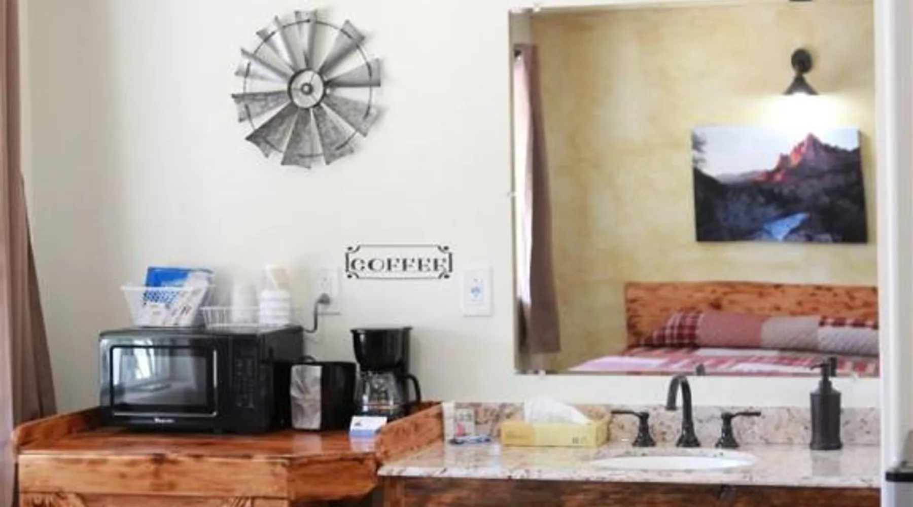 Comfortable Accommodations: Hurricane Hideaway Lodging in Hurricane offers comfortable rooms with air-conditioning, private bathrooms, and modern amenities including free WiFi, a private entrance, and a fully equipped kitchen. Convenient Facilities: Guests enjoy free WiFi, a patio, tea and coffee maker, coffee machine, refrigerator, microwave, and a private entrance. Additional amenities include a fireplace, barbecue, mountain views, hairdryer, shower, and TV. Prime Location: Located 19 mi from St. George Regional Airport, the hotel is near attractions such as St George Temple (19 mi), Pine Valley Chapel (15 mi), and Dixie State University (17 mi). Guests appreciate the convenient location, room cleanliness, and quietness of the area. This quadruple room's special feature is the fireplace. This air-conditioned quadruple room includes a flat-screen TV with cable channels, a private bathroom as well as a patio. The unit offers 2 beds.