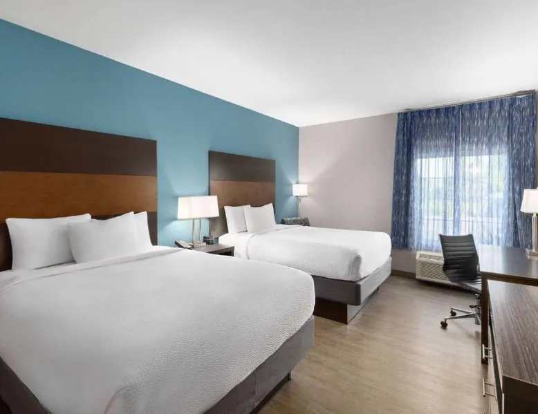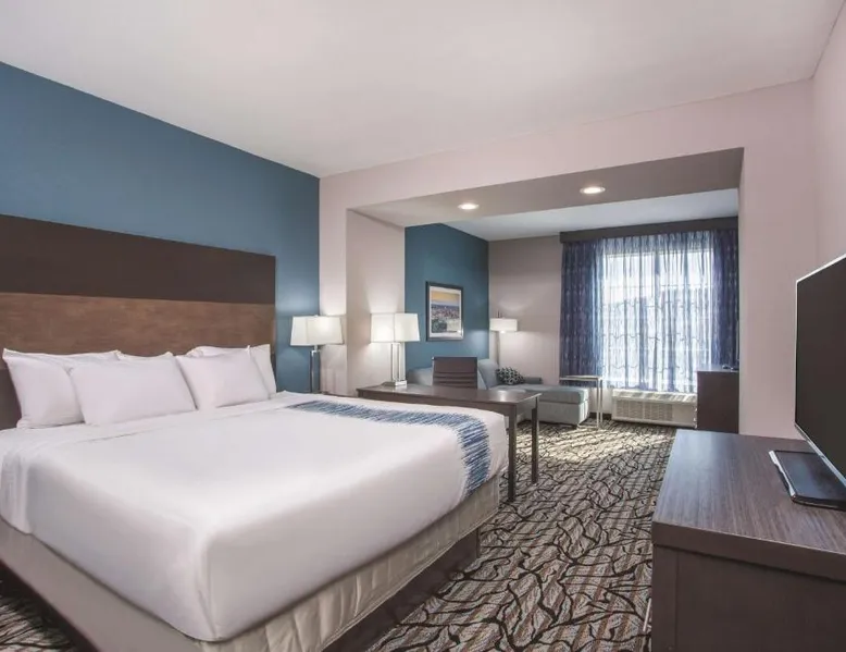 Comfortable Accommodations: La Quinta by Wyndham Cullman in Cullman offers family rooms with private bathrooms, air-conditioning, and free WiFi. Each room includes a bath or shower, hairdryer, coffee machine, sofa bed, refrigerator, microwave, and TV. Leisure Facilities: Guests can enjoy a fitness center, seasonal outdoor swimming pool, and kids' pool. Additional amenities include a picnic area, business area, and free on-site private parking. Dining Options: A continental, American, and buffet breakfast is provided by the property. Location and Attractions: Huntsville International Airport is 41 mi away, and Cook S Natural Science Museum is 30 mi from the hotel. This air-conditioned quadruple room includes a flat-screen TV with cable channels and a private bathroom. The unit offers 2 beds.