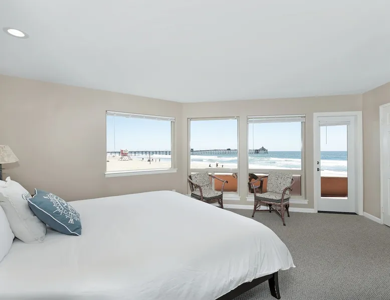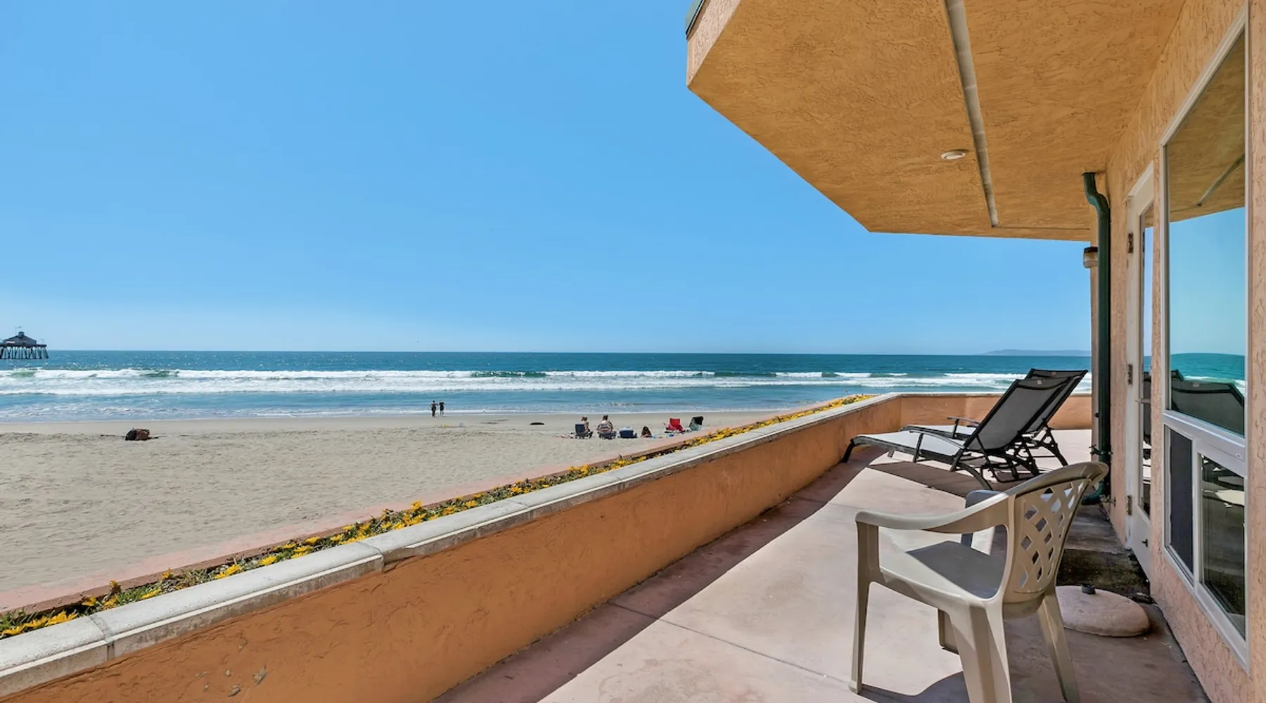 ***Due to the ongoing issues with Mexico’s water treatment pumps, the ocean is not guaranteed to be open at this time.. They do test the bacteria levels daily, but the majority of the year the Ocean has been closed from the Border, past Imperial Beach up to Coronado Beach. If swimming in the ocean is a major amenity I would not stay in these areas, until further notice.*** The space ***Due to the ongoing issues with Mexico’s water treatment pumps, the ocean is not guaranteed to be open at this time.. They do test the bacteria levels daily, but the majority of the year the Ocean has been closed from the Border, past Imperial Beach up to Coronado Beach. If swimming in the ocean is a major amenity I would not stay in these areas, until further notice.*** Beach Club The beach club is a three story private, gated complex. The Beach Club is a U-shaped building that is located on the sand, no busy street or boardwalk separating you from the beach. It has its own heated pool, Jacuzzi hot tub, and barbecue facilities in the spacious garden atrium. Your unit #107 Unit #107 is on the first floor wrapping around the corner. and offers you a beautiful southwest view overlooking the grass park and the ocean, as well as a direct ocean view. You'll relax to the soothing sound of the ocean waves. You'll have your own private, sunny direct oceanfront balcony. The area Relax in a quaint beach town, stroll on the quiet beach. Walk on the old fishing pier, and bring your rod and bait! Excellent surfing! Watch or participate! A 10 minute drive affords you easy access to the famous Island of Coronado and its golf course. 25 minutes takes you to the world famous San Diego Zoo, Seaworld, San Diego Embarcadero, San Diego Convention Center, fabulous desert or mountain drives, Mexico, and all that the sophisticated city of San Diego has to offer! After booking you will be receiving a welcome email, and a contract to e-sign. We will email directions about 30 days prior to the arrival date.