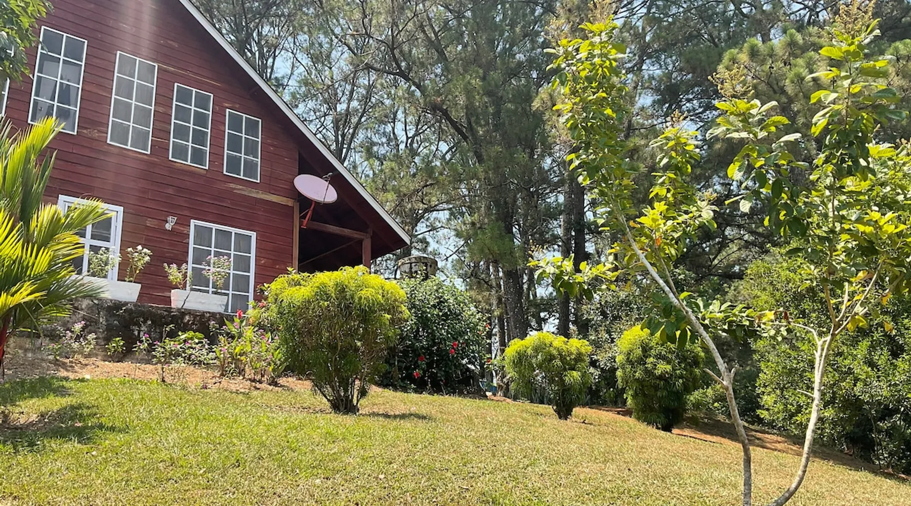 Cozy two-story wood cabin with stunning Lake Yojoa views. Set on a private 40-acre property surrounded by pine, lime, and rambutan trees. Perfect for romantic getaways, family trips, or peaceful solo escapes. Simple, natural, and private—no luxury, just the essentials for a real break in nature. The space The cabin has two floors. Upstairs, there are 4 bedrooms and 2 shared bathrooms—great for families or small groups. Downstairs, you’ll find 1 more bedroom with its own private bathroom, plus a full kitchen, living room, and dining area. The rustic wood design and spacious layout offer comfort and simplicity. Outside, enjoy open green areas, fruit trees, and beautiful views of Lake Yojoa. Guest access Guests have full access to the entire cabin, including both floors, the porch, and the surrounding outdoor area. The property is completely private—no shared spaces. Enjoy the freedom to relax, explore the trees, and disconnect in nature. Other things to note Our lakeview cabin is perfect for family gatherings and relaxing getaways. The peaceful surroundings and scenic views will make your stay memorable. The cabin is equipped with a grill for outdoor cooking—perfect for barbecues with friends or family. Bring your favorite ingredients and enjoy meals with a view!
