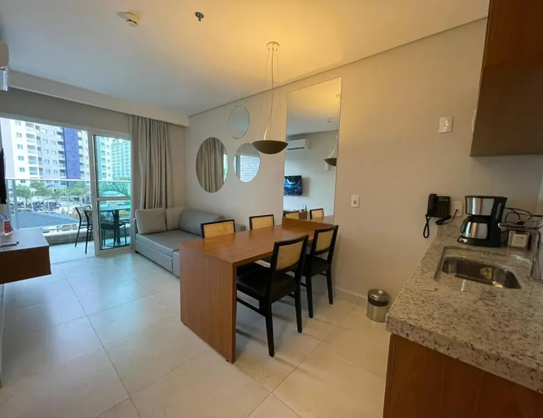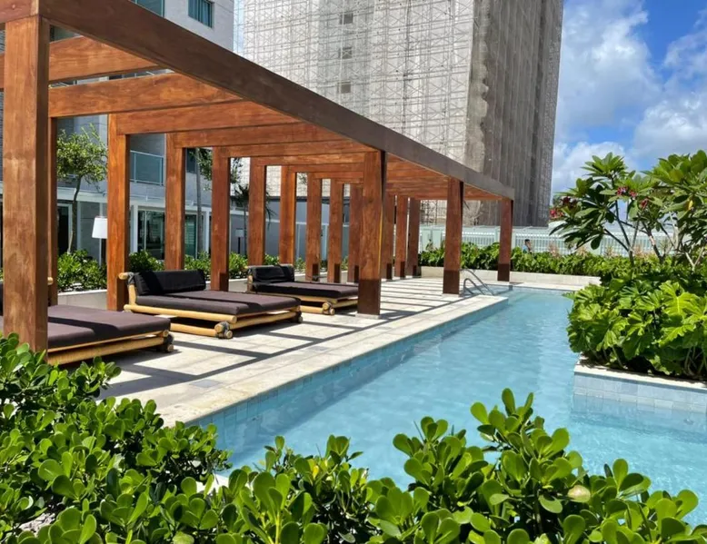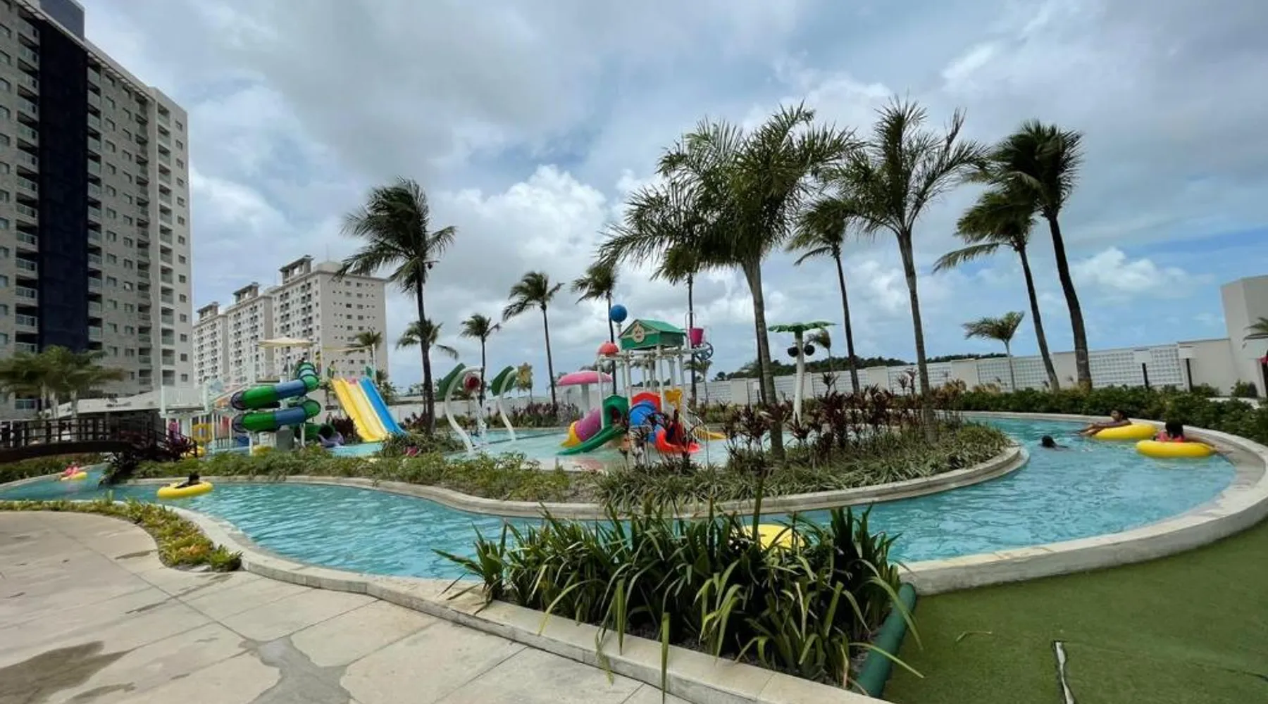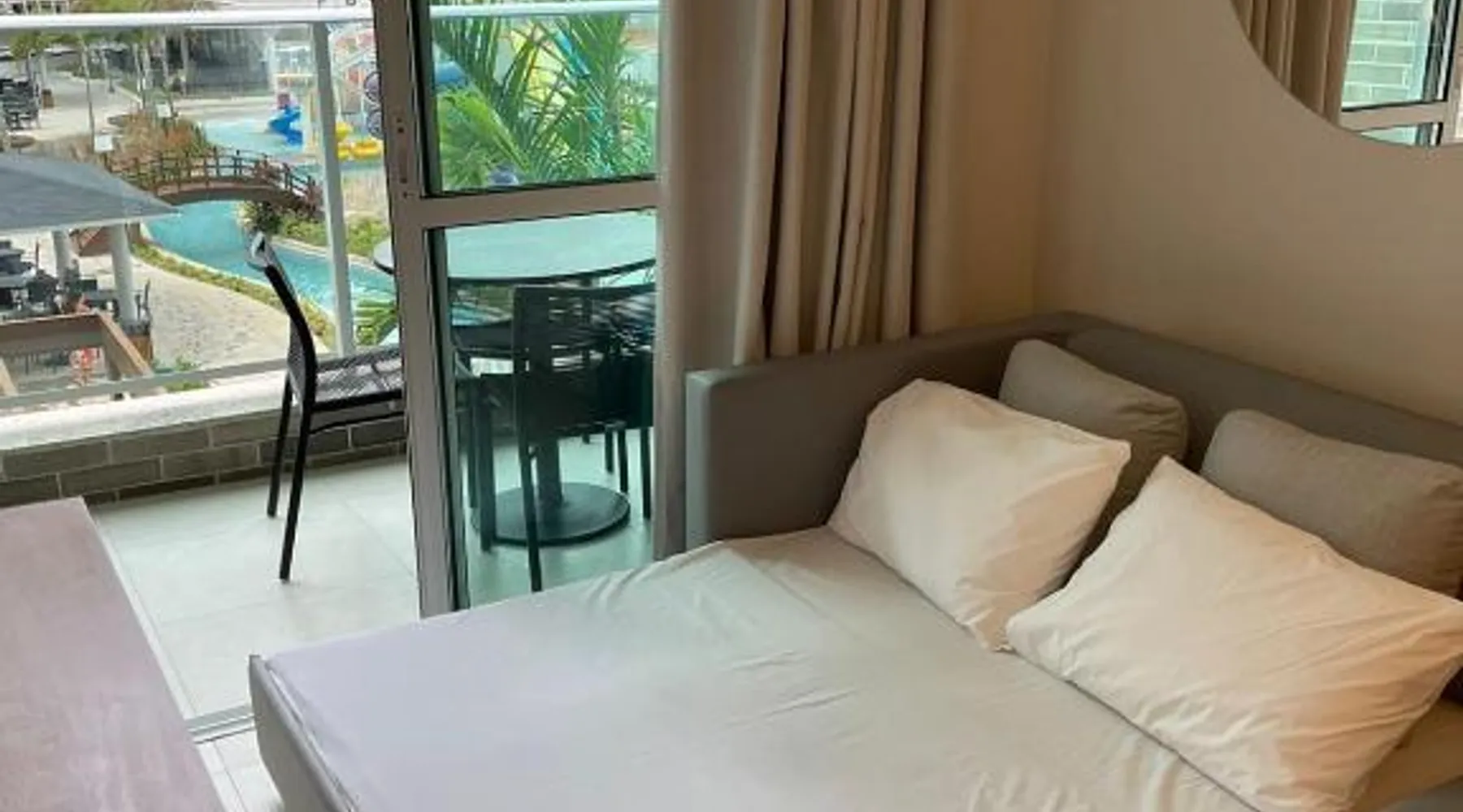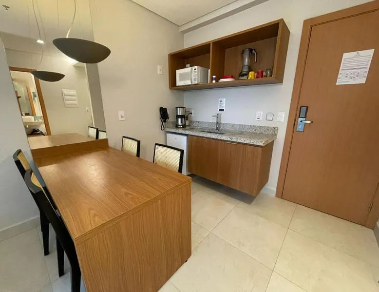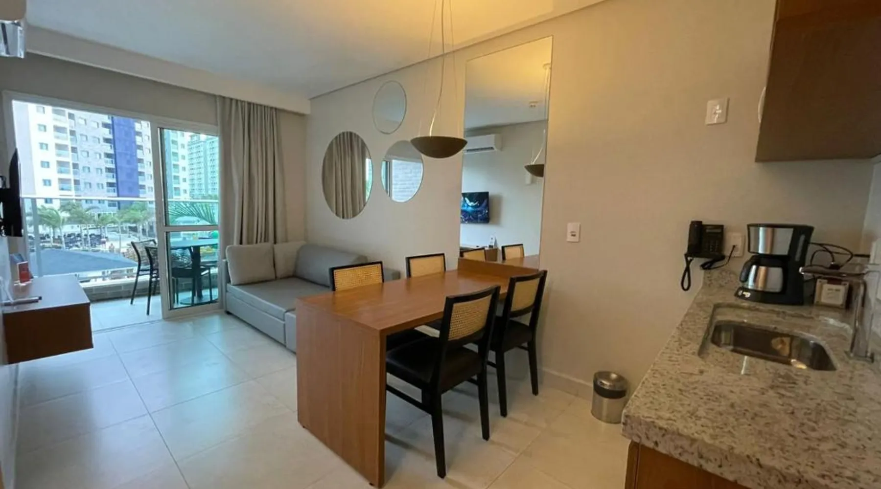 Comfortable Accommodations: Salinas Exclusive Resort in Salinópolis offers one-bedroom apartments with balconies and modern amenities. Each unit includes a fully equipped kitchen, air-conditioning, and a living room with a sofa bed. Leisure Facilities: Guests can enjoy a sauna, fitness center, and a year-round outdoor swimming pool. The resort features a garden, bar, and free WiFi, ensuring a relaxing and connected stay. Convenient Services: The aparthotel provides housekeeping, room service, and a pool bar. Free on-site private parking is available, and Salinópolis Airport is 8.7 mi away. Atalaia Beach is located 1.2 mi from the property. The air-conditioned apartment has 1 bedroom, 1 bathroom and a kitchen. The apartment's kitchen, which features kitchenware and a microwave, is available for cooking and storing food. Boasting a balcony with pool views, this apartment also features a tiled floor and a flat-screen TV. The unit has 2 beds.