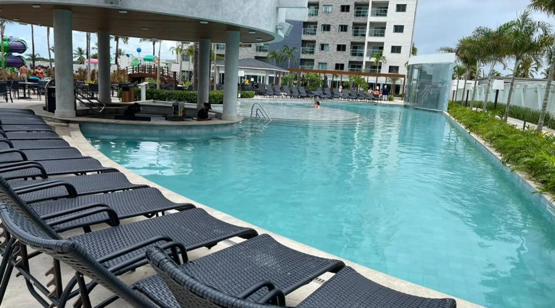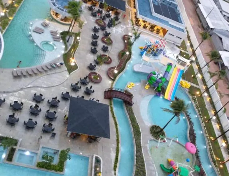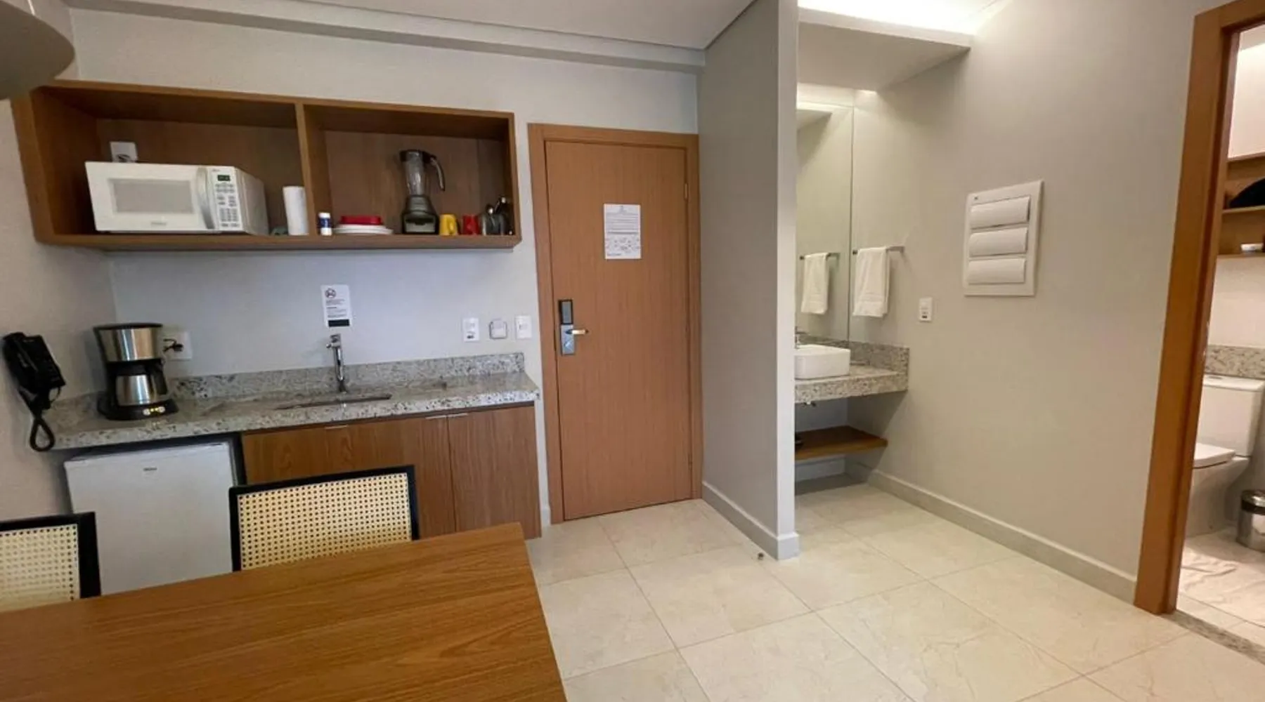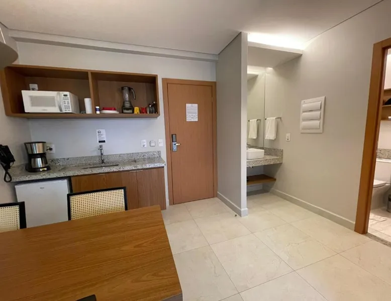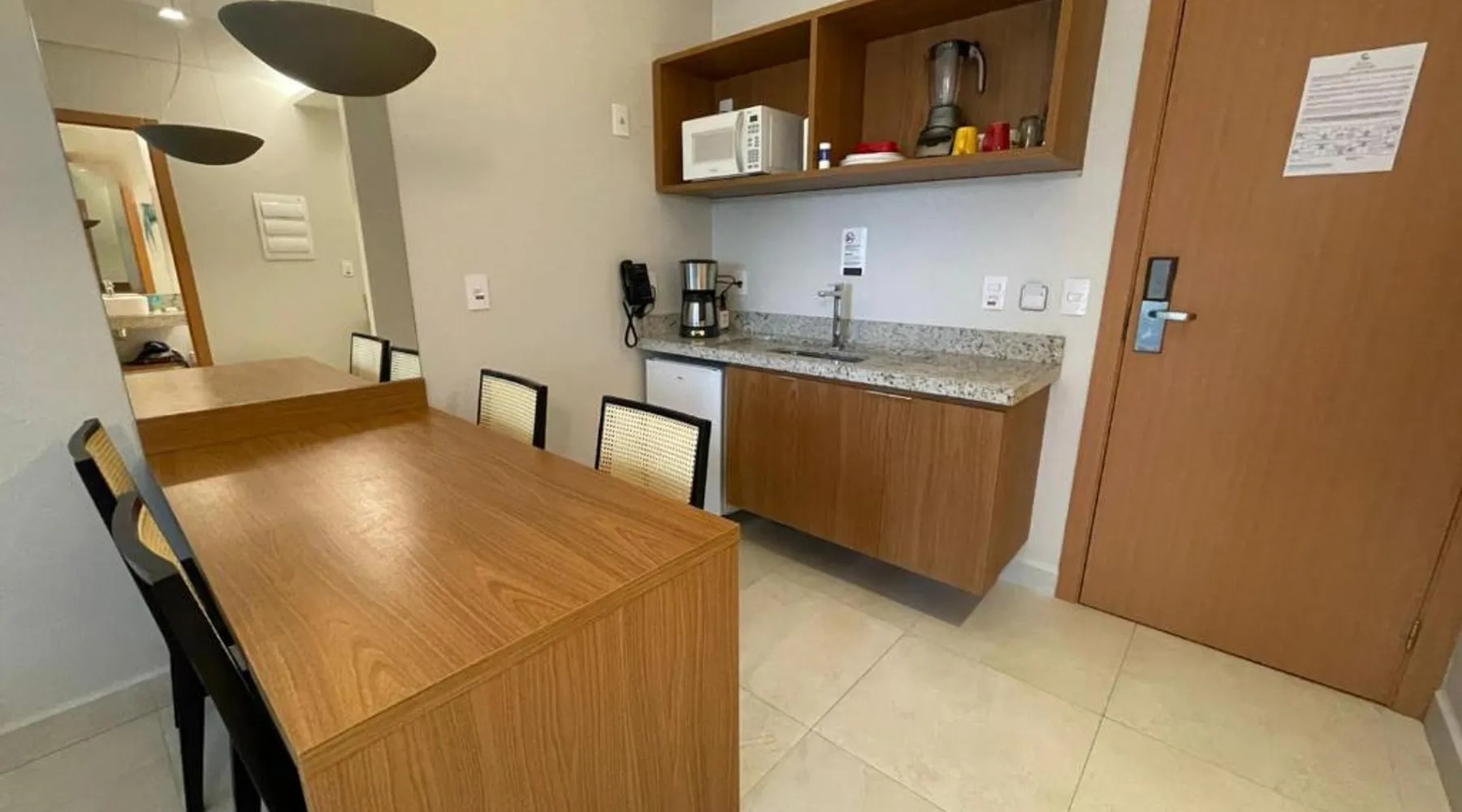Comfortable Accommodations: Salinas Exclusive Resort in Salinópolis offers one-bedroom apartments with balconies and modern amenities. Each unit includes a fully equipped kitchen, air-conditioning, and a living room with a sofa bed. Leisure Facilities: Guests can enjoy a sauna, fitness center, and a year-round outdoor swimming pool. The resort features a garden, bar, and free WiFi, ensuring a relaxing and connected stay. Convenient Services: The aparthotel provides housekeeping, room service, and a pool bar. Free on-site private parking is available, and Salinópolis Airport is 8.7 mi away. Atalaia Beach is located 1.2 mi from the property. The air-conditioned apartment has 1 bedroom, 1 bathroom and a kitchen. The apartment's kitchen, which features kitchenware and a microwave, is available for cooking and storing food. Boasting a balcony with pool views, this apartment also features a tiled floor and a flat-screen TV. The unit has 2 beds.