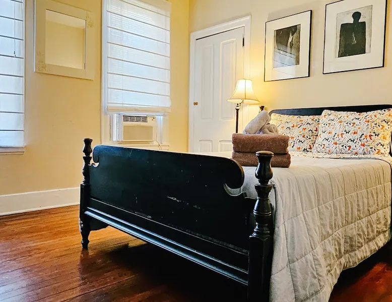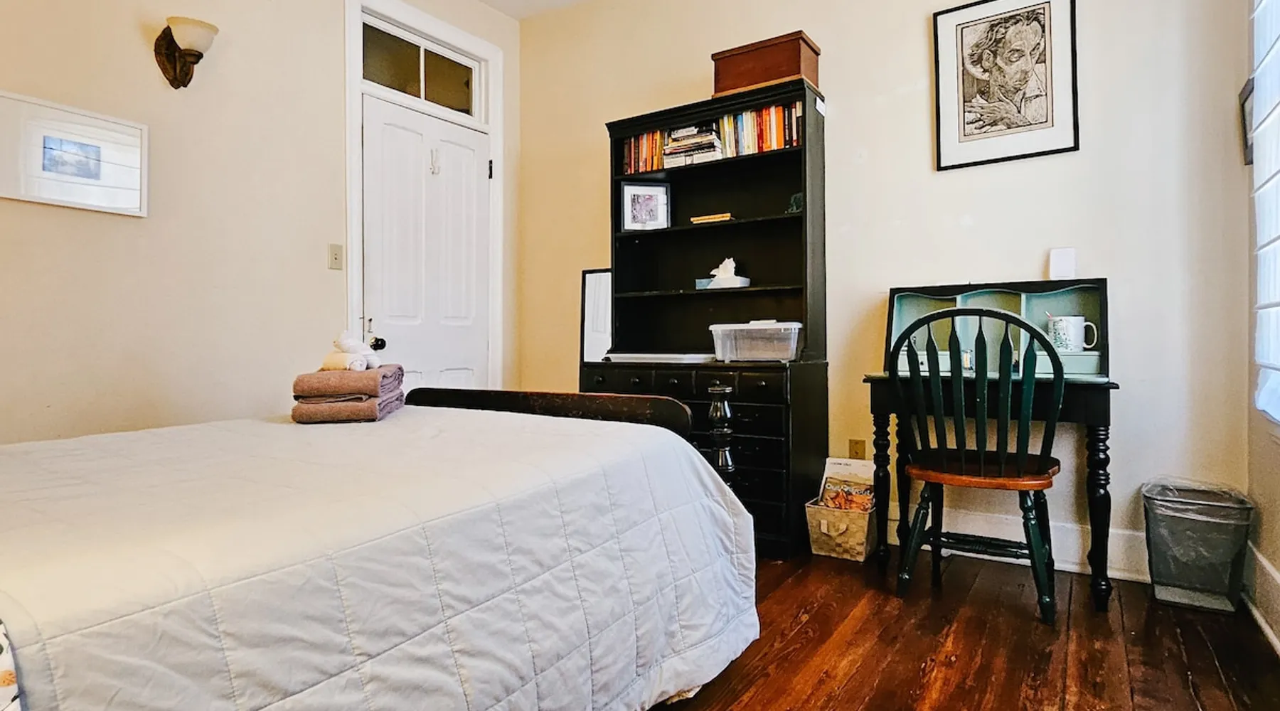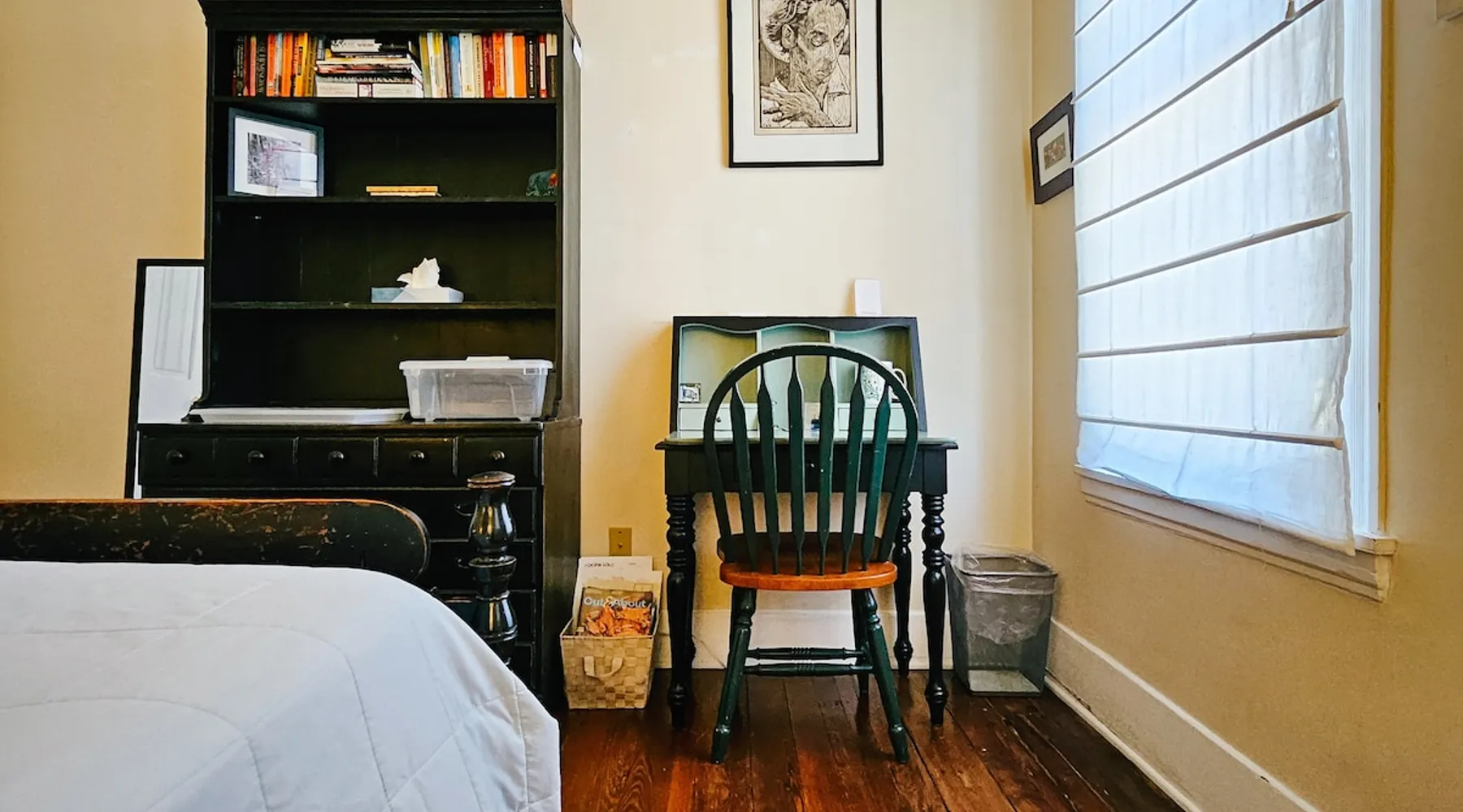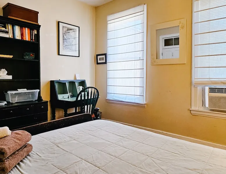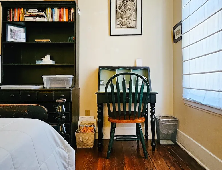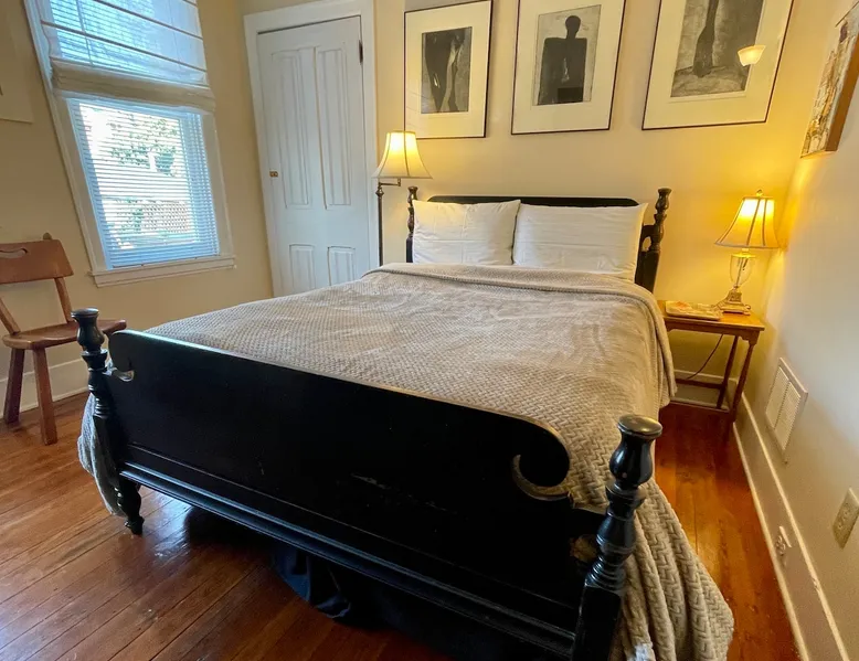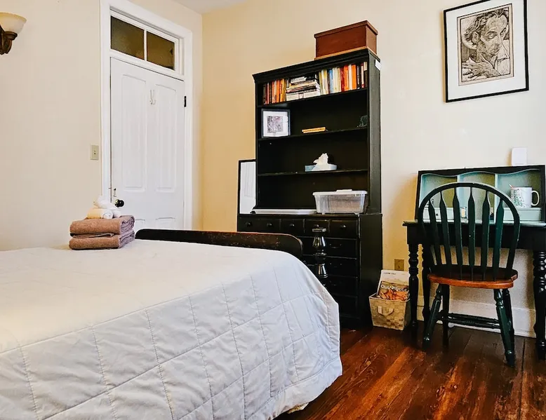 Comfortable size bedroom on 2nd floor, private hall bathroom with walk-in shower. It's a short walk to downtown business district or the riverfront and convention center. Large parking lot right behind the house. Located close to : Waterfront, restaurants, train station, museums, Queen Theater, music venues, beer garden, brew pubs, coffee house and more! A beautiful historic house dating back to settlement on Quaker Hill. Plus, we're in the historic district & the arts district. The space You're booking a 2nd floor bedroom with a full size bed, dresser, desk, closet and a private hall bath. Enjoy your stay in a well maintained 140 year old house with beautiful hardwood floors, tall ceilings, a three story staircase and modern tile bathrooms. Also, on the third floor of the house is a master suite where guests can book the entire third floor. The suite has a queen size bed with a spacious master bathroom. The first floor kitchen, dining room, living room and half bathroom are open to guests anytime during a stay. Guest access The first floor kitchen, dining room, living room and half bathroom are open to guests anytime during a stay. A private brick courtyard off the kitchen is a great place to enjoy your morning coffee. During your stay I enjoy greeting new guests when I get the chance. We respond quickly when you need anything, so don't hesitate to reach out. Other things to note Wilmington is a small city, you can walk from river to river in under 30 minutes. The riverfront and the downtown areas are safe, well lit and full of visitors at most hours of the day. HISTORY OF THIS LOCATION Quaker Hill was settled in 1738, when Quakers William Shipley and Thomas West built the first residences in the area. During the Revolutionary War, George Washington and The Marquis de Lafayette were quartered on Quaker Hill. Among those buried on Wilmington Friends Meeting grounds across the street are John Dickinson, signer of the Constitution, and Thomas Garrett, an abolitionist who worked with William Still and Harriet Tubman as part of the Underground Railroad.