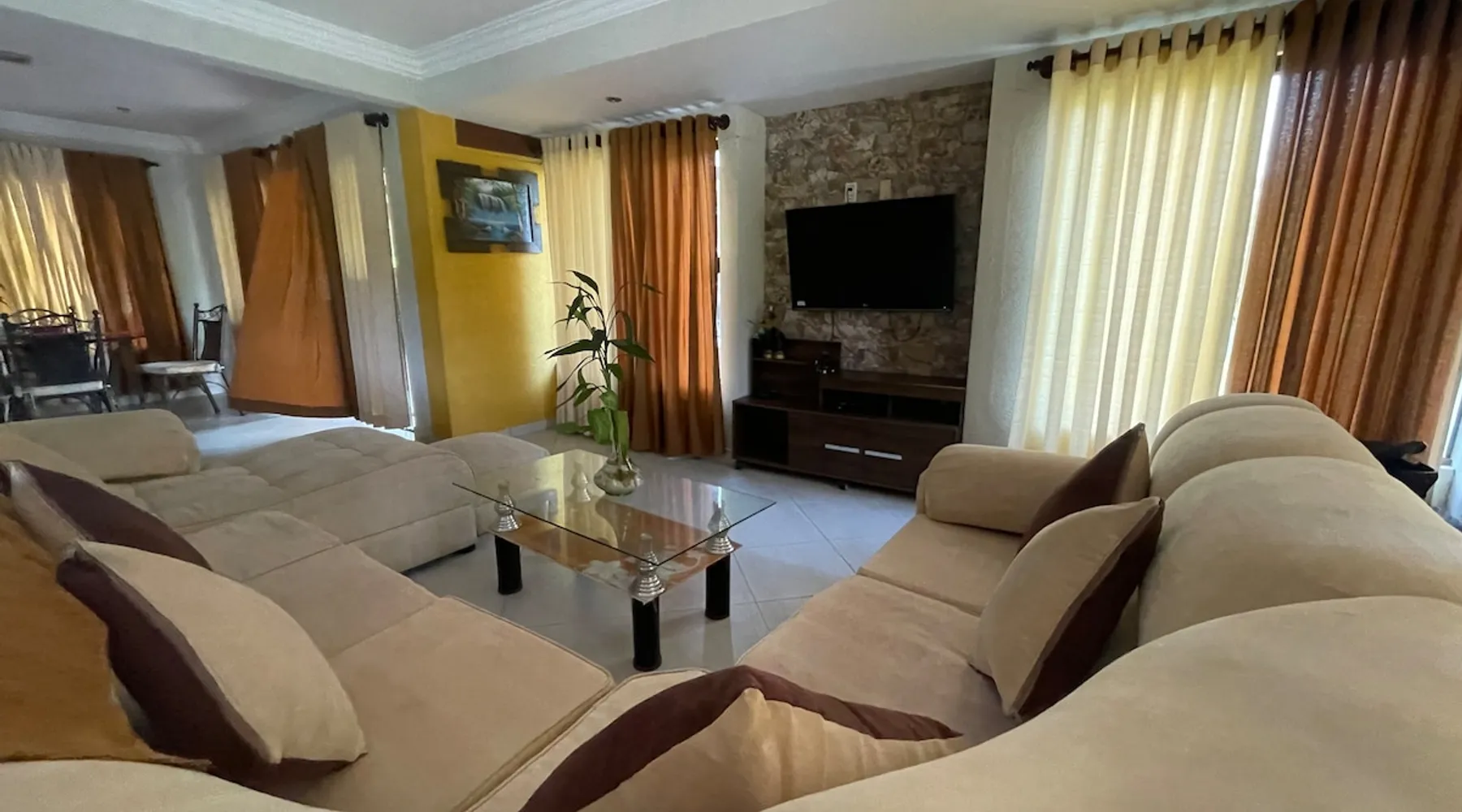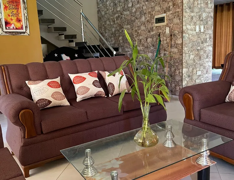 🏡 Escape to your dream retreat: Imagine a lovely cottage, surrounded by majestic trees and green fields. With large windows letting natural light in, its cozy interior combines the warmth of the wood with a rustic chic design. Enjoy the evenings on the terrace, savoring a fresh drink while listening to the singing of the birds. The fireplace in the living room invites you to relax with a good book, and the pure air revitalizes you in every breath. The space Casa Dpto de Campo It consists of; ✅3 Bedrooms(One Suite) ✅3 Bathrooms ✅A living room ✅Kitchen ✅Balcony ✅A living room ✅Churrasquera ✅Yard